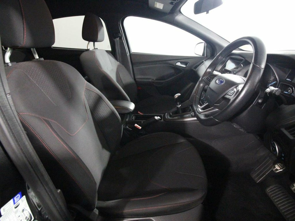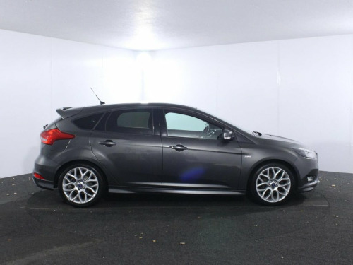 2 Owners. Comprehensive service history with 9 services. Last serviced at 80,809 miles. Enjoy sharp styling and engaging performance in this 2017 Ford Focus 1.0T EcoBoost ST-Line, a sporty 5-door hatchback powered by the punchy 125 ps 1.0-litre EcoBoost petrol engine with 6-speed manual gearbox and Euro 6 (s/s) efficiency. This ST-Line model brings a more dynamic look and feel over standard Focus variants, with sports suspension and a body kit that gives real hot-hatch presence while keeping running costs low and everyday usability high.? The ST-Line exterior spec includes 17-inch Rock metallic alloy wheels, body-coloured large rear spoiler and side skirts, high-gloss black honeycomb upper and lower grilles, black exterior trim detailing and LED daytime running lights for a distinctive road presence. Inside, you get sports-style front seats with driver's height and lumbar adjustment, black woven headliner, leather-trimmed sports steering wheel, gear knob and handbrake, plus a premium centre console with sliding armrest to lift the cabin ambience. The SYNC 3 system with 8-inch touchscreen DAB audio and navigation, Bluetooth and voice control keeps you connected and entertained, supported by a clear colour TFT instrument cluster and trip computer.? Safety and convenience are well covered, with Electronic Stability Programme (ESP) including traction control and Emergency Brake Assist, Torque Vectoring Control for improved cornering grip, Thatcham Category 1 alarm with per 17in Alloy Wheels - Rock Metallic Finish, Air Conditioning - Manual, Alarm - Thatcham Category 1 with Volume , Appearance Pack 2, Black Exterior Trim Detailing including , Body Colour Large Rear Spoiler and Side , Body Coloured Front Styling Kit with Cen, Colour TFT Instrument Cluster Display, Courtesy Light - Front and Rear Passenge, Door Mirrors - Heated - Electric - Integ, Drivers Seat Lumbar Adjust, Electronic Stability Programme - ESP - w, EPAS - Electric Power Assisted Steering, Ford Easy-Fuel Capless Refuelling System, Ford Eco Mode - Driver Information Syste, Ford SYNC3 DAB Navigation System, Front Floor Mats, Front Fog Lights, Front Seat - Drivers Manual Height and F, Front Seat - P