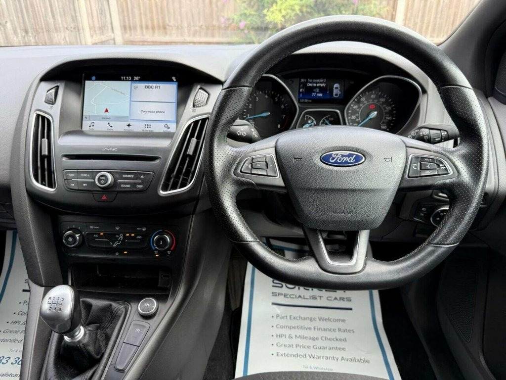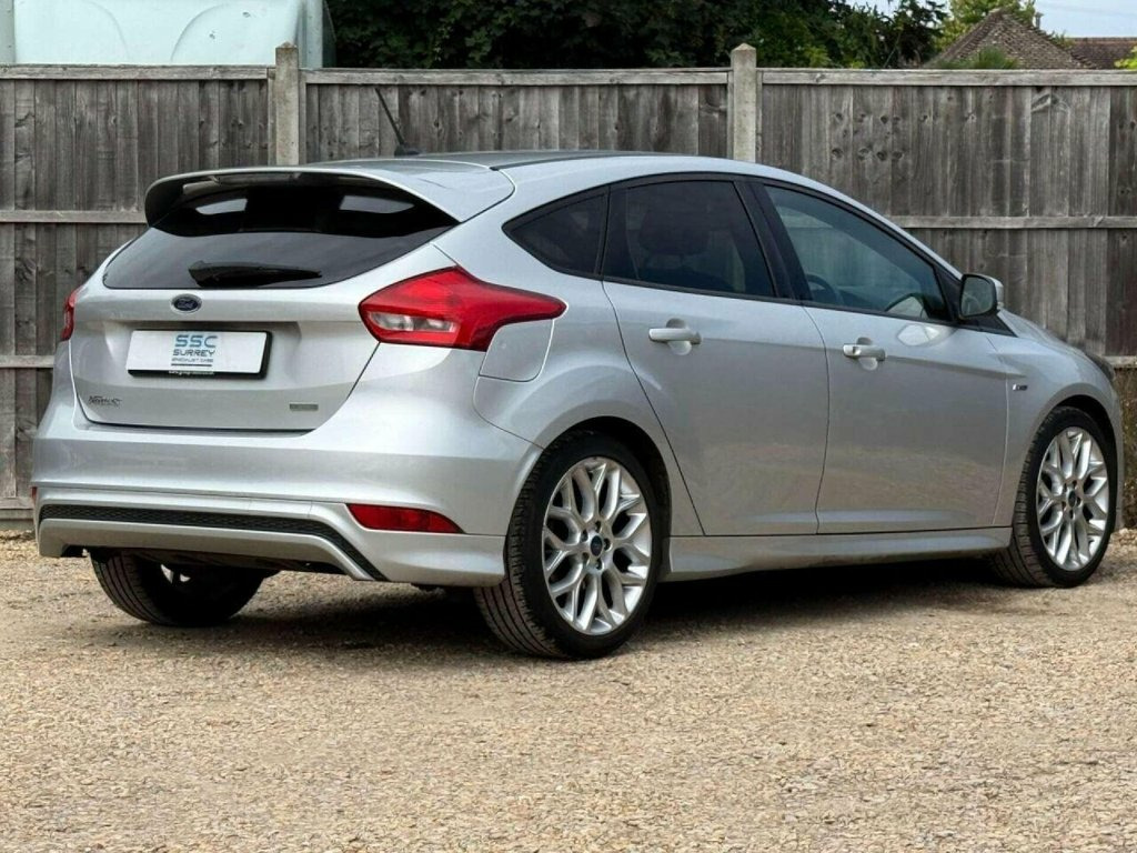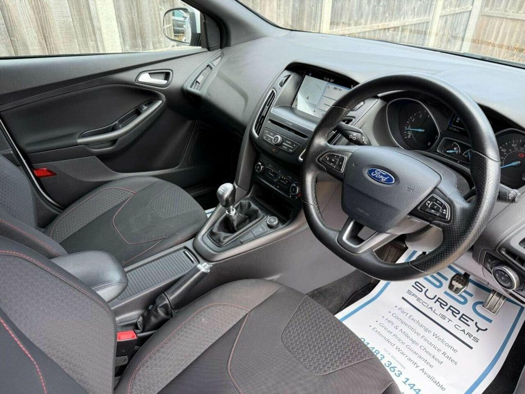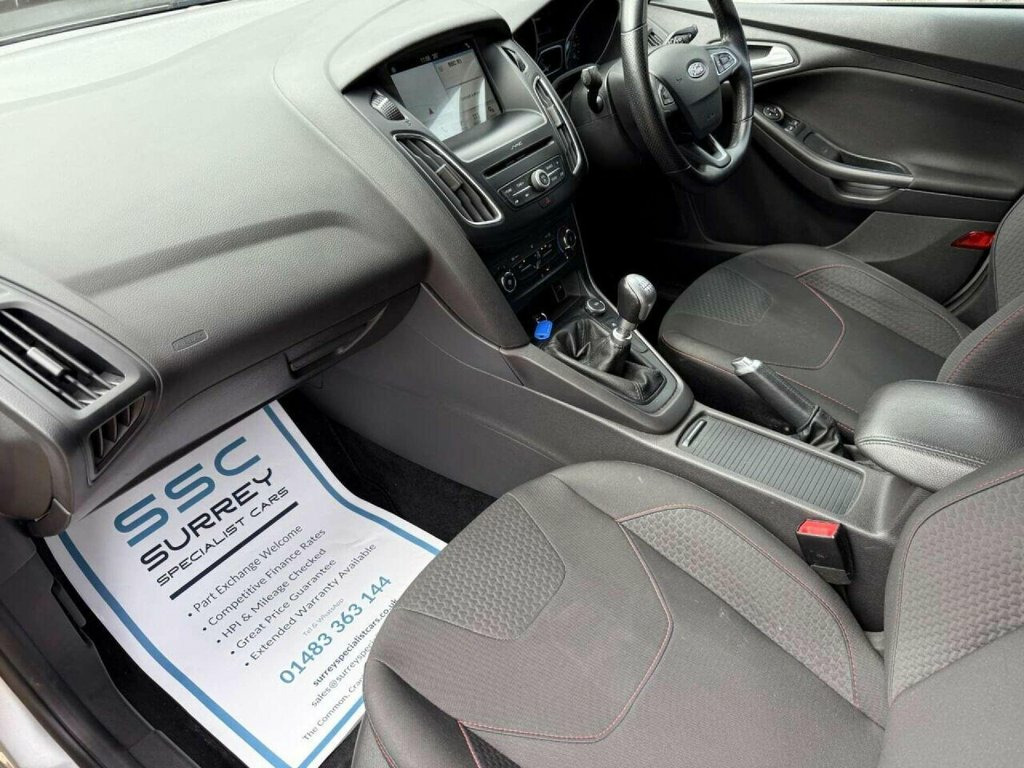 Surrey Specialist Cars are proud to present our lovely Ford Focus ST Line. This amazing car comes with Service History, finished in stunning metallic silver with grey contrast interior. The car will come with Long MOT so it will be ready to go. The 1L Petrol engine offers superb economy at over 58 MPG on combined cycle. Features Include Multifunction Steering Wheel, Trip Computer, Satellite Navigation, Stereo/Phone Control, Touch Screen, FM/DAB Radio, CD Player, Bluetooth Audio, USB Input, AUX Input, Air Conditioning, Heated Rear and Front Screen, Start/ Stop System, 12V Charging Socket, Fog Lights, 6 Speed Manual Gearbox, 18 Inch Alloy Wheels and one Remote Control Key to name a few. We are open 7 days a week, and prepare all of our cars to the highest standards. We have a Click & Collect option available, and can also arrange delivery on request. All cars are HPI clear and a full history report is provided with every car. We welcome any inspection and viewing is highly recommended. All cars are available with our AA warranty starting from just ?150 for 3 months. Debit and credit card facilities are available and we offer competitive finance packages. If you have any questions or would like to view any of our cars give us a call or drop us a message on whatsapp 01483 363 144 to arrange an appointment with one of our team. We also offer full bespoke walkaround videos on request. We are always on the lookout for high quality stock, if you have a car we are interested in we 17in Alloy Wheels - Rock Metallic Finish, Air Conditioning - Manual, Alarm - Thatcham Category 1 with Volume , Black Exterior Trim Detailing including , Body Colour Large Rear Spoiler and Side , Body Coloured Front Styling Kit with Cen, Colour TFT Instrument Cluster Display, Courtesy Light - Front and Rear Passenge, Door Mirrors - Heated - Electric - Integ, Drivers Seat Lumbar Adjust, EPAS - Electric Power Assisted Steering, Electronic Stability Programme - ESP - w, Ford Easy-Fuel Capless Refuelling System, Ford Eco Mode - Driver Information Syste, Ford SYNC3 DAB Navigation System, Front Floor Mats, Front Fog Lights, Front Seat - Drivers Manual Height and F, Front Seat - Passenger Manual For