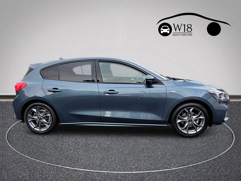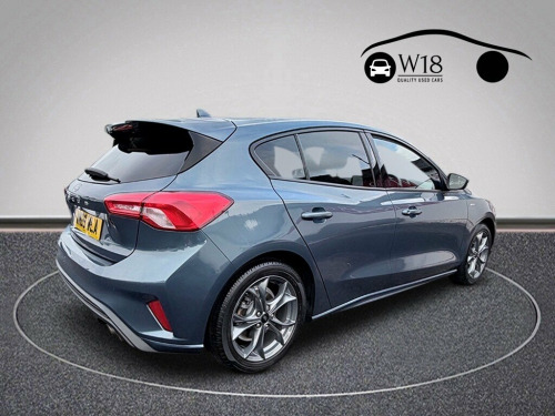 This 2020 Ford Focus ST-Line is presented with a clear vehicle history check and comes with a 6 month warranty for your peace of mind. This particular model features the efficient 1.0L petrol engine, meeting Euro 6 emissions standards. Inside, you'll find manual air conditioning to keep you comfortable, and the Ford SYNC system with an 8in touchscreen, offering seamless integration with Android Auto and Apple CarPlay. Automatic headlights ensure you always have optimal visibility. The Focus ST-Line offers a responsive drive, achieving 0-62mph in 10.0 seconds, demonstrating its capable acceleration compared to other vehicles in its class. Its low CO2 emissions also make it an economical choice. With a generous boot space, this Ford Focus is practical for everyday use and longer journeys alike. A 12 month MOT will be provided upon purchase, and the vehicle benefits from a partial service history (@18,110, @36,348, @59,163, @65,635). 17in Alloy Wheels - 5x2-Spoke - Rock Met, ABS - Anti-lock Braking System, Acoustic Laminated Windscreen, Airbags - Driver and Front Passenger, Airbags - Front Side Impact, Airbags - Front and Rear Side Curtain, Alarm - Thatcham Category 1 with Volume , Alloy Finish Pedals, Black Finish on Upper Door Line, Centre Console - Premium with Sliding Ar, Child Proof Rear Door Locks, Cruise Control with Speed Limiter, Dark Headliner, Door Handles - Body Colour, Door Mirrors - Heated - Electric - Integ, ESC - Electronic Stability Control, Electric Parking Brake, Emergency Assistance, Flat Bottomed Steering Wheel with Red St, Floor Mats - Front Velour, Fog Light Bezel - Unique ST-Line, Ford Easy Fuel S