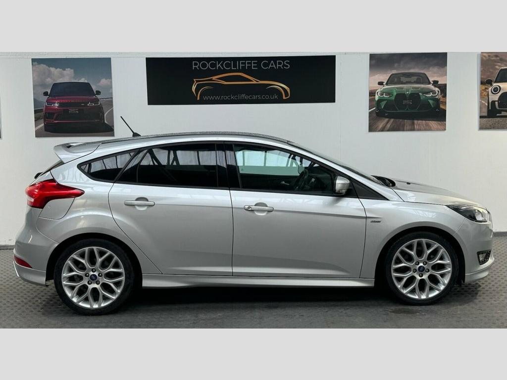 FOR SALE NOW – ROCKCLIFFE CARS, THORNABY FORD FOCUS 1.0T ECOBOOST ST-LINE – VO18USJ ONLY 46,000 MILES – 140PS – EURO 6 – 6-SPEED MANUAL – FINISHED IN SILVER Rockcliffe Cars are delighted to offer this sporty and stylish 2018 (18 plate) Ford Focus 1.0T EcoBoost ST-Line, finished in a sleek Silver Metallic and boasting an incredibly low 46,000 miles. This is the desirable 140ps version of Ford's award-winning EcoBoost engine, delivering fantastic performance, exceptional economy and superb reliability. With its ST-Line sports styling, dynamic chassis and upgraded interior, this Focus offers the perfect combination of everyday practicality and sporty driving enjoyment. ST-LINE SPORT STYLING & SPEC Being the ST-Line model, this Focus comes with an impressive list of features and enhancements: ST-Line body styling kit – Sporty front and rear bumpers – Rear spoiler – Side skirts 17-inch ST-Line alloy wheels Sports suspension Sports seats with red contrast stitching Flat-bottom ST-Line leather steering wheel SYNC 3 touchscreen infotainment system – DAB radio – Bluetooth – Smartphone compatibility – Voice control Air conditioning Keyless start USB/Aux connectivity Multi-function steering wheel LED daytime running lights …and more. PERFORMANCE & ECONOMY Ford's 1.0 EcoBoost engine is a multiple award-winner for a reason: 140 ps turbocharged petrol engine 6-speed manu 17in Alloy Wheels - Rock Metallic Finish, Air Conditioning - Manual, Airbags - Driver and Front Passenger, Airbags - Front and Rear Side Curtain, Airbags - Front Side Impact, Alarm - Thatcham Category 1 with Volume , Anti-Lock Braking System - ABS with Elec, Black Exterior Trim Detailing including , Body Colour Large Rear Spoiler and Side , Body Coloured Front Styling Kit with Cen, Centre Console - Premium with Sliding Ar, Colour TFT Instrument Cluster Display, Courtesy Light - Front and Rear Passenge, Door Mirrors - Heated - Electric - Integ, Drivers Seat Lumbar Adjust, Electronic Stability Programme - ESP - w, Emergency Brake Warning - Automatic Haza, EPAS - Electric Power Assisted Steerin