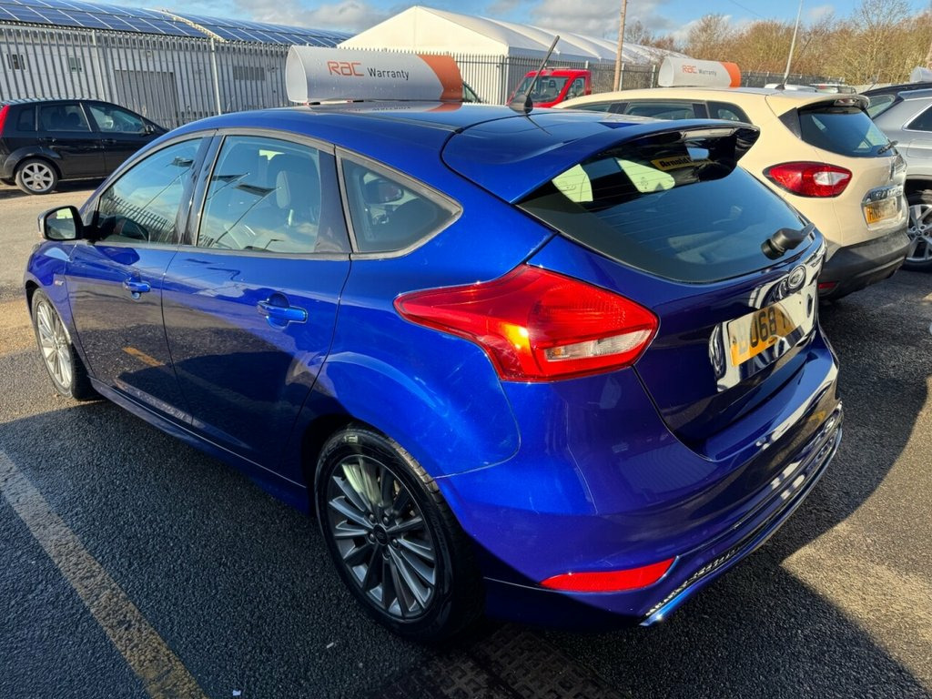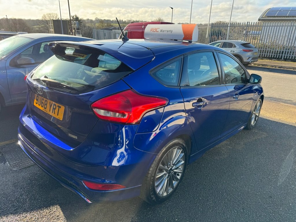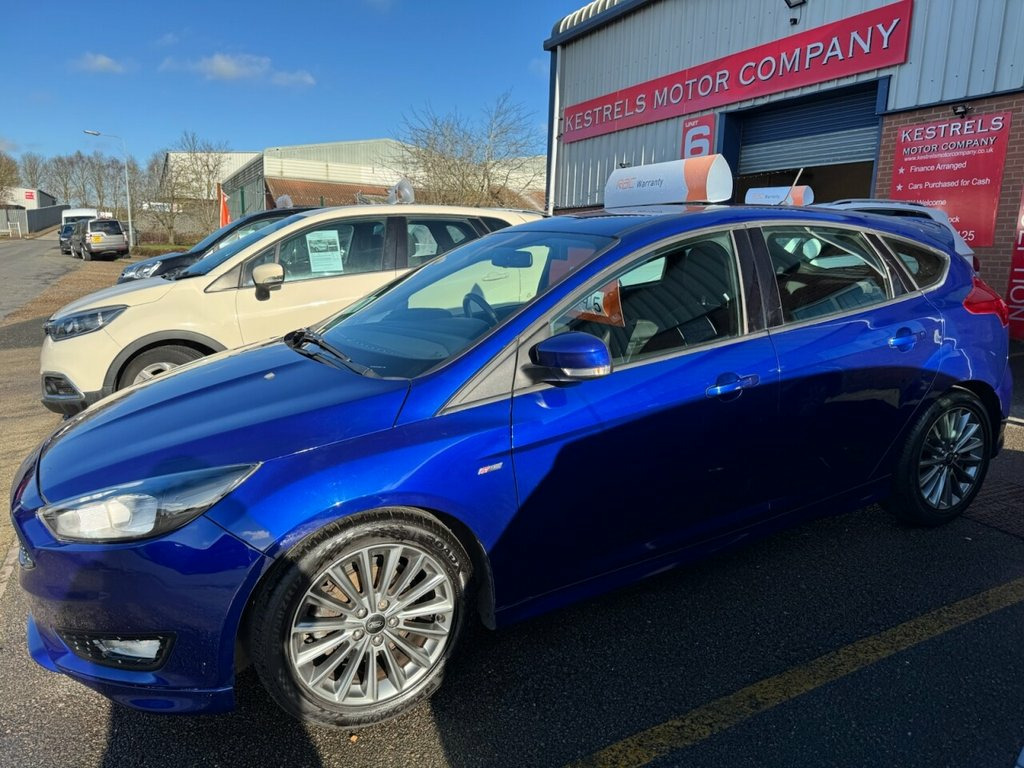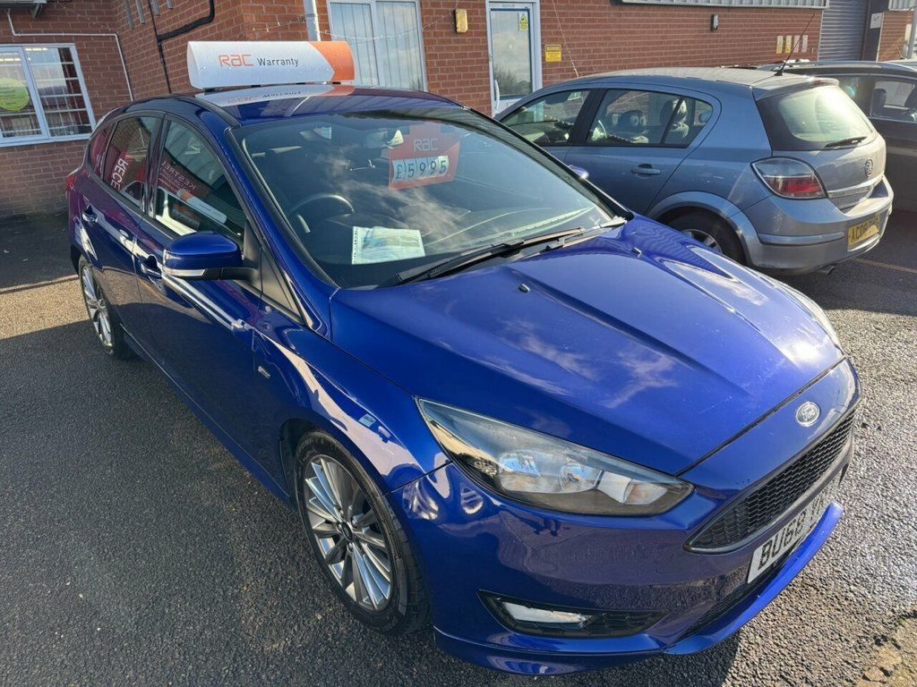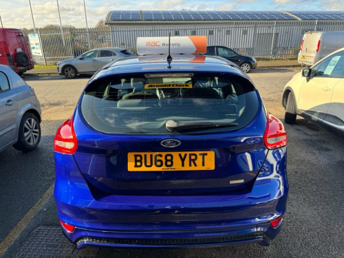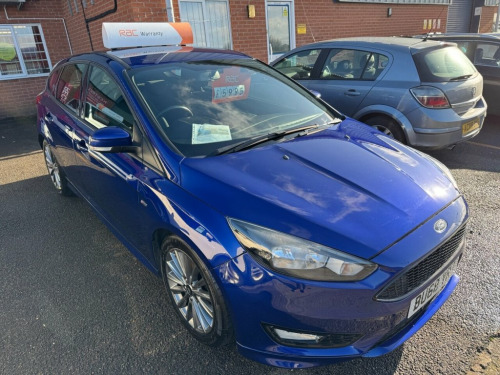 This 2018 Ford Focus ST-Line boasts an impressive MOT valid until December 2026, recent service and wetbelt kit offering you peace of mind for years to come. This 1.0 litre petrol model, finished in the sporty ST-Line trim, has a clear vehicle history check and was last serviced on 8th December 2025 at 75995 miles. It also comes with a 3 month warranty for added reassurance. Inside, you'll find manual air conditioning to keep you comfortable in all conditions. Experience the efficiency of this Focus, with a remarkable fuel economy of 58 miles per gallon and low CO2 emissions, making it a cost effective choice. Its performance is also noteworthy, achieving 0-60mph in just 10.4 seconds. These highlights demonstrate how this particular Ford Focus ST-Line offers a compelling combination of economy and driving enjoyment compared to other vehicles in its class. Part exchange welcome, finance arranged. 17in Alloy Wheels - Rock Metallic Finish, 18in Alloy Wheels - ST-Line - Rock Metal, Air Conditioning - Manual, Airbags - Driver and Front Passenger, Airbags - Front and Rear Side Curtain, Airbags - Front Side Impact, Alarm - Thatcham Category 1 with Volume , Anti-Lock Braking System - ABS with Elec, Black Exterior Trim Detailing including , Body Colour Large Rear Spoiler and Side , Body Coloured Front Styling Kit with Cen, Centre Console - Premium with Sliding Ar, Colour TFT Instrument Cluster Display, Courtesy Light - Front and Rear Passenge, Deep Impact Blue, Door Edge Protectors, Door Mirrors - Heated - Electric - Integ, Drivers Seat Lumbar Adjust, Electronic Stability Programme - ESP - w