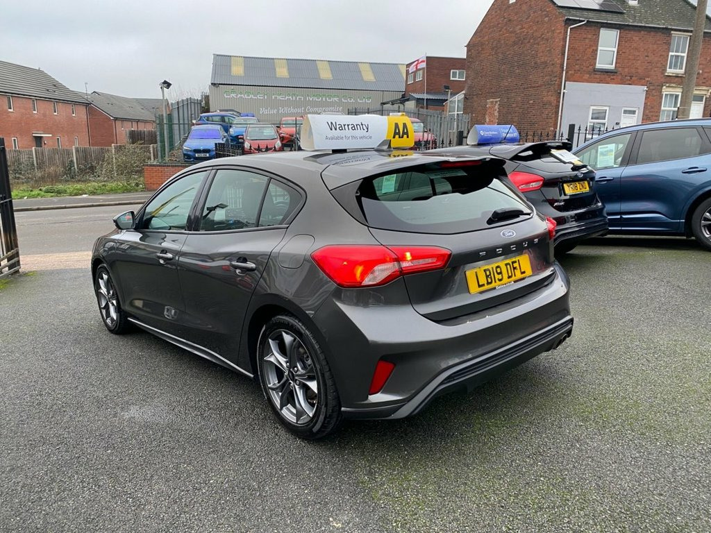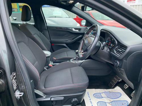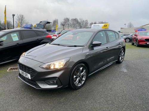 This 2019 Ford Focus ST Line presents an exceptional opportunity with its remarkably low mileage of just 39,000 miles. This 1.0 litre petrol model, finished in the sporty ST Line trim, is a Euro 6 compliant vehicle, indicating its adherence to modern emissions standards. Inside, you'll find the convenience of manual air conditioning and the advanced Ford SYNC system, complete with an 8 inch TFT touchscreen that seamlessly integrates with both Android Auto and Apple CarPlay, keeping you connected and entertained on every journey. Automatic on-off headlights add to the ease of driving, ensuring you always have optimal visibility. The Ford Focus ST Line offers a compelling blend of performance and efficiency. Its 1.0 litre engine delivers a brisk 0-60mph acceleration in 10.0 seconds, demonstrating its responsive nature. Furthermore, its low CO2 emissions highlight its economical and environmentally conscious design, making it a sensible choice for today's driver. These factors combined suggest that this particular Focus ST Line offers a superior driving experience and ownership proposition compared to many other vehicles in its class. 17in Alloy Wheels - 5x2-Spoke - Rock Met, Airbags - Driver and Front Passenger, Airbags - Front Side Impact, Airbags - Front and Rear Side Curtain, Alloy Finish Pedals, Body Colour Bumpers, Centre Console with Armrest, Cruise Control with Speed Limiter, Dark Headliner, Door Handles - Body Colour, Door Mirrors - Heated - Electric - Integ, ESC - Electronic Stability Control, Electric Parking Brake, Flat Bottomed Steering Wheel with Red St, Ford Easy Fuel System, Ford SYNC with 8in TFT Touchscreen, Front Floor Mats, Front Passenger Airbag Deactivation Swit, Front Seat - Drivers Manual Lumbar Suppo, Front and Rear Seatbelt Minder, Halogen Reflector Headlights, Headlights - Automatic On-Off, Keyl