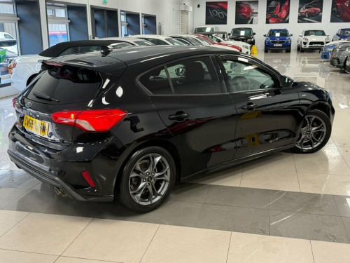 The FORD FOCUS 1.0T EcoBoost ST-Line Hatchback 5dr Petrol Manual Euro 6 (s/s) (125 ps) is a sporty, efficient compact hatch that delivers a great balance of everyday usability and engaging driving dynamics. Its 1.0-litre turbocharged three-cylinder petrol engine produces around 123 bhp (125 ps) with 125 lb-ft of torque, paired to a 6-speed manual gearbox for direct driver involvement. The Focus ST-Line hits a top speed of about 124 mph and can reach 0–60 mph in around 10 seconds, making it surprisingly punchy for its size. Overall, this Focus combines peppy performance, efficient running costs, and attractive equipment levels, making it a versatile choice for daily driving with a bit of extra style and flair. 17in Alloy Wheels - 5x2-Spoke - Rock Met, ABS - Anti-lock Braking System, Acoustic Laminated Windscreen, Airbags - Driver and Front Passenger, Airbags - Front Side Impact, Airbags - Front and Rear Side Curtain, Alarm - Thatcham Category 1 with Volume , Alloy Finish Pedals, Black Finish on Upper Door Line, Centre Console - Premium with Sliding Ar, Child Proof Rear Door Locks, Cruise Control with Speed Limiter, Dark Headliner, Door Handles - Body Colour, Door Mirrors - Heated - Electric - Integ, ESC - Electronic Stability Control, Electric Parking Brake, Emergency Assistance, Flat Bottomed Steering Wheel with Red St, Floor Mats - Front Velour, Fog Light Bezel - Unique ST-Line, Ford Easy Fuel S