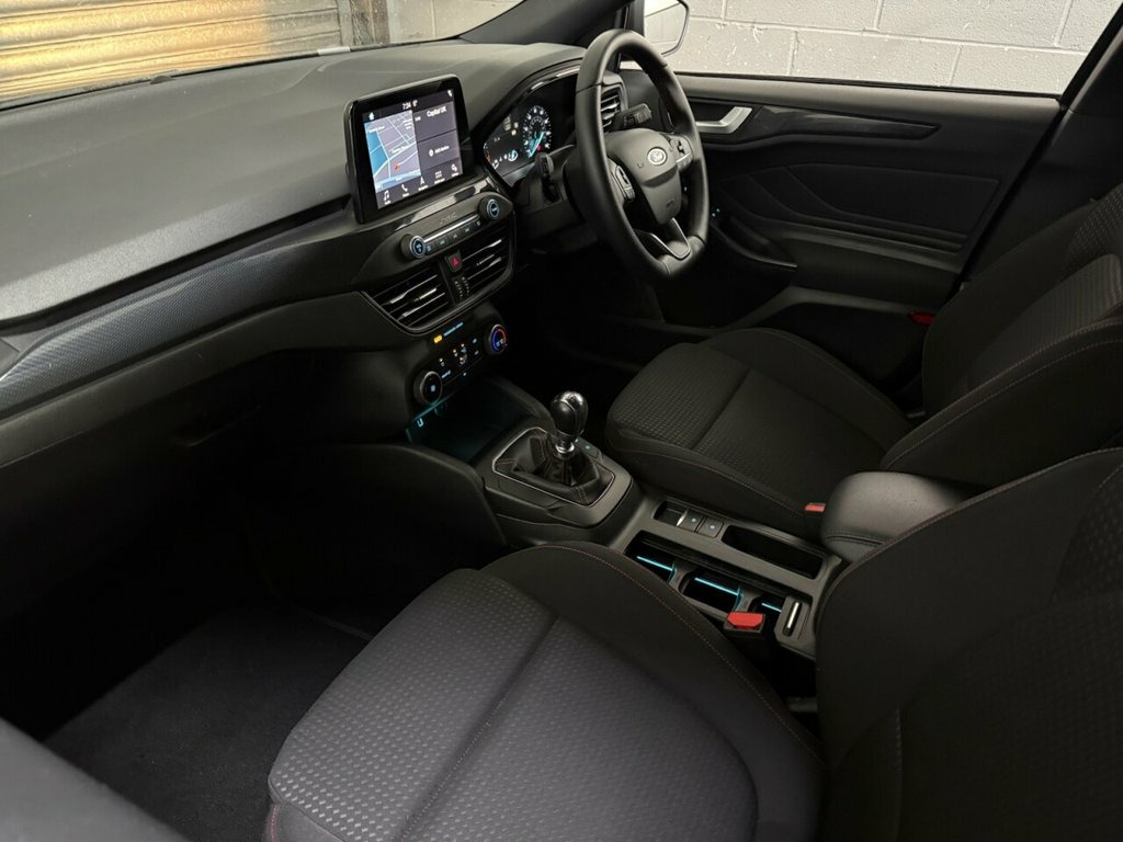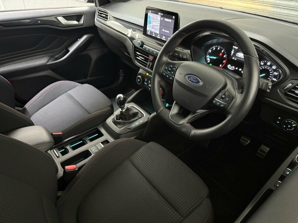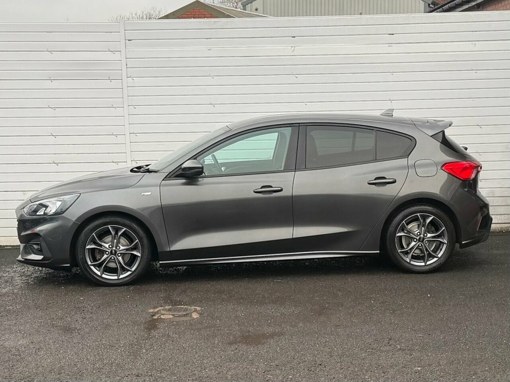 This 2019 Ford Focus 1.0T EcoBoost ST-Line Hatchback is a fantastic example that has been very well cared for and presents beautifully both inside and out. Finished in smart grey metallic paint and sitting on 17-inch alloy wheels, it has a sporty and modern appearance that really stands out. The car benefits from a full service history, has been well looked after, and drives superbly, offering an excellent balance of performance, comfort, and efficiency. The ST-Line specification provides a great level of equipment, including remote central locking, sun protection glass, electric windows front and rear, automatic headlights and wipers, and a lane departure warning system for added safety. Inside, the cabin is clean and well maintained, featuring a leather multifunction steering wheel, cruise control, DAB digital radio, satellite navigation, and a touchscreen multimedia system with Bluetooth telephone and audio connectivity. The vehicle also benefits from Apple CarPlay and Android Auto, twin cupholders, USB input, a sliding armrest, and ISOFIX child seat points, making it both practical and family friendly. Powered by the economical yet responsive 1.0T EcoBoost engine producing 125 ps and paired with a smooth manual gearbox, this Focus is Euro 6 compliant and suitable for ULEZ and clean air zones. A very smart, well-specified example that is ready to drive away and would make an excellent everyday car. 17in Alloy Wheels - 5x2-Spoke - Rock Met, Airbags - Driver and Front Passenger, Airbags - Front Side Impact, Airbags - Front and Rear Side Curtain, Alloy Finish Pedals, Body Colour Bumpers, Centre Console with Armrest, Cruise Control with Speed Limiter, Dark Headliner, Door Handles - Body Colour, Door Mirrors - Heated - Electric - Integ, ESC - Electronic Stability Control, Electric Parking Brake, Flat Bottomed Steering Wheel with Red St, Ford Easy Fuel System, Ford SYNC with 8in TFT Touchscreen, Front Floor Mats, Front Passenger Airbag Deactivation Swit, Front Seat - Drivers Manual Lumbar Suppo, Front and Rear Seatbelt Minder, Halogen Reflector Headlights, Headlights - Automatic On-Off, Keyl