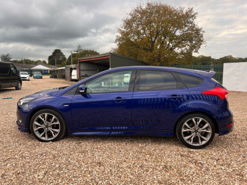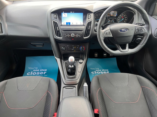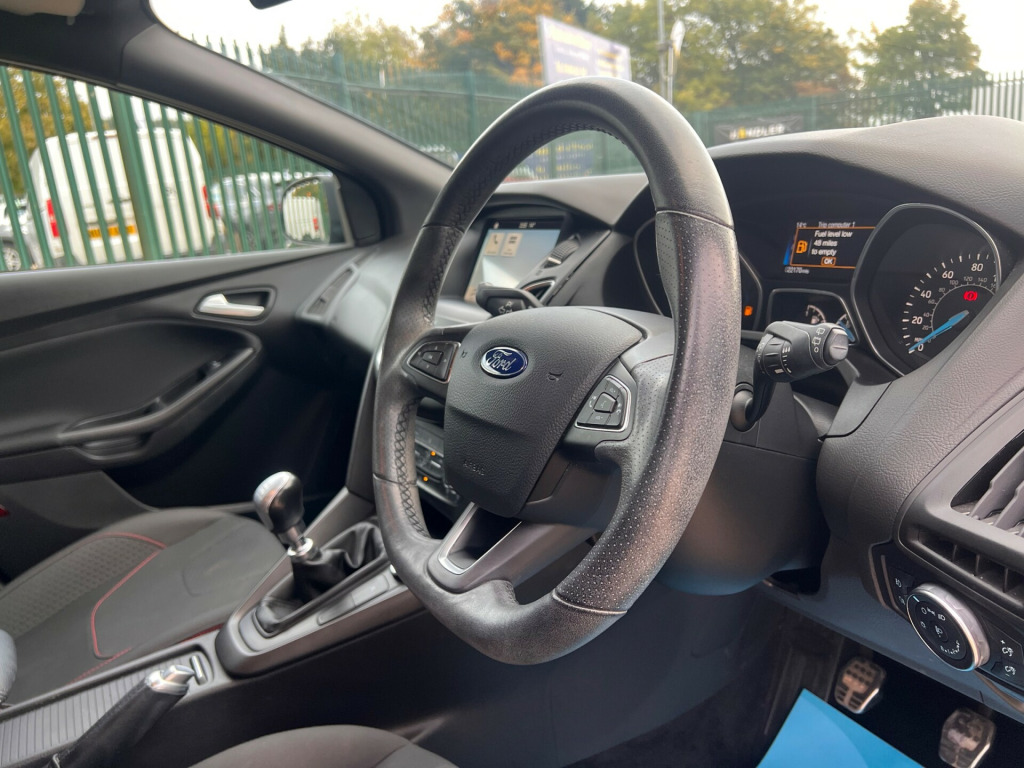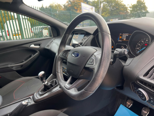 Presenting the 2017 Ford Focus 1.0T EcoBoost ST-Line Hatchback with only 22000 miles on the clock, this sleek and stylish Hatchback is powered by a reliable Petrol engine and comes with a manual transmission. With a fresh MOT on sale, this 5-door, 5-seater vehicle is ULEZ compliant, making it perfect for city driving. Featuring 17in Alloy Wheels in a Rock Metallic Finish, Black Exterior Trim Detailing, and a Body Colour Large Rear Spoiler and Side Skirts, this Ford Focus is as eye-catching as it is practical. The inclusion of heated, electric, and integrated body-colored door mirrors adds both convenience and style to this exceptional vehicle. Don't miss your chance to own this stunning and efficient Ford Focus, perfect for both city driving and longer journeys.- Very low mileage at just 22k with full service history- New MOT on sale- Ulez compliant Euro 6- Low tax- Finance Available- Part Exchange Welcome- Extended Warranties Available in alloy wheels - rock metallic finish, black exterior trim detailing including upper door line and headlamp surround, body colour large rear spoiler and side skirts, body coloured front styling kit with centre aero foil, door mirrors - heated - electric - integrated side indicators - body coloured, locking wheel nuts, quickclear heated front windscreen with heated washer jets, rear bumper with integral body coloured diffuser and honeycomb mesh in high-gloss black, st line stainless steel scuff plates, spare wheel - mini steel, upper and lower grille - high gloss black honeycomb design, windows - electrically operated front with one touch lowering on drivers side, wipers - standard with 6 speed interval settings, air conditioning - manual, courtesy light - front and rear passengers - overhead halogen and load compartment, drivers seat lumbar adjust, front floor mats, front seat - drivers manual height and fore-aft adjustment, front seat - passenger manual fore-aft adjustment, front seats - sports style, gearshift knob - leather, headliner - black woven, interior door lever - chrome finish, keyless start, leather-trimmed handbrake, mykey, premium centre console - sliding armrest, rear seat - 60-40 split back and cushion, sports style pedals - gear knob and steering wheel, steering column - rake and reach adjustment, steering wheel - 3 spoke - leather trimmed, alarm - thatcham category 1 with volume sensing and perimeter, electronic stability programme - esp - with traction control and emergency brake assist - eba, ford easy-fuel capless refuelling system, ips - intelligent protection system, remote central-double locking, tvc - torque vectoring control, colour tft instrument cluster display, ford sync3 dab navigation system, sync3 with 8in touchscreen dab audio system, epas - electric power assisted steering, ford eco mode - driver information system, front suspension - independent with macpherson struts and anti-roll bar, rear suspension - independent control blade multi-link system and anti-roll bar, suspension - sports, trip computer, tyre pressure monitoring system, front fog lights, halogen headlights with black surround, led daytime running lights, rear lights - led