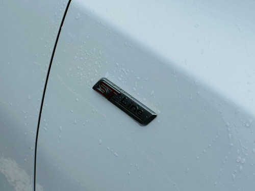 . 17in Alloy Wheels - 5x2-Spoke - Rock Metallic, Airbags - Driver and Front Passenger, Airbags - Front Side Impact, Airbags - Front and Rear Side Curtain, Alloy Finish Pedals, Body Colour Bumpers, Centre Console with Armrest, Cruise Control with Speed Limiter, Dark Headliner, Door Handles - Body Colour, Door Mirrors - Heated - Electric - Integrated Side Indicators - Body Coloured, ESC - Electronic Stability Control, Electric Parking Brake, Flat Bottomed Steering Wheel with Red Stitching, Ford Easy Fuel System, Ford SYNC with 8in TFT Touchscreen, Front Floor Mats, Front Passenger Airbag Deactivation Switch, Front Seat - Drivers Manual Lumbar Support Adjustment, Front and Rear Seatbelt Minder, Halogen Reflector Headlights, Headlights - Automatic On-Off, Keyless Start with Ford Power Start Button, LED Daytime Running Lights, LED Front Fog Lights with Cornering Function, Lane Keeping Aid with Lane Departure Warning, Large Body Coloured Rear Spoiler, Manual Air Conditioning, MyKey, Polished Twin Tailpipe, Post Collision Braking, Pre-Collision Assist with Autonomous Emergency Braking and Pedestrian-Cyclist Detection, Pre-Collision Assist with Pedestrian Detection, Quickclear Heated Windscreen, Rear Centre Headrest, Rear Seats - Auto Fold, Remote Central Locking and Engine Immobiliser, Selectable Drive Mode, Spare Wheel - Mini Steel, Sports Tuned Suspension, Steering Wheel - 3-Spoke - Leather Trimmed, Thatcham Category 1 Alarm, Trip Computer, Tyre Pressure Monitoring System, Unique ST-Line Upper and Lower Grille and Full Bodystyling Kit and ST-Line Wing Badges, Windows - Electrically Operated Front and Rear with One Touch Opening and Closing, Frozen White.