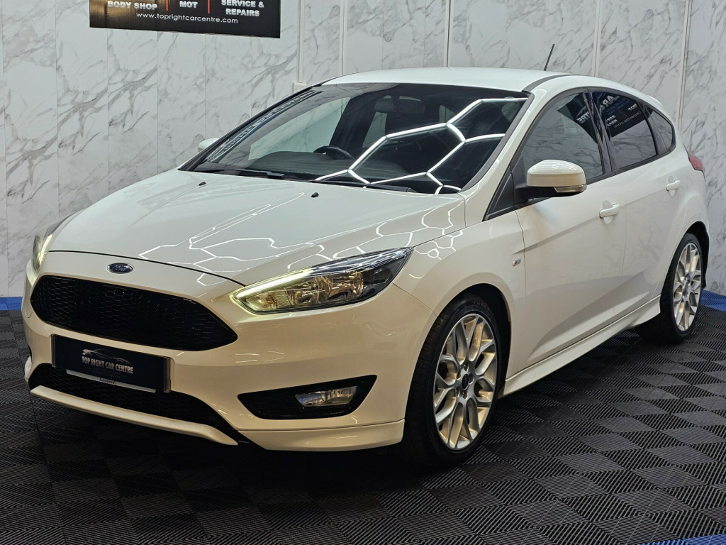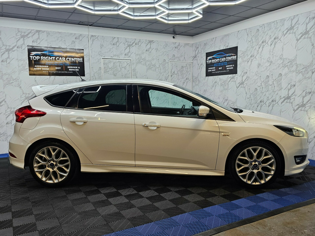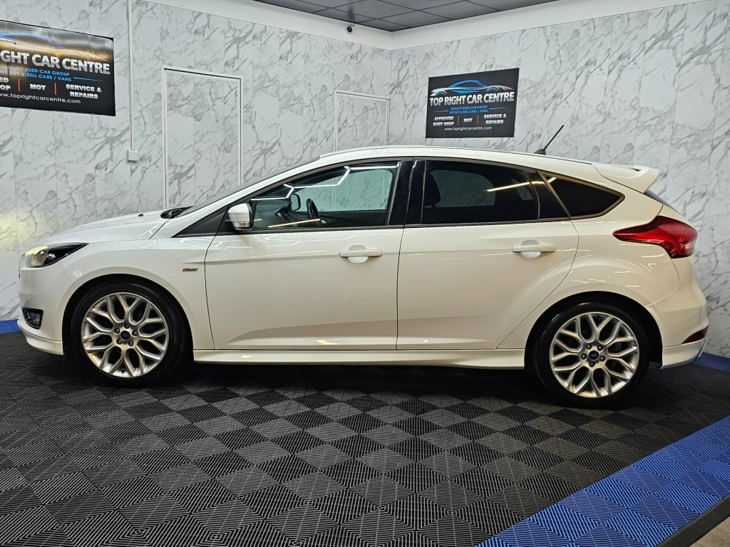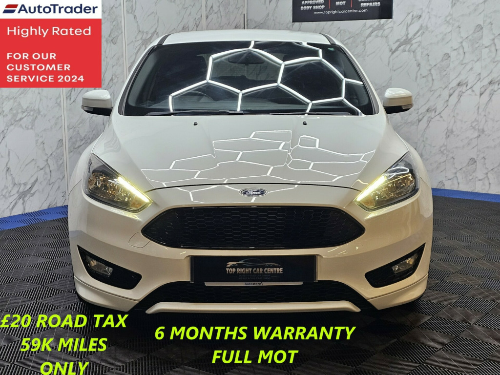 6 MONTHS WARRANTY AND BREAKDOWN COVER WITH THIS CAR..Low mileage 59k miles only. Low 20 pounds road tax per yearFULL SERVICE HISTORY. FULL MOT ON SALE previous mot got no advisories.This stunning Ford Focus has been sourced directly from its Previous Private Owner. Every now and again, a car comes into stock at Top Right Car Centre, that you cannot help but fall in love with.Top Spec ST-Line has massive centre touch screen with satnav, daytime running led lights, climate control, electric windows.Clean Car in white colour. Great comfortable family car. Well maintained body work and interior. Bullet fast response. Checked by our engineers. Professionally detailed. Good reliable runner. Price checked. We've just completed a full pre delivery inspection on the car to give you complete piece of mind. We just done the fresh service. 2 Central locking keys. Smooth gear box. Clean alloy wheels. Excellent condition tyres. Multimedia has Bluetooth RADIO mp3 USB. Run with no fault strong reliable engine. Good fuel economy. First to see will buy it this well looked after car. cat S. p/x welcome. We do price our cars/van as competitively as possible and because of this we sell cars/vans very quickly. BE QUICK! MISS IT - MISS OUT. With so much variety, quality and highly rated award winner 2024, it is no wonder we are super busy all the time. Why Buy From Top Right Car Centre?Thoroughly Inspected Cars. All our vehicles are quality-checked and HPi verified, giving you peace of mind with every purchase.Award-Winning Family Business. As a trusted family-run business, we have earned awards for our customer service and expertise.Hand-Picked, Quality Cars. We carefully select only the finest cars with full service histories, so you can drive away with confidence.Test Driven for Assurance. Each car is personally test-driven by our team, ensuring it meets our high standards.Flexible Finance Options. We offer competitive and tailored finance solutions to suit your needs and budget.Looking to upgrade? We are happy to take your current car in part exchange.Delivery Service. Need it delivered? We have got you covered.Please visit our website www.toprightcarcentre.com in alloy wheels - rock metallic finish, black exterior trim detailing including upper door line and headlamp surround, body colour large rear spoiler and side skirts, body coloured front styling kit with centre aero foil, door mirrors - heated - electric - integrated side indicators - body coloured, locking wheel nuts, quickclear heated front windscreen with heated washer jets, rear bumper with integral body coloured diffuser and honeycomb mesh in high-gloss black, st line stainless steel scuff plates, spare wheel - mini steel, upper and lower grille - high gloss black honeycomb design, windows - electrically operated front with one touch lowering on drivers side, wipers - standard with 6 speed interval settings, air conditioning - manual, courtesy light - front and rear passengers - overhead halogen and load compartment, drivers seat lumbar adjust, front floor mats, front seat - drivers manual height and fore-aft adjustment, front seat - passenger manual fore-aft adjustment, front seats - sports style, gearshift knob - leather, headliner - black woven, interior door lever - chrome finish, keyless start, leather-trimmed handbrake, mykey, premium centre console - sliding armrest, rear seat - 60-40 split back and cushion, sports style pedals - gear knob and steering wheel, steering column - rake and reach adjustment, steering wheel - 3 spoke - leather trimmed, alarm - thatcham category 1 with volume sensing and perimeter, electronic stability programme - esp - with traction control and emergency brake assist - eba, ford easy-fuel capless refuelling system, ips - intelligent protection system, remote central-double locking, tvc - torque vectoring control, colour tft instrument cluster display, ford sync3 dab navigation system, sync3 with 8in touchscreen dab audio system, epas - electric power assisted steering, ford eco mode - driver information system, front suspension - independent with macpherson struts and anti-roll bar, rear suspension - independent control blade multi-link system and anti-roll bar, suspension - sports, trip computer, tyre pressure monitoring system, front fog lights, halogen headlights with black surround, led daytime running lights, rear lights - led
