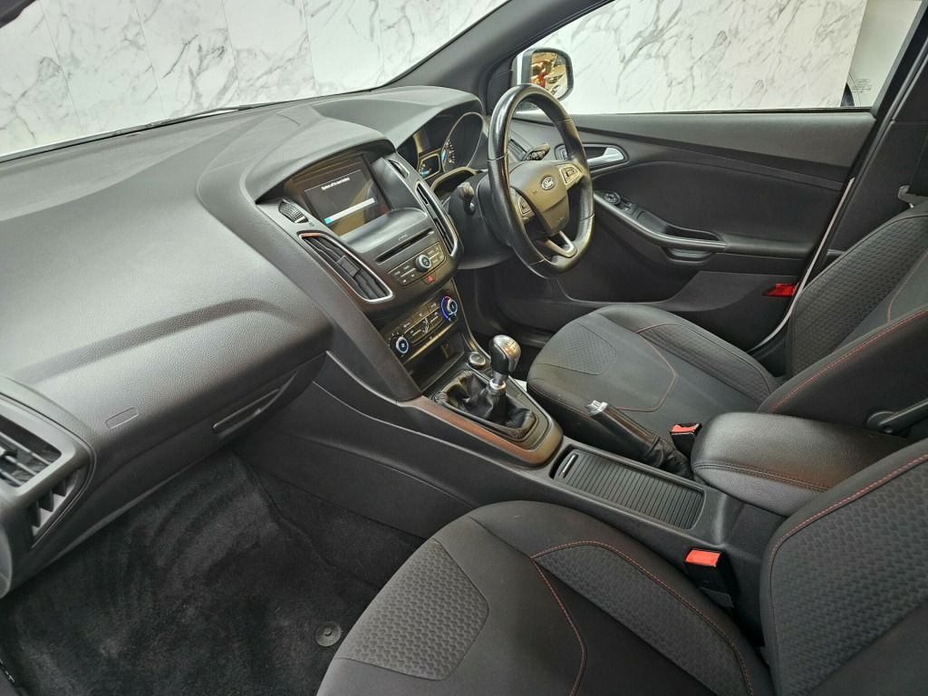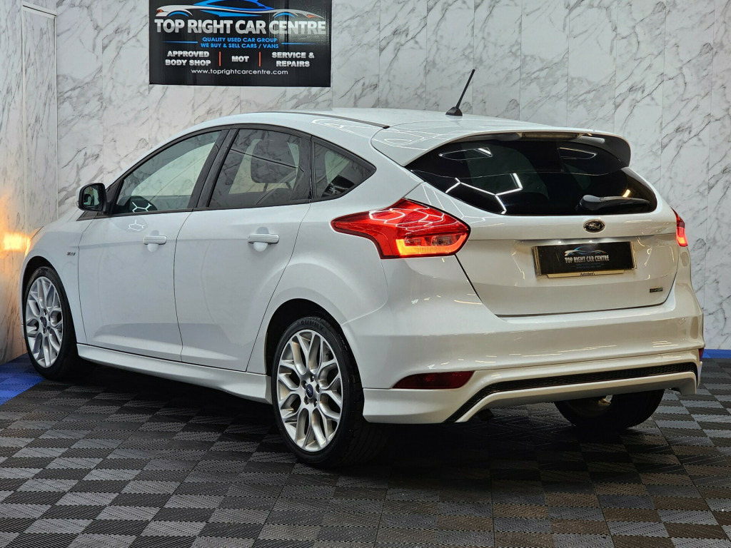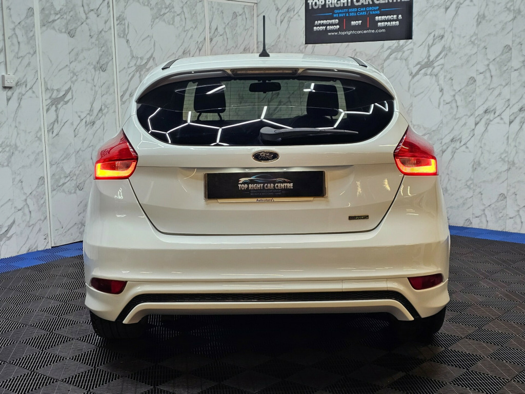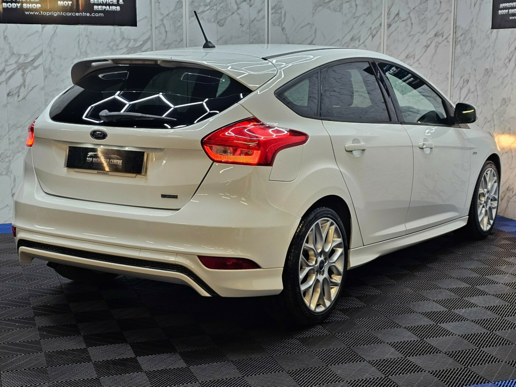 6 MONTHS WARRANTY AND BREAKDOWN COVER WITH THIS CAR..Low mileage 59k miles only. Low 20 pounds road tax per yearFULL SERVICE HISTORY. FULL MOT ON SALE previous mot got no advisories.This stunning Ford Focus has been sourced directly from its Previous Private Owner. Every now and again, a car comes into stock at Top Right Car Centre, that you cannot help but fall in love with.Top Spec ST-Line has massive centre touch screen with satnav, daytime running led lights, climate control, electric windows.Clean Car in white colour. Great comfortable family car. Well maintained body work and interior. Bullet fast response. Checked by our engineers. Professionally detailed. Good reliable runner. Price checked. We've just completed a full pre delivery inspection on the car to give you complete piece of mind. We just done the fresh service. 2 Central locking keys. Smooth gear box. Clean alloy wheels. Excellent condition tyres. Multimedia has Bluetooth RADIO mp3 USB. Run with no fault strong reliable engine. Good fuel economy. First to see will buy it this well looked after car. cat S. p/x welcome. We do price our cars/van as competitively as possible and because of this we sell cars/vans very quickly. BE QUICK! MISS IT - MISS OUT. With so much variety, quality and highly rated award winner 2024, it is no wonder we are super busy all the time. Why Buy From Top Right Car Centre?Thoroughly Inspected Cars. All our vehicles are quality-checked and HPi verified, giving you peace of mind with every purchase.Award-Winning Family Business. As a trusted family-run business, we have earned awards for our customer service and expertise.Hand-Picked, Quality Cars. We carefully select only the finest cars with full service histories, so you can drive away with confidence.Test Driven for Assurance. Each car is personally test-driven by our team, ensuring it meets our high standards.Flexible Finance Options. We offer competitive and tailored finance solutions to suit your needs and budget.Looking to upgrade? We are happy to take your current car in part exchange.Delivery Service. Need it delivered? We have got you covered.Please visit our website www.toprightcarcentre.com in alloy wheels - rock metallic finish, black exterior trim detailing including upper door line and headlamp surround, body colour large rear spoiler and side skirts, body coloured front styling kit with centre aero foil, door mirrors - heated - electric - integrated side indicators - body coloured, locking wheel nuts, quickclear heated front windscreen with heated washer jets, rear bumper with integral body coloured diffuser and honeycomb mesh in high-gloss black, st line stainless steel scuff plates, spare wheel - mini steel, upper and lower grille - high gloss black honeycomb design, windows - electrically operated front with one touch lowering on drivers side, wipers - standard with 6 speed interval settings, air conditioning - manual, courtesy light - front and rear passengers - overhead halogen and load compartment, drivers seat lumbar adjust, front floor mats, front seat - drivers manual height and fore-aft adjustment, front seat - passenger manual fore-aft adjustment, front seats - sports style, gearshift knob - leather, headliner - black woven, interior door lever - chrome finish, keyless start, leather-trimmed handbrake, mykey, premium centre console - sliding armrest, rear seat - 60-40 split back and cushion, sports style pedals - gear knob and steering wheel, steering column - rake and reach adjustment, steering wheel - 3 spoke - leather trimmed, alarm - thatcham category 1 with volume sensing and perimeter, electronic stability programme - esp - with traction control and emergency brake assist - eba, ford easy-fuel capless refuelling system, ips - intelligent protection system, remote central-double locking, tvc - torque vectoring control, colour tft instrument cluster display, ford sync3 dab navigation system, sync3 with 8in touchscreen dab audio system, epas - electric power assisted steering, ford eco mode - driver information system, front suspension - independent with macpherson struts and anti-roll bar, rear suspension - independent control blade multi-link system and anti-roll bar, suspension - sports, trip computer, tyre pressure monitoring system, front fog lights, halogen headlights with black surround, led daytime running lights, rear lights - led
