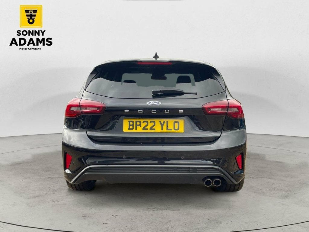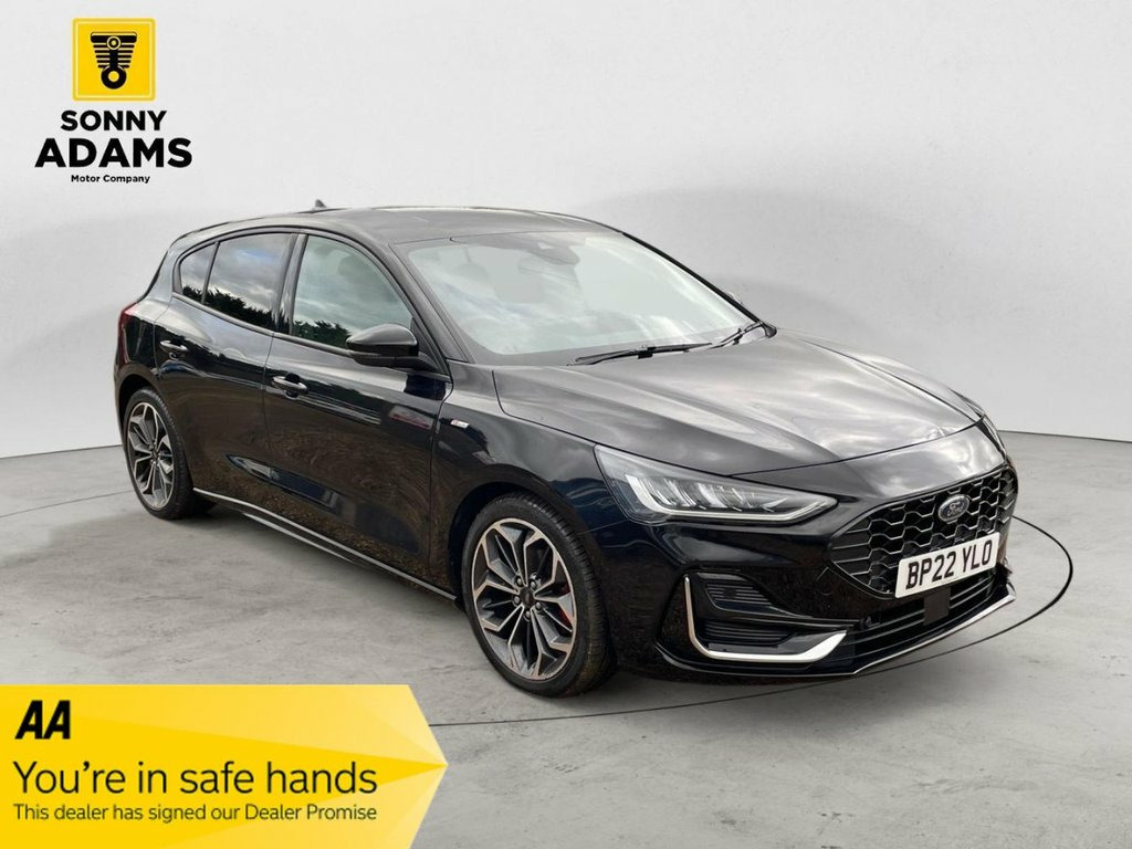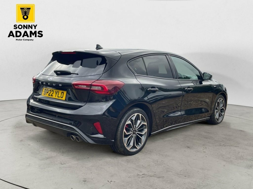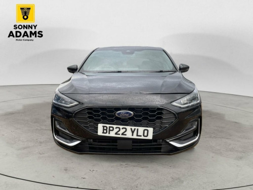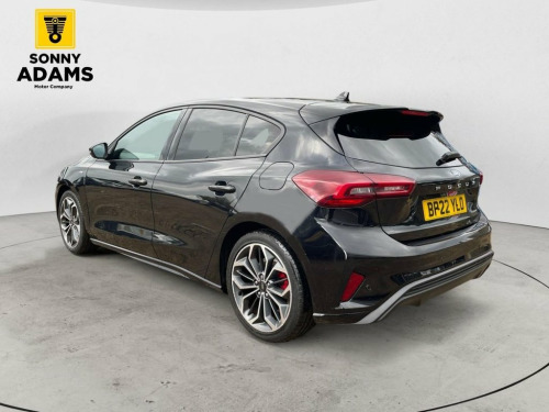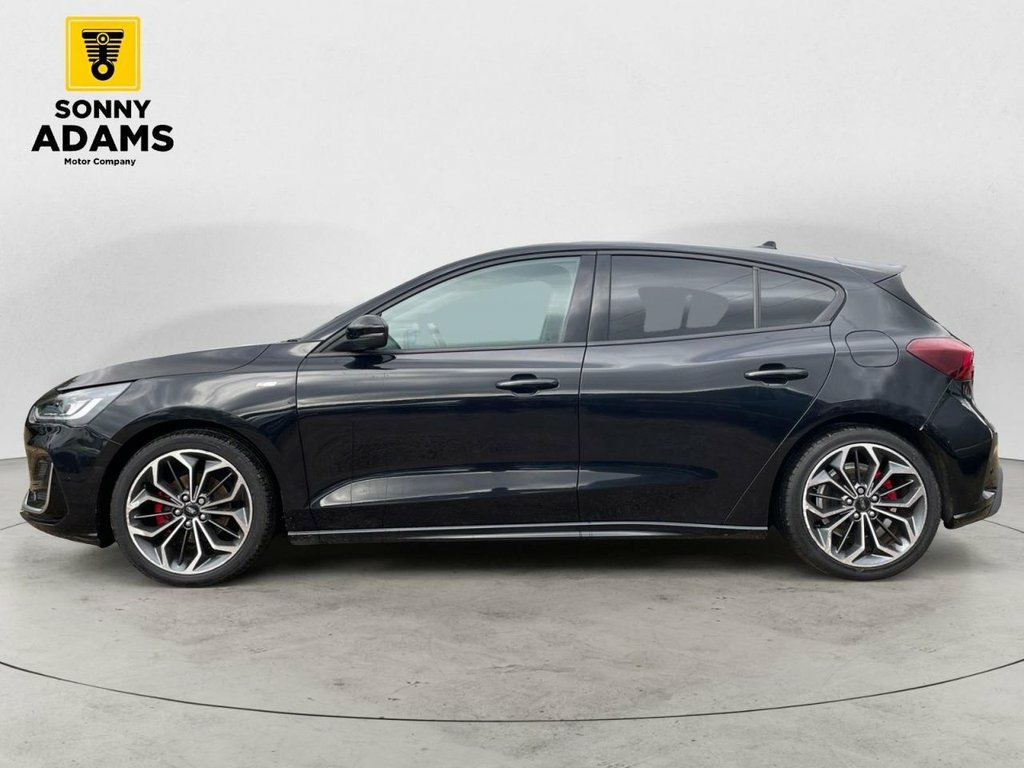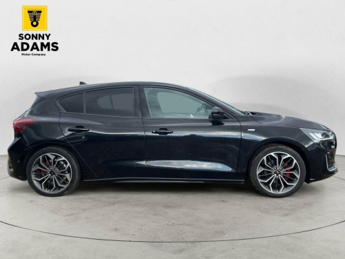 Introducing the Ford Focus 1.0T EcoBoost ST-Line Vignale Hatchback – a dynamic and stylish 5-door petrol manual delivering 125PS and compliant with Euro 6 emissions standards (s/s). Finished in Agate Black (£575) and paired with premium Full Sensico Ebony upholstery with red stitching, this model combines refined comfort, sporty performance, and striking design. Externally, it features 18-inch 5x3-spoke alloy wheels in High Gloss Pearl Grey with a machined edge, the ST-Line bodystyling kit, large rear spoiler, polished twin tailpipes, and rear privacy glass for a bold, athletic look. LED technology is used throughout, including full fixed LED headlights, LED fog lights with cornering function, and LED rear lights, while automatic headlights and rain-sensing wipers add everyday convenience. Inside, the cabin blends technology and comfort with the Ford SYNC4 Navigation system and 13.2-inch touchscreen, 12.3-inch digital instrument cluster, wireless charging, and FordPass Connect. Ambient LED lighting, rear courtesy lights, double-stitched mats, and a sliding armrest with cupholder and cover create a premium atmosphere. Driver comfort is enhanced with dual-zone electronic climate control (DEATC), sports-style V-shape seats, 4-way power driver adjustment, 4-way manual passenger adjustment, a load-through ski hatch, and rear 60/40 split folding seats. The Quickclear heated windscreen, heated power-fold mirrors with puddle lights, and Winter Pack ensure year-round co 18in Alloy Wheels - 5x3 Spoke - High Glo, ABS - Anti-lock Braking System, Acoustic Laminated Windscreen, Airbags - Driver and Front Passenger, Airbags - Front Side Impact, Airbags - Front and Rear Side Curtain, Automatic Dimming Rear View Mirror, Black Finish on Upper Door Line, Centre Console - Premium with Sliding Ar, Courtesy Light - Ambient LED Courtesy Li, Cruise Control with Adjustable Speed Lim, DEATC - Dual-Zone Electronic Automatic T, Door Handles - Body Colour, Door Mirrors - Electrically-Operated - H, EBA - Emergency Brake Assist, ESC - Electronic Stability Control, Electric Parking Brake, Fog Light Bezel - Unique ST-Line, Ford Easy Fuel System, Ford Key Free System - Keyless Entr