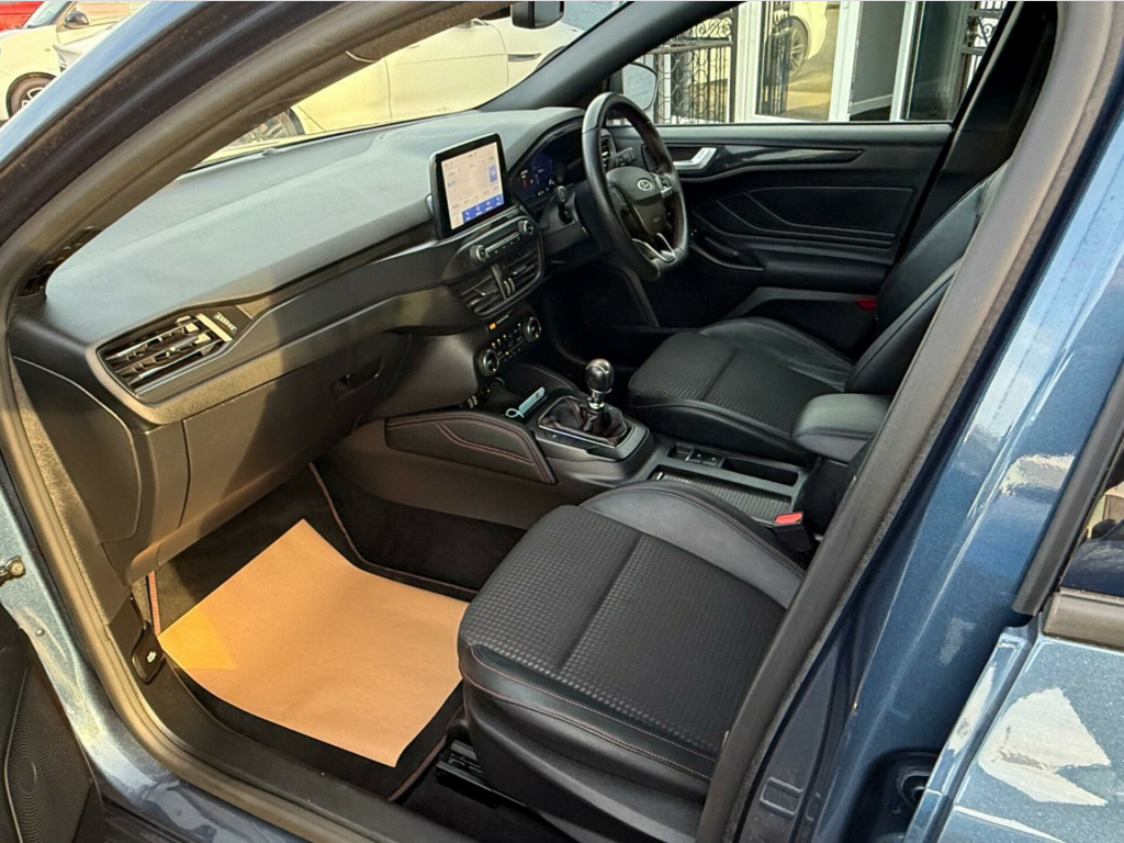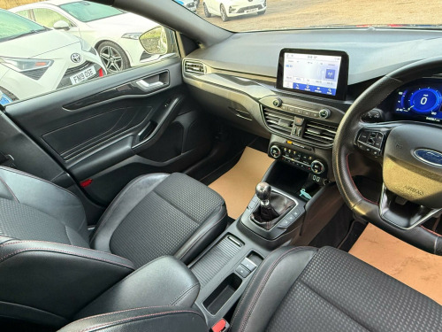NEW WET BELT+ This 2021 Ford Focus ST-Line X Edition is a Euro 6 compliant 1.0 litre petrol model, offering a blend of sporty styling and practical features. As a T ST-Line X Edition variant, it comes with the ST-Line X Edition trim, ensuring a well equipped interior. Notable features include front and rear parking sensors for easier manoeuvring, and DEATC dual zone electronic automatic temperature control for personalised comfort. The Ford Key Free System allows for keyless entry and start, while fixed LED headlamps provide excellent visibility. For seamless connectivity and navigation, it boasts the Ford SYNC3 DAB Navigation System, compatible with Android Auto and Apple CarPlay, alongside Bluetooth.This Focus excels with a highlight fuel economy of 51 miles per gallon, demonstrating its efficiency. It also offers generous boot space, making it ideal for everyday use and longer journeys. With low CO2 emissions, it represents a more environmentally conscious choice. The acceleration from 0-62mph in 10.0 seconds indicates a responsive driving experience. These highlights collectively show how this Ford Focus offers a superior combination of economy, practicality, and performance compared to other vehicles in its class. iver assistance pack, convenience pack, 18in alloy wheels - 5x2 spoke - gloss black - machined finish, 6-way power adjustment driver seat, abs - anti-lock braking system, acoustic laminated windscreen, airbags - driver and front passenger, airbags - front side impact, airbags - front and rear side curtain, alarm - thatcham category 1 with volume sensing and perimeter, alloy finish pedals, automatic dimming rear view mirror, black finish on upper door line, centre console - premium with sliding armrest - cupholder with sliding cover - 12v front power point, cruise control with speed limiter, deatc - dual-zone electronic automatic temperature control, dark headliner, door handles - body colour, door mirrors - electrically-operated - heated - power-foldable - body colour housings - side indicators - puddle lights, esc - electronic stability control, electric parking brake, fixed led headlamps, fog light bezel - unique st-line, ford easy fuel system, ford key free system - keyless entry with keyless start, ford sync3 dab navigation system, fordpass connect, front bumper - unique st-line - body colour upper - body colour extension, front lower grille - black mesh, front passenger airbag deactivation switch, front seat - drivers electrically-operated lumbar support adjustment, front seat - passenger manual height - lumbar and fore-aft adjustment, front seatback map pockets - driver and passenger, front seats - driver and passenger heated seats, front seats - sports style v-shape with high bolster, front upper grille - black mesh with black surround, front and rear floor mats with red stitching, front and rear seatbelt minder, gearshift knob - st-line aluminium, headlight bezel - black, headlights - automatic on-off, heated steering wheel, hill start assist, intelligent speed assistance, led daytime running lights, led front fog lights with cornering function, lane keeping aid with lane departure warning, large rear spoiler - body colour with centre high mounted stop light, load compartment area cover, load floor carpet, locking wheel nuts, mykey, overhead console - medium length with front and rear led courtesy lights, parking sensor - front and rear, polished twin tailpipe, post collision braking, power rear door child locks, power steering, pre-collision assist with autonomous emergency braking and pedestrian-cyclist detection, quickclear heated windscreen, rain sensitive windshield wipers, rear bumper - unique st-line body colour with body colour extension, rear centre headrest, rear fog lamps, rear lights - led, rear privacy glass, rear seat - 60-40 split folding seats, rear seat fixed cushion, red brake calipers, remote central locking and engine immobiliser, remote central-double locking, st-line badge, scuff plates - front polished stainless steel with etched st-line logo, seats - isofix mounting provision for child seats, selectable drive mode, side skirts - unique st-line body colour, soft console knee pads with red stitching, spare wheel - mini steel, sports tuned suspension, steering column - rake and reach adjustment, steering wheel - 3-spoke sensico trimmed with integrated audio controls, tailgate wash-wipe, traction control - tc, trailer sway control, trip computer, tyre pressure monitoring system, unique door and instrument panel inserts, unique st-line upper and lower grille and full bodystyling kit and st-line wing badges, windows - electrically operated front and rear with one touch opening and closing