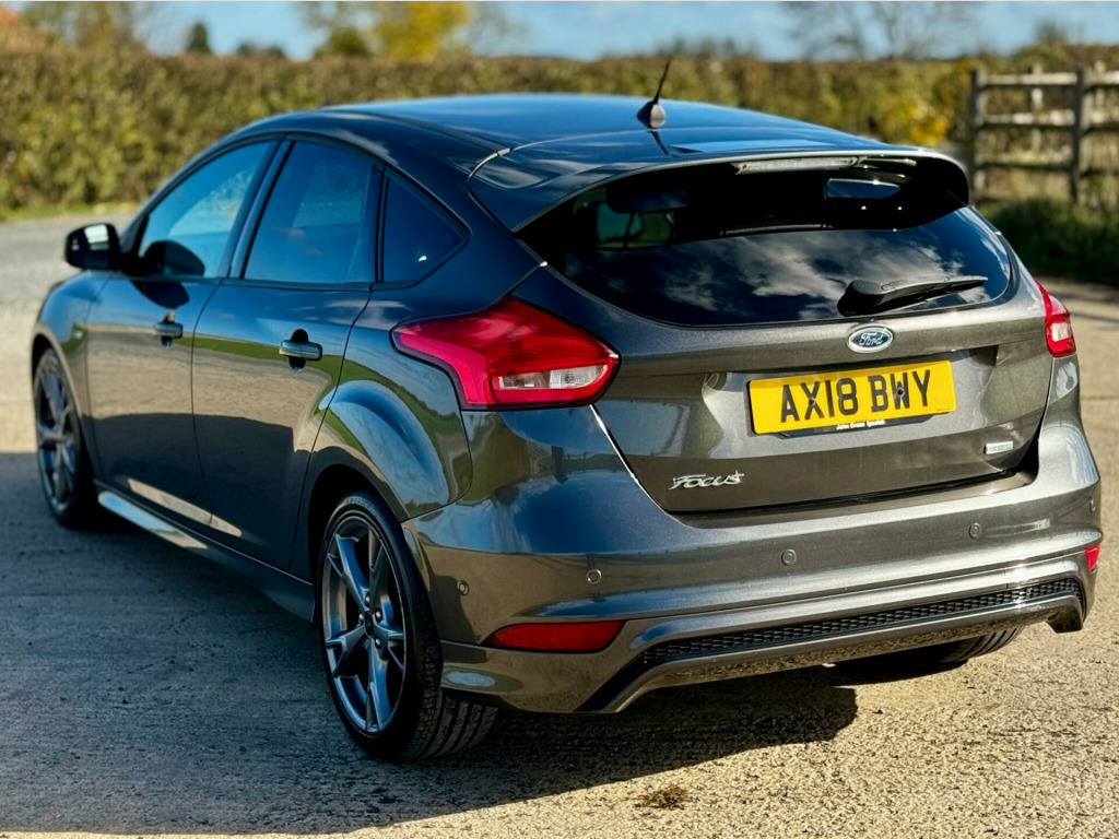 This 2018 Ford Focus T ST-Line X is an outstanding example, combining sporty design with everyday practicality. With exceptionally low mileage of just 45,000 miles, this Euro 6 compliant 1.0-litre petrol model delivers both efficiency and performance.Equipped with the desirable ST-Line X trim, it features a Premium Ford SYNC 3 DAB Navigation System with Apple CarPlay, rear parking sensors with parking assistance, and automatic headlights for added convenience. Comfort is taken care of by the DEATC dual-zone electronic automatic temperature control, ensuring a pleasant cabin climate for all passengers.This Focus offers an impressive fuel economy of 58 MPG and low CO₂ emissions, making it both cost-effective and eco-friendly. The Active City Stop safety system provides extra reassurance in urban driving, while the generous boot space ensures practicality for families or travellers.It comes supplied with two keys, a full service history, and the cambelt/wetbelt has just been replaced—offering superb peace of mind for the next owner. A fresh 12 months MOT will also be provided upon sale.⸻Key Features: • 2018 Ford Focus T ST-Line X • Only 45,000 miles from new • 1.0L petrol engine – Euro 6 compliant • Full service history • Cambelt / wetbelt just replaced • 2 keys included • 12 months MOT included • Premium Ford SYNC 3 DAB Navigation System with Apple CarPlay • Rear parking sensors with parking assistance • Automatic headlights • DEATC dual-zone electronic automatic temperature control • Active City Stop safety feature • 58 MPG combined fuel economy • Low CO₂ emissions • Spacious boot – ideal for families or travel • 0–62 mph in just 10.4 seconds. 18in Alloy Wheels - ST-Line - Rock Metallic, Airbags - Driver and Front Passenger, Airbags - Front Side Impact, Airbags - Front and Rear Side Curtain, Alarm - Thatcham Category 1 with Volume Sensing and Perimeter, Anti-Lock Braking System - ABS with Electronic Brake Force Distribution - EBD, Automatic Dimming Rear View Mirror, Automatic Headlights, Black Exterior Trim Detailing including Upper Door Line and Headlamp Surround, Body Colour Large Rear Spoiler and Side Skirts, Body Coloured Front Styling Kit with Centre Aero Foil, Centre Console - Premium with Sliding Armrest - Covered Stowage Bins, Colour TFT Instrument Cluster Display, Courtesy Light - Front and Rear Passengers - Overhead Halogen and Load Compartment, Cruise Control with Active Speed Limiter, DEATC - Dual-Zone Electronic Automatic Temperature Control, Door Mirrors - Body Colour Housing - Heated Electrically Operated Power Fold - Integrated Side Indicator, Drivers Seat Lumbar Adjust, EPAS - Electric Power Assisted Steering, Electronic Stability Programme - ESP - with Traction Control and Emergency Brake Assist - EBA, Emergency Brake Warning - Automatic Hazard Warning Lights, Ford Easy-Fuel Capless Refuelling System, Ford Eco Mode - Driver Information System, Ford Power Starter Button, Ford SYNC3 DAB Navigation System, Front Fog Lights, Front Seat - Drivers Manual Height and Fore-Aft Adjustment, Front Seat - Passenger Manual Fore-Aft Adjustment, Front Seats - Sports Style, Front Suspension - Independent with MacPherson Struts and Anti-Roll Bar, Front and Rear Floor Mats with Red Stitching, Gearshift Knob - Leather, Halogen Headlights with Black Surround, Headlights - Courtesy Delay, Headliner - Black Woven, Hill Start Assist, IPS - Intelligent Protection System, Keyless Start, LED Daytime Running Lights, Leather-Trimmed Handbrake, Locking Wheel Nuts, MyKey, Parking Distance Sensors - Rear, Quickclear Heated Front Windscreen with Heated Washer Jets, Rain Sensitive Windshield Wipers, Rear Bumper with Integral Body Coloured Diffuser and Honeycomb Mesh in High-Gloss Black, Rear Lights - LED, Rear Privacy Glass, Rear Suspension - Independent Control Blade Multi-Link System and Anti-Roll Bar, Red Painted Brake Calipers, Red Stitched Handbrake and Steering Wheel, Remote Central-Double Locking, ST Line Stainless Steel Scuff Plates, SYNC3 with 8in Touchscreen DAB Audio System, Seats - ISOFIX Mounting Provision for Child Seats, Spare Wheel - Mini Steel, Sports Style Pedals - Gear Knob and Steering Wheel, Steering Column - Rake and Reach Adjustment, Steering Wheel - 3-spoke Flat Bottom - Leather Trimmed, Suspension - Sports, TVC - Torque Vectoring Control, Trip Computer, Tyre Pressure Monitoring System, Unique ST Rear Spoiler, Upper and Lower Grille - High Gloss Black Honeycomb Design, Windows - Electrically Operated Front and Rear with One Touch Lowering-Closing and Global Opening-Closing, Wipers - Standard with 6 Speed Interval Settings, Premium Ford SYNC3 DAB Navigation System, Active City Stop, View Cloth - Charcoal Black with Red Stitching. Full service history