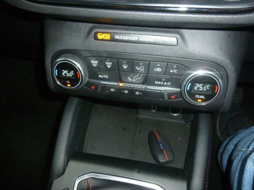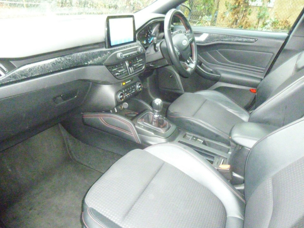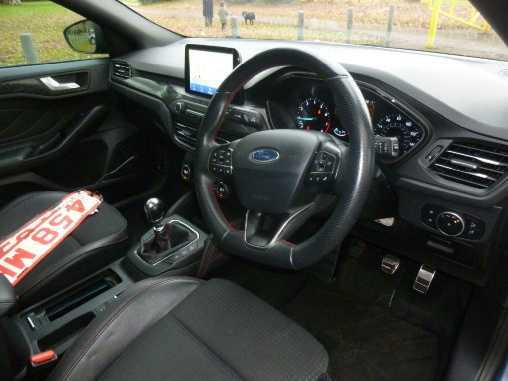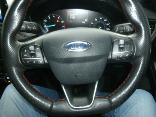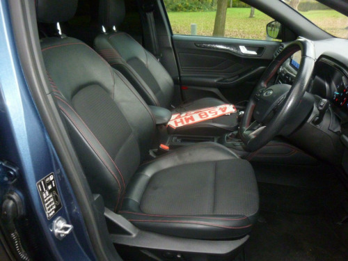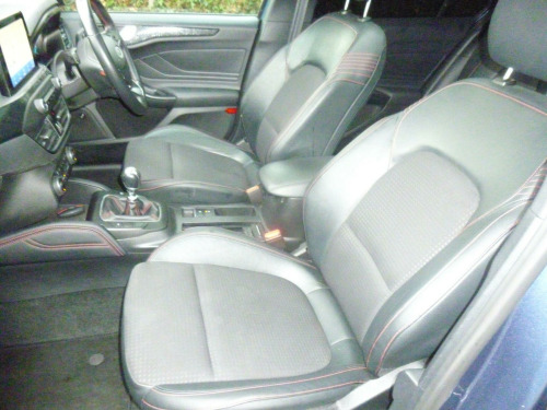 Discover this 2019 Ford Focus T ST-Line X, a well presented example ready for its next owner. This model boasts a responsive 1.0L petrol engine and meets Euro 6 emissions standards, ensuring efficient performance. Inside, you'll find the advanced Ford SYNC3 DAB Navigation System, complete with Android Auto and Apple CarPlay for seamless smartphone integration, alongside Bluetooth connectivity. Comfort is paramount with DEATC dual-zone electronic automatic temperature control and heated front seats, perfect for any weather. Parking is made simple with front and rear parking sensors and parking assistance.This Ford Focus T ST-Line X offers excellent value, with a highlighted fuel economy of 48 mpg, making it a cost effective choice for your daily journeys. Its low CO2 emissions are also a key advantage, indicating a more environmentally friendly performance compared to many other vehicles. Furthermore, you'll appreciate the generous boot space, providing ample room for shopping, luggage, or sports equipment, making this Focus a practical and capable all rounder. in alloy wheels - 5x2 spoke - st-line matt black machined black, 2nd load floor, 4.2in tft instrument cluster screen, 6-way power adjustment driver seat, 8in touchscreen colour display, airbags - driver and front passenger, airbags - front side impact, airbags - front and rear side curtain, alloy finish pedals, anti-lock braking system - abs with electronic brake force distribution - ebd, automatic dimming rear view mirror, auxiliary power socket - luggage space, body colour bumpers, centre console with armrest, courtesy light - front and rear passengers - overhead halogen and load compartment, cruise control with speed limiter, deatc - dual-zone electronic automatic temperature control, door handles - body colour, drivers seat lumbar adjust, epas - electric power assisted steering, easy stow tonneau cover, electric parking brake, emergency brake warning, enhanced electronic stability control - esc with traction control - emergency brake assist - eba - hill start assist - hsa, ford easy fuel - capless refuelling system, ford eco mode - driver information system, ford sync3 dab navigation system, fordpass connect, front passenger airbag deactivation switch, front seat - drivers manual height and fore-aft adjustment, front seat - passengers manual fore-aft adjustment, front seats - sports style, front suspension - independent with macpherson struts and anti-roll bar, front and rear floor mats with red stitching, front and rear seatbelt minder, gear knob - aluminium, headlights - halogen, headliner - black woven, heated front seats, ips - intelligent protection system, intelligent speed assistance, led daytime running lights, led front fog lights with cornering function, lane keeping aid with lane departure warning, leather-trimmed handbrake, locking wheel nuts, mykey, parking sensor - front and rear, passenger seat manual height and lumbar adjust, polished twin tailpipe, post collision braking, power folding door mirrors with puddle lights, pre-collision assist with autonomous emergency braking and pedestrian-cyclist detection, pre-collision assist with pedestrian detection, quickclear heated windscreen, rain sensitive windshield wipers, rear centre headrest, rear privacy glass, rear seats - auto fold, rear spoiler - body colour - large, red brake calipers, remote central locking and engine immobiliser, roof rails - bright finish, st line stainless steel scuff plates, seats - isofix mounting provision for child seats, selectable drive mode, soft console knee pads with red stitching, spare wheel - mini steel, sports tuned suspension, steering column - rake and reach adjustment, steering wheel - 3-spoke flat bottom - leather trimmed with red stitching, thatcham category 1 alarm, trip computer, tyre pressure monitoring system, unique st-line upper and lower grille and full bodystyling kit and st-line wing badges, windows - electrically operated front and rear with one touch opening and closing, wipers - standard with 6 speed interval settings, b&o play premium audio system, panoramic roof - openable, foundry partial leather and salerno leather - vinyl bolster - ebony with generic red stitching