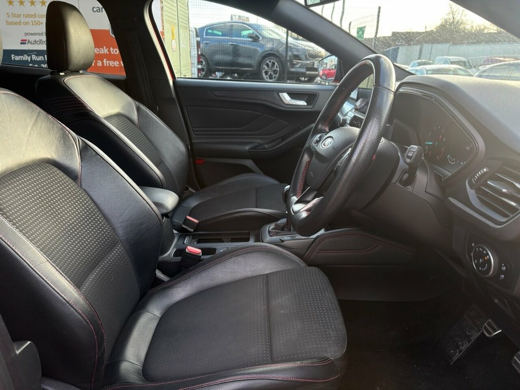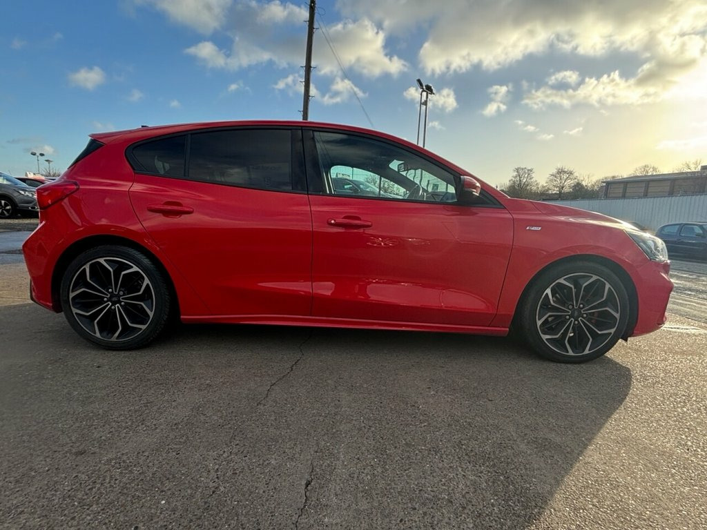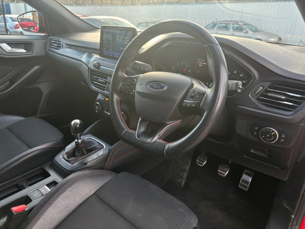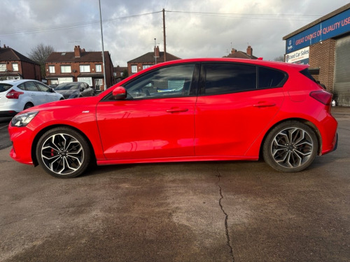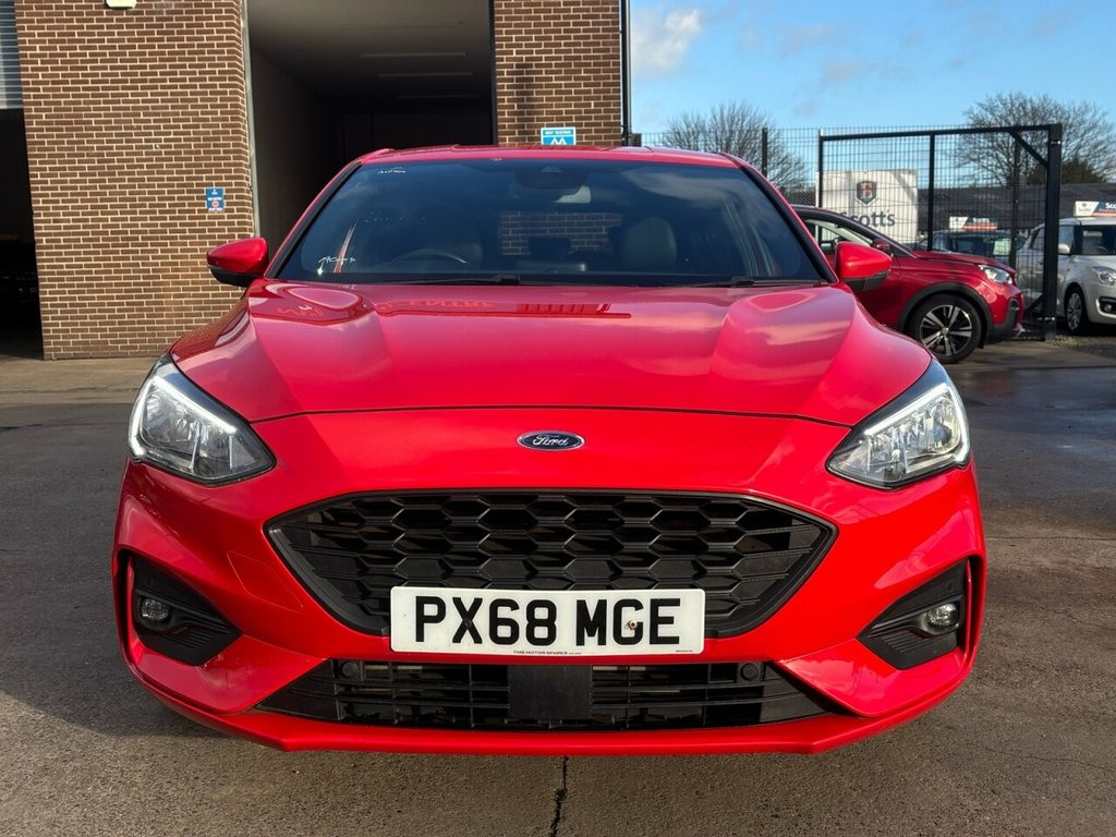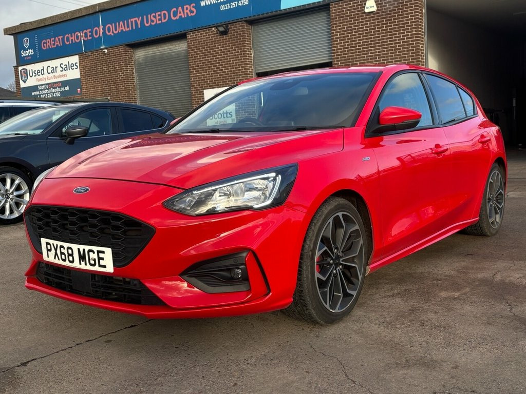 Scott's of Leeds used Car Sales are pleased to offer this FORD FOCUS 1.0T EcoBoost ST-Line X Hatchback 5 Door Petrol Manual in Red. The car is in good condition throughout, in a lovely colour combination and a great specification including Satellite Navigation, Cruise control, Speed limiter, DAB radio, USB point, Bluetooth, Front and Rear parking sensors, apple carplay, Half leather Heated seats, privacy glass, Pushbutton start, automatic lights, alloy wheels, isofix, and much much more. 1 Former Keeper supplied with an up to date service record having just been serviced in our Workshop and an MOT until October 2026 ready to drive away. 3 MONTH NATIONWIDE WARRANTY provided with all vehicles. NATIONWIDE DELIVERY also available. A guaranteed 12 Months MOT can be added for an extra £100. DISCLAIMER: The above specification is true and correct. Any other specification listed elsewhere can sometimes be incorrect. Please check with Sales Executive to clarify this if needed prior to purchase. 18in Alloy Wheels - 5x2 Spoke - ST-Line , 4.2in TFT Instrument Cluster Screen, 6-Way Power Adjustment Driver Seat, 8in Touchscreen Colour Display, Airbags - Driver and Front Passenger, Airbags - Front Side Impact, Airbags - Front and Rear Side Curtain, Alloy Finish Pedals, Anti-Lock Braking System - ABS with Elec, Automatic Dimming Rear View Mirror, Body Colour Bumpers, Centre Console with Armrest, Courtesy Light - Front and Rear Passenge, Cruise Control with Speed Limiter, DEATC - Dual-Zone Electronic Automatic T, Door Handles - Body Colour, Drivers Seat Lumbar Adjust, EPAS - Electric Power Assisted Steering, Electric Parking Brake, Emergency Brake Warning, Enhanced Electronic Stability Con