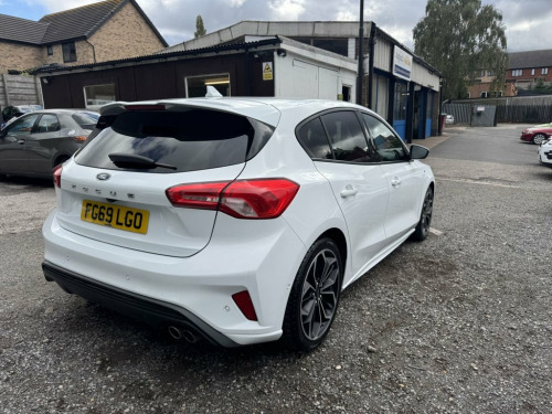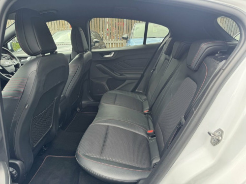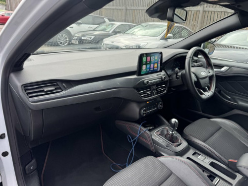 ALL OF OUR CARS ARE HPI CLEAR UNLESS STATED CLEARLY IN OUR ADVERT. WE CAN GET A FINANCE DECISION IN 10 MINUTES AND A FULL DEAL DONE IN JUST 20 MINUTES IN MOST CASES! WE OFFER CLICK AND DELIVER PURCHASING AND GIVE FREE DELIVERY WITHIN 50 MILES! VIDEOS ARE AVAILABLE TOO ON ALL RETAIL CARS. CALL FOR MORE DETAILS. PLEASE NOTE WE ONLY TAKE VIEWINGS BY APPOINTMENT. We are delighted to offer this truly stunning Ford Focus ST Line X that we purchased straight from the previous owner of 4 years and only the second owner from new. She has a lovely mileage, good service record, great spec and will come to you with an advisory free MOT, a full service, full valet and of course our own in house warranty. Being the ST line X she does have a better spec that the standard ST line, which includes red stitched half leather sports interior with heated front seats, navigation, cruise control or speed limiter, DAB radio, climate control, rear parking camera, Apple CarPlay, Bluetooth for making calls and streaming music, electric front and rear windows, electric adjust and fold in door mirrors, remote central locking and the ST diamond cut alloy wheels. She has low mileage, a good history, great spec and for those of you who want a car that looks sporty, but without the costs of having one, the ST line X is perfect! These are also harder to find in white for whatever reason so do not miss out! Finance her from just £238.19 a month and get a decision in ten minutes! No deposit options 18in Alloy Wheels - 5x2 Spoke - Matt Bla, ABS - Anti-lock Braking System, Acoustic Laminated Windscreen, Airbags - Driver and Front Passenger, Airbags - Front Side Impact, Airbags - Front and Rear Side Curtain, Alarm - Thatcham Category 1 with Volume , Alloy Finish Pedals, Automatic Dimming Rear View Mirror, Autonomous Emergency Braking, Black Finish on Upper Door Line, Centre Console - Premium with Sliding Ar, Child Proof Rear Door Locks, Cruise Control with Speed Limiter, DEATC - Dual-Zone Electronic Automatic T, Dark Headliner, Door Handles - Body Colour, Door Mirrors - Electrically-operated - H, ESC - Electronic Stability Control, Electric Parking Brake, Flat Bottomed Steering Wheel with
