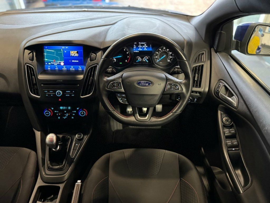 Ford Focus ST-Line X with full service history and a new MOT. Services were carried out at: 7955mls, 16903mls, 21293mls, 31745mls, 41669mls, 52568mls, 64344mls. Former Keepers: 1. Road Tax: £195/year, Average Fuel Consumption: 57.7MPG, Insurance Group: 16. This vehicle is fitted with Satellite Navigation, Parking Sensors, DAB Radio, Cruise Control, Heated Windscreen, Air Conditioning, Bluetooth Phone Connection, USB&AUX Port. Deep Impact Blue, 18in Alloy Wheels - ST-Line - Rock Metal, Airbags - Driver and Front Passenger, Airbags - Front Side Impact, Airbags - Front and Rear Side Curtain, Alarm - Thatcham Category 1 with Volume , Anti-Lock Braking System - ABS with Elec, Automatic Dimming Rear View Mirror, Automatic Headlights, Black Exterior Trim Detailing including , Body Colour Large Rear Spoiler and Side , Body Coloured Front Styling Kit with Cen, Centre Console - Premium with Sliding Ar, Colour TFT Instrument Cluster Display, Courtesy Light - Front and Rear Passenge, Cruise Control with Active Speed Limiter, DEATC - Dual-Zone Electronic Automatic T, Door Mirrors - Body Colour Housing - Hea, Drivers Seat Lumb