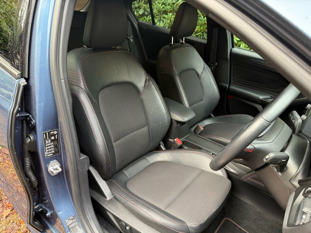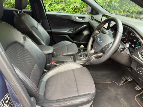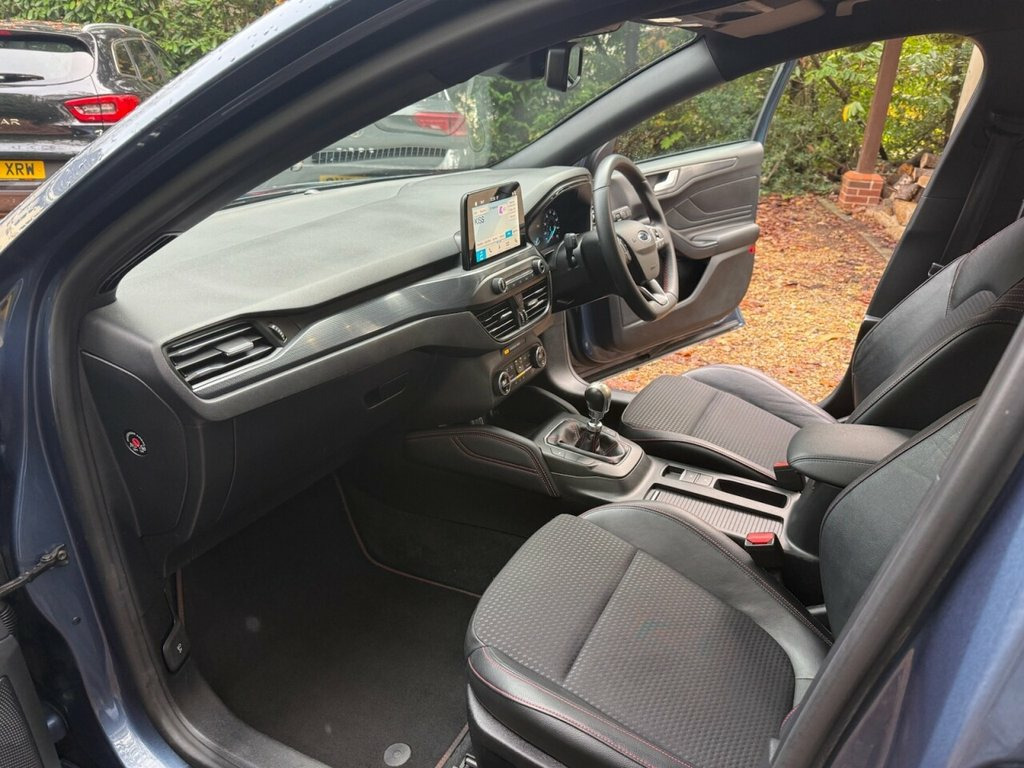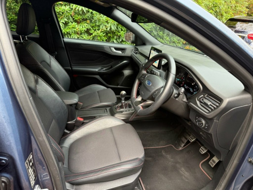 This 2019 Ford Focus ST-Line X presents a compelling proposition with its remarkably low mileage for its age, having covered just 47,894 miles. This particular model is the T ST-Line X variant, powered by an efficient 1.0L petrol engine and meeting Euro 6 emissions standards. Inside, you'll find a host of desirable features designed for comfort and convenience, including heated front seats for both driver and passenger, and Dual-Zone Electronic Automatic Temperature Control for personalised cabin climate. The Ford SYNC3 DAB Navigation System is a central hub, offering seamless connectivity with Android Auto, Apple CarPlay, and Bluetooth, while front and rear parking sensors provide excellent assistance when manoeuvring. The driving experience is further enhanced by automatic on-off headlights, ensuring optimal visibility in varying conditions. This Focus ST-Line X also boasts low CO2 emissions, indicating its environmental consideration. For those who appreciate performance, it achieves 0-60mph in a brisk 10.0 seconds. These highlights collectively demonstrate how this Ford Focus offers a superior blend of efficiency, technology, and driving dynamics compared to many other vehicles in its class. 18in Alloy Wheels - 5x2 Spoke - Matt Bla, Airbags - Driver and Front Passenger, Airbags - Front and Rear Side Curtain, Airbags - Front Side Impact, Alloy Finish Pedals, Automatic Dimming Rear View Mirror, Body Colour Bumpers, Chrome Blue, Cruise Control with Speed Limiter, Dark Headliner, DEATC - Dual-Zone Electronic Automatic T, Door Handles - Body Colour, Door Mirrors - Electrically-operated - H, Electric Parking Brake, ESC - Electronic Stability Control, Flat Bottomed Steering Wheel with Red St, Ford Easy Fuel System, Ford SYNC3 DAB Navigation System, FordPass Connect, Foundry Partial Leather and Salerno Leat, Front and Rear Floor Mats with Red Stitc, Front and Rear Seatbelt Minder, Front
