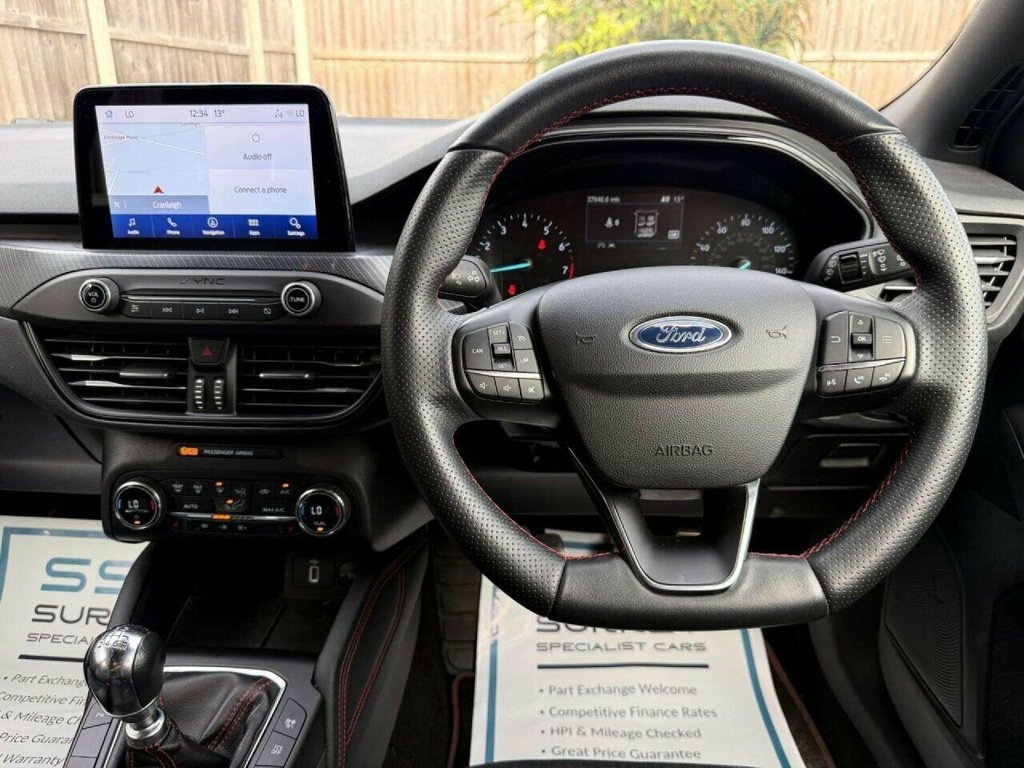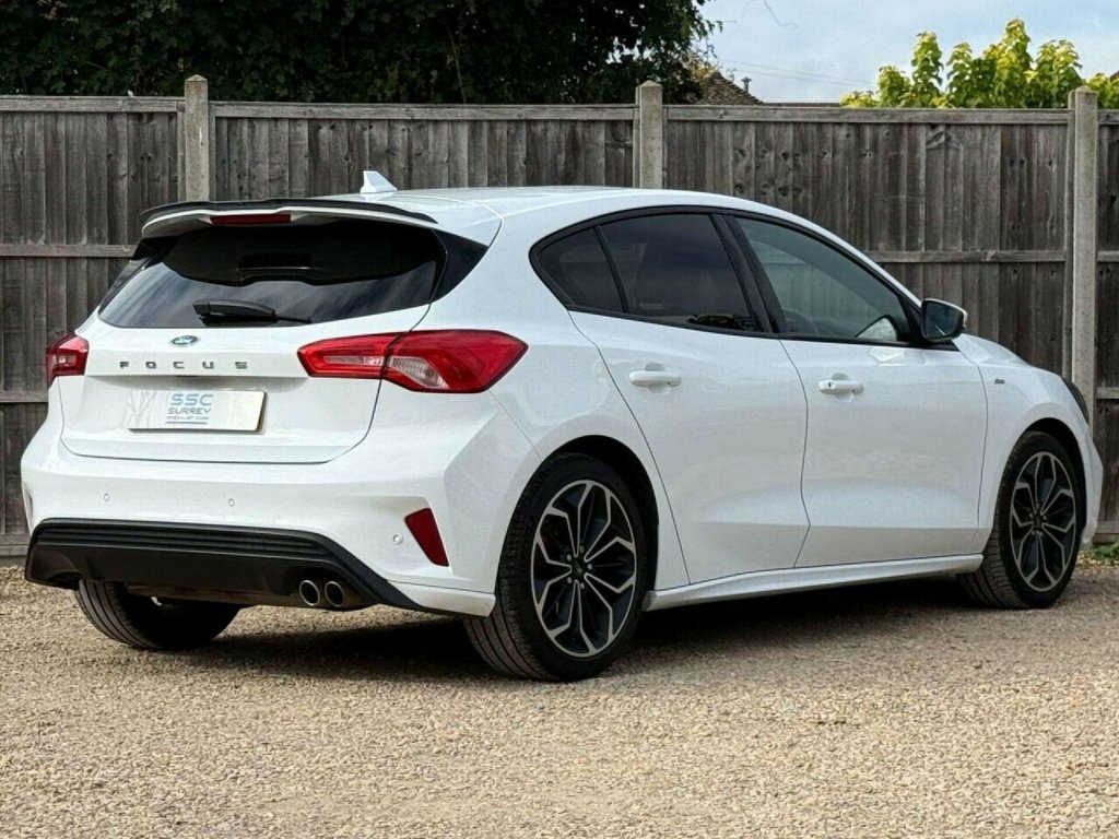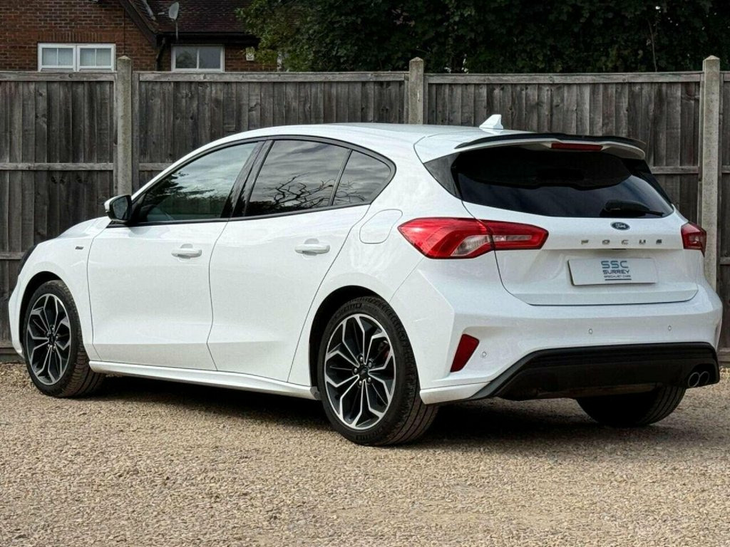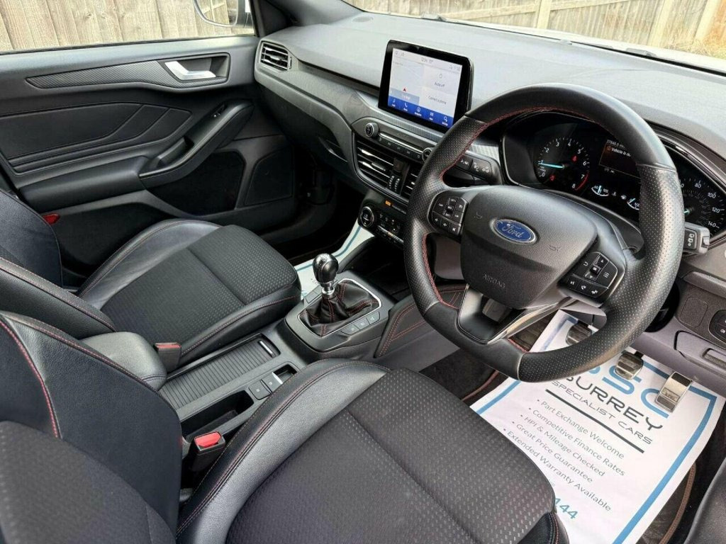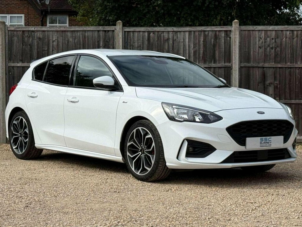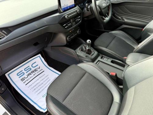 Surrey Specialist Cars are proud to present our lovely Ford Focus ST Line X. This amazing car comes with Service History, finished in stunning metallic white with half leather seats. The car has a Long MOT until August 2026 so it is ready to go. The 1L Petrol engine offers superb economy at over 58 MPG on combined cycle. Features Include Multifunction Steering Wheel, Trip Computer, Satellite Navigation, Heated Seats, Parking Sensors, Stereo/Phone Control, FM/DAB Radio, CD Player, Bluetooth Audio, USB Input, AUX Input, Air Conditioning, Heated Rear and Front Screen, Start/ Stop System, 12V Charging Socket, Fog Lights, 6 Speed Manual Gearbox, 18 Inch Alloy Wheels and two Remote Control Keys to name a few. We are open 7 days a week, and prepare all of our cars to the highest standards. We have a Click & Collect option available, and can also arrange delivery on request. All cars are HPI clear and a full history report is provided with every car. We welcome any inspection and viewing is highly recommended. All cars are available with our AA warranty starting from just ?150 for 3 months. Debit and credit card facilities are available and we offer competitive finance packages. If you have any questions or would like to view any of our cars give us a call or drop us a message on whatsapp 01483 363 144 to arrange an appointment with one of our team. We also offer full bespoke walkaround videos on request. We are always on the lookout for high quality stock, if you have a car we are 18in Alloy Wheels - 5x2 Spoke - Matt Bla, ABS - Anti-lock Braking System, Acoustic Laminated Windscreen, Airbags - Driver and Front Passenger, Airbags - Front Side Impact, Airbags - Front and Rear Side Curtain, Alarm - Thatcham Category 1 with Volume , Alloy Finish Pedals, Automatic Dimming Rear View Mirror, Black Finish on Upper Door Line, Centre Console - Premium with Sliding Ar, Child Proof Rear Door Locks, Cruise Control with Speed Limiter, DEATC - Dual-Zone Electronic Automatic T, Dark Headliner, Door Handles - Body Colour, Door Mirrors - Electrically-operated - H, ESC - Electronic Stability Control, Electric Parking Brake, Flat Bottomed Steering Wheel with Red St, Fog Light Bezel - Uni