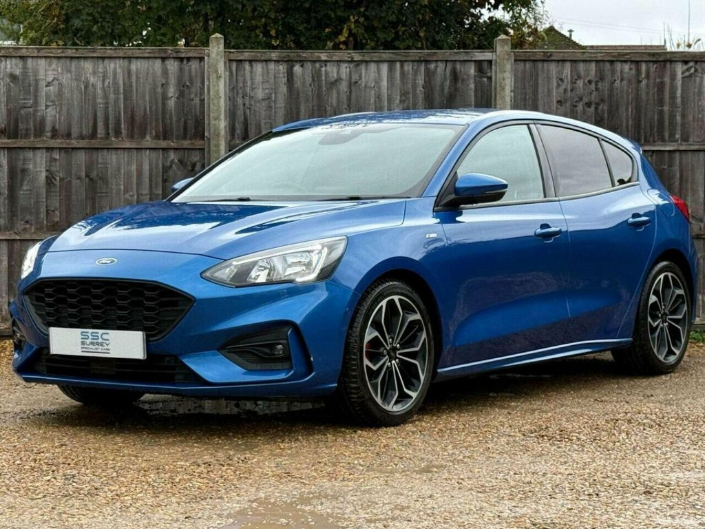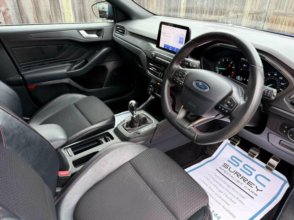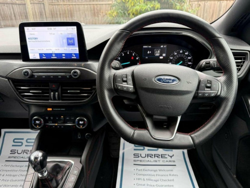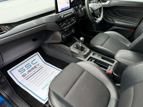 Surrey Specialist Cars are proud to present our lovely Ford Focus ST Line X. This amazing car comes with Service History, finished in stunning metallic blue with grey contrast interior. The car has a MOT until January 2026 so it is ready to go. The 1L Petrol engine offers superb economy at over 58 MPG on combined cycle. Features Include Multifunction Steering Wheel, Trip Computer, Satellite Navigation, Parking Camera, Heated Seats, Upgraded Sound System, Stereo/Phone Control, FM/DAB Radio, CD Player, Bluetooth Audio, USB Input, AUX Input, Air Conditioning, Heated Rear and Front Screen, Start/ Stop System, 12V Charging Socket, Fog Lights, 6 Speed Manual Gearbox, 18 Inch Alloy Wheels and two Remote Control Keys to name a few. We are open 7 days a week, and prepare all of our cars to the highest standards. We have a Click & Collect option available, and can also arrange delivery on request. All cars are HPI clear and a full history report is provided with every car. We welcome any inspection and viewing is highly recommended. All cars are available with our AA warranty starting from just ?599 for 12 months. Debit and credit card facilities are available and we offer competitive finance packages. If you have any questions or would like to view any of our cars give us a call or drop us a message on whatsapp 01483 363 144 to arrange an appointment with one of our team. We also offer full bespoke walkaround videos on request. We are always on the lookout for high quality stock, 18in Alloy Wheels - 5x2 Spoke - Matt Bla, Airbags - Driver and Front Passenger, Airbags - Front Side Impact, Airbags - Front and Rear Side Curtain, Alloy Finish Pedals, Automatic Dimming Rear View Mirror, Body Colour Bumpers, Cruise Control with Speed Limiter, DEATC - Dual-Zone Electronic Automatic T, Dark Headliner, Door Handles - Body Colour, Door Mirrors - Electrically-operated - H, ESC - Electronic Stability Control, Electric Parking Brake, Flat Bottomed Steering Wheel with Red St, Ford Easy Fuel System, Ford SYNC3 DAB Navigation System, FordPass Connect, Front Passenger Airbag Deactivation Swit, Front Seat - Drivers Manual Lumbar Suppo, Front Seats - Driver and Passenger Heate, Front an