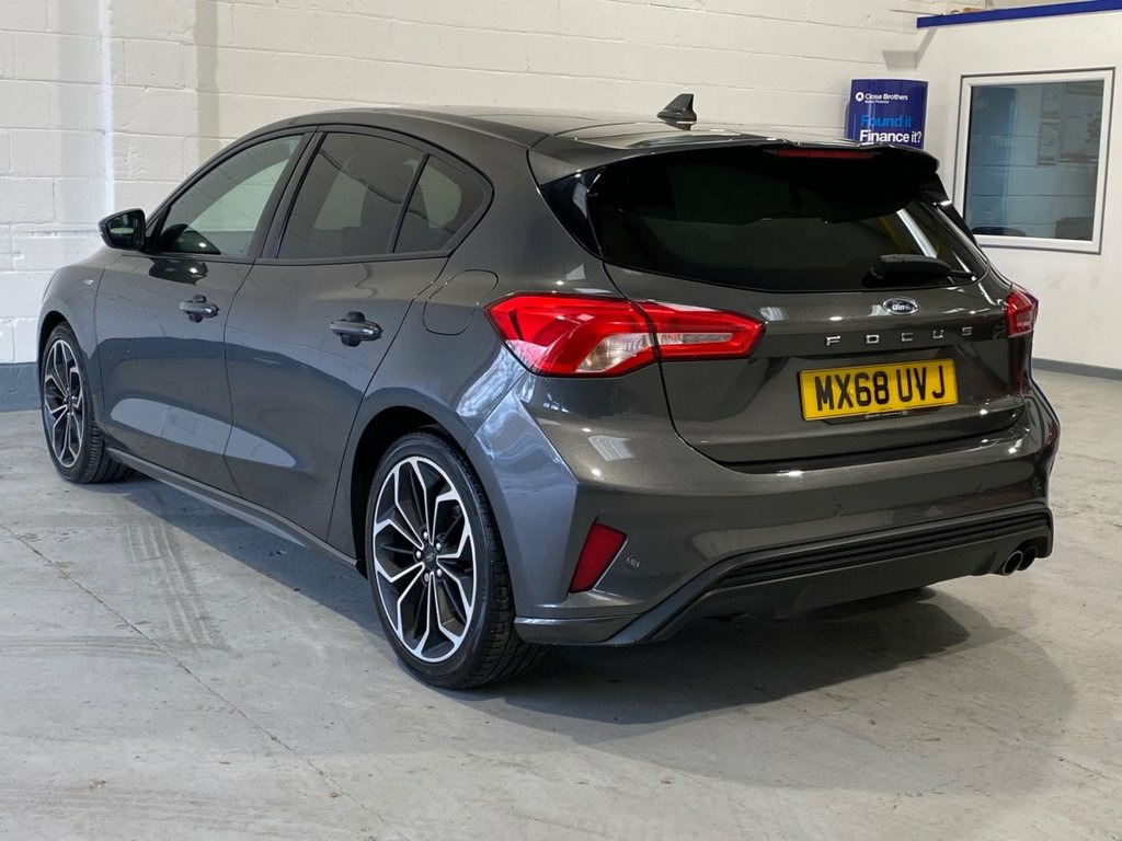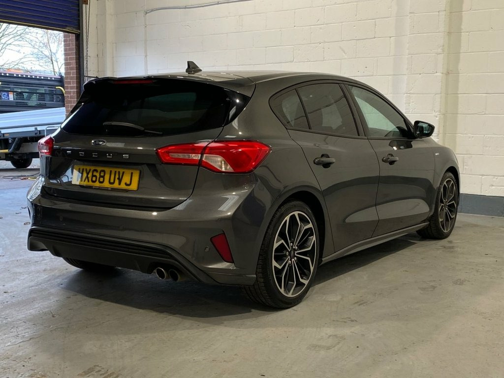 This 2019 Ford Focus ST-Line X offers a clear vehicle history and a 12 month MOT for your peace of mind. Powered by a 1.0L Euro 6 petrol engine, this model boasts a partial service history and comes with a 3 month warranty. Inside, you'll find comfort and convenience with DEATC dual zone climate control, heated front seats, and the Ford SYNC3 DAB navigation system, complete with Android Auto and Apple CarPlay connectivity. For effortless parking, front and rear sensors are included, and automatic headlights ensure optimal visibility. The Ford Focus ST-Line X is designed for an engaging drive, achieving 0-60mph in just 10.0 seconds. Its low CO2 emissions also make it a more environmentally conscious choice compared to many other vehicles in its class. This combination of performance, technology, and efficiency makes this Focus a compelling option for those seeking a well equipped and reliable hatchback. 18in Alloy Wheels - 5x2 Spoke - Matt Bla, Airbags - Driver and Front Passenger, Airbags - Front Side Impact, Airbags - Front and Rear Side Curtain, Alloy Finish Pedals, Automatic Dimming Rear View Mirror, Body Colour Bumpers, Cruise Control with Speed Limiter, DEATC - Dual-Zone Electronic Automatic T, Dark Headliner, Door Handles - Body Colour, Door Mirrors - Electrically-operated - H, ESC - Electronic Stability Control, Electric Parking Brake, Flat Bottomed Steering Wheel with Red St, Ford Easy Fuel System, Ford SYNC3 DAB Navigation System, FordPass Connect, Front Passenger Airbag Deactivation Swit, Front Seat - Drivers Manual Lumbar Suppo, Front Seats - Driver and Passenger Heate, Front an