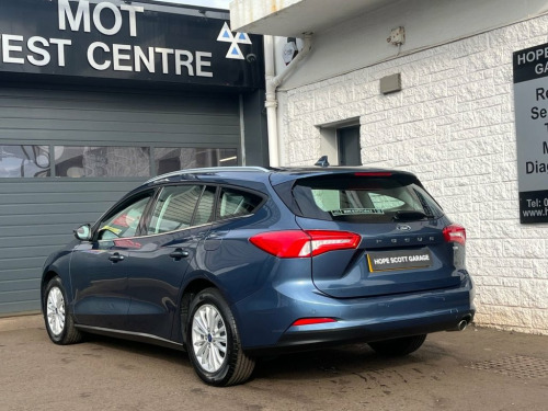 This 2021 Ford Focus T Titanium Edition Estate presents an exceptional opportunity with its incredibly low mileage of just 3000 miles, having had only one owner. This Euro 6 compliant 1.0L petrol model combines practicality with comfort, featuring front and rear parking sensors for effortless manoeuvring, and heated front seats for those cooler journeys. The Ford Key Free system allows for convenient keyless entry and start, while automatic headlights ensure optimal visibility. Inside, you'll find the Ford SYNC3 DAB Navigation System, complete with Android Auto and Apple CarPlay integration, plus Bluetooth connectivity for seamless communication and entertainment. This Focus Titanium Edition stands out with its impressive fuel economy, achieving a highlight of 51 miles per gallon, which indicates it is more economical than many similar vehicles. Furthermore, its low CO2 emissions and low insurance group highlight its cost effectiveness for everyday use. The generous boot space also means you won't be short on room for shopping or luggage, making this a well rounded and appealing choice. ( 2KEYS, BOOK PACK, FLOOR MATS, FULLY VALETED, FINANCE AVAILABLE, PART EX WELCOME, RESERVE TODAY) Award Winning Family Garage In Edinburgh For Over 88 Years - Call Us On 01314495751 / www.hopescott.co.uk Chrome Blue