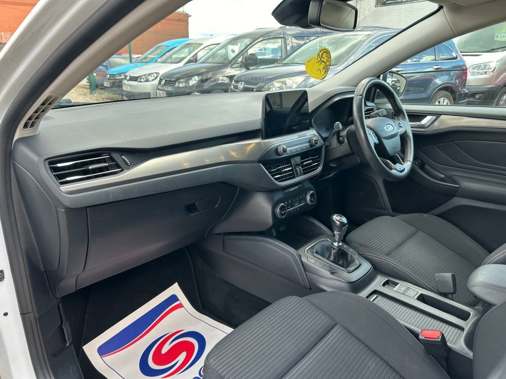 Boasting a full service history right up to 82045 miles, this 2020 Ford Focus T Titanium offers excellent provenance. Powered by an efficient 1.0L Petrol engine, this Euro 6 compliant model is registered in 2019 and comes with a 3 month warranty for your peace of mind. Inside, you'll find a host of desirable features including DEATC dual zone climate control, heated front seats for those colder mornings, and keyless entry for ultimate convenience. Parking is made easier with front and rear parking sensors, and the rear privacy glass adds a touch of style and comfort.This Ford Focus Titanium is designed for practicality and comfort, offering a large boot space perfect for shopping trips or holidays. You can expect impressive fuel economy, achieving up to 51 miles per gallon, and its low CO2 emissions make it an environmentally conscious choice. With a respectable 0-62mph acceleration time of 10.0 seconds, this Focus provides a balanced driving experience. A 12 month MOT will be provided on purchase, ensuring its roadworthiness.. 16in Alloy Wheels - 15 Spoke - Sparkle Silver, Airbags - Driver and Front Passenger, Airbags - Front Side Impact, Airbags - Front and Rear Side Curtain, Ambient Lighting, Automatic Dimming Rear View Mirror, Body Colour Bumpers, Cruise Control with Speed Limiter, DEATC - Dual-Zone Electronic Automatic Temperature Control, Door Handles - Body Colour, Door Mirrors - Electrically-operated - Heated - Power-Foldable - Body Colour Housings - Side Indicators - Puddle Lights, Electric Parking Brake, Ford Key Free System - Keyless Entry with Keyless Start, Ford SYNC3 DAB Navigation System, FordPass Connect, Front Passenger Airbag Deactivation Switch, Front Seat - Drivers Manual Lumbar Support Adjustment, Front Seats - Driver and Passenger Heated Seats, Front Upper Grille - Chrome - Horizontal Bars, Front and Rear Floor Mats, Front and Rear Seatbelt Minder, Headlights - Automatic On-Off, Instrument Cluster - 4.2in Colour TFT Display, Keyless Entry, LED Daytime Running Lights, Lane Keeping Aid with Lane Departure Warning, MyKey, Parking Sensor - Front and Rear, Passenger Seat Manual Height and Lumbar Adjust, Post Collision Braking, Pre-Collision Assist with Autonomous Emergency Braking and Pedestrian-Cyclist Detection, Pre-Collision Assist with Pedestrian Detection, Quickclear Heated Windscreen, Rain Sensitive Windshield Wipers, Rear Centre Headrest, Rear Lights - LED, Remote Central Locking and Engine Immobiliser, Selectable Drive Mode, Spare Wheel - Mini Steel, Steering Wheel - 3-Spoke - Leather Trimmed, Thatcham Category 1 Alarm, Trip Computer, Tyre Pressure Monitoring System, Windows - Electrically Operated Front and Rear with One Touch Opening and Closing, Rear Privacy Glass. Full service history
