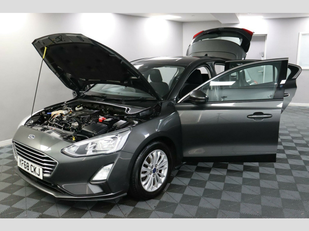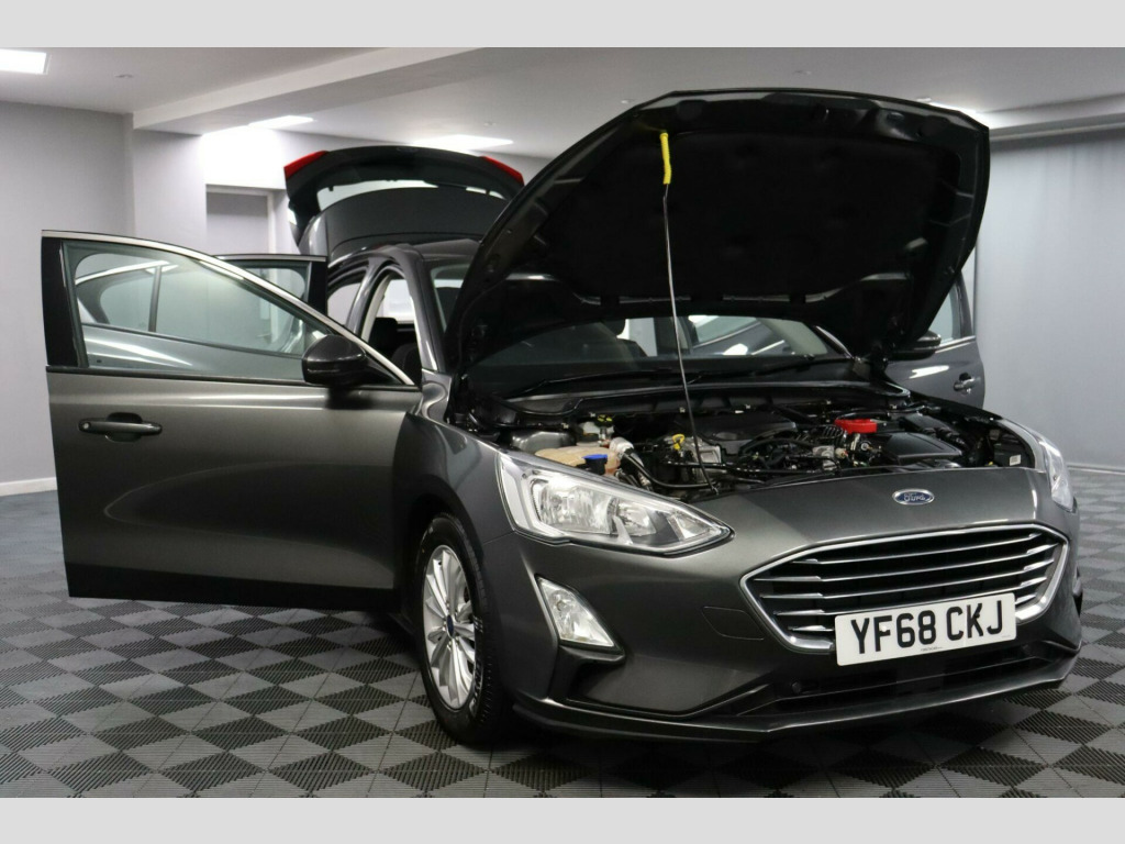 YF68CKJ. Ford designed the Focus Titanium for drivers who want a hatchback with more comfort, tech, and everyday ease. Lower Emissions and Faster Acceleration make this model a good fit for commuters, small families, and anyone wanting a modern-feeling car.Inside, an 8-Inch Ford SYNC3 Touchscreen brings together Built-In Navigation, Bluetooth, DAB Radio, Apple CarPlay, and Android Auto. Heated Front Seats, Dual Zone Electronic Temperature Control, and a Quickclear Heated Windscreen help through winter mornings and longer journeys.Driving support includes Cruise Control with Speed Limiter, Front and Rear Parking Sensors, and Selectable Drive Modes. Safety features include Pre-Collision Assist, Autonomous Emergency Braking, and Lane Keeping Aid with Departure Warning. Keyless Entry, Keyless Start, and an Electric Parking Brake add everyday convenience.Available now — book a test drive and get a feel for the Focus Titanium on the road.This vehicle has just been serviced and comes with a good service history, featuring 4 stamps in the service book. This vehicle also has a full 12-month MOT with no advisories, a clean HPI report, 2 KEYS and a National Mileage Register Check. With a fantastic list of specifications, this could be the perfect car for you! While we use reliable third-party data, some details may vary. We recommend double-checking any specific features you're particularly interested in. We're happy to help verify this for you on request. Please note features such as Apple Carplay may require a subscription. If you have any questions please feel free to contact us ☎️ 0113 257 00 00.. 8in Touchscreen Colour Display, Ford SYNC3 DAB Navigation System, Cruise Control with Speed Limiter, Bluetooth Connection, DAB Radio, Parking Sensor - Front and Rear, Pre-Collision Assist with Autonomous Emergency Braking and Pedestrian-Cyclist Detection, Selectable Drive Mode, Anti-Lock Braking System - ABS with Electronic Brake Force Distribution - EBD, Electric Parking Brake, Emergency Brake Warning, Ford Key Free System - Keyless Entry with Keyless Start, Lane Keeping Aid with Lane Departure Warning, 16in Alloy Wheels - 15 Spoke - Sparkle Silver, Power Folding Door Mirrors with Puddle Lights, Enhanced Electronic Stability Control - ESC with Traction Control - Emergency Brake Assist - EBA - Hill Start Assist - HSA, Quickclear Heated Windscreen, Automatic Dimming Rear View Mirror, DEATC - Dual-Zone Electronic Automatic Temperature Control, Heated Front Seats, Apple CarPlay - Android Auto, Seats - ISOFIX Mounting Provision for Child Seats, Ray Fabric and Eton Bolster - Ebony.
