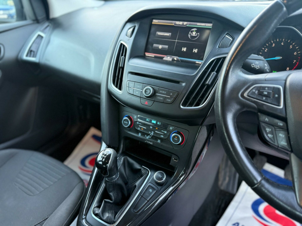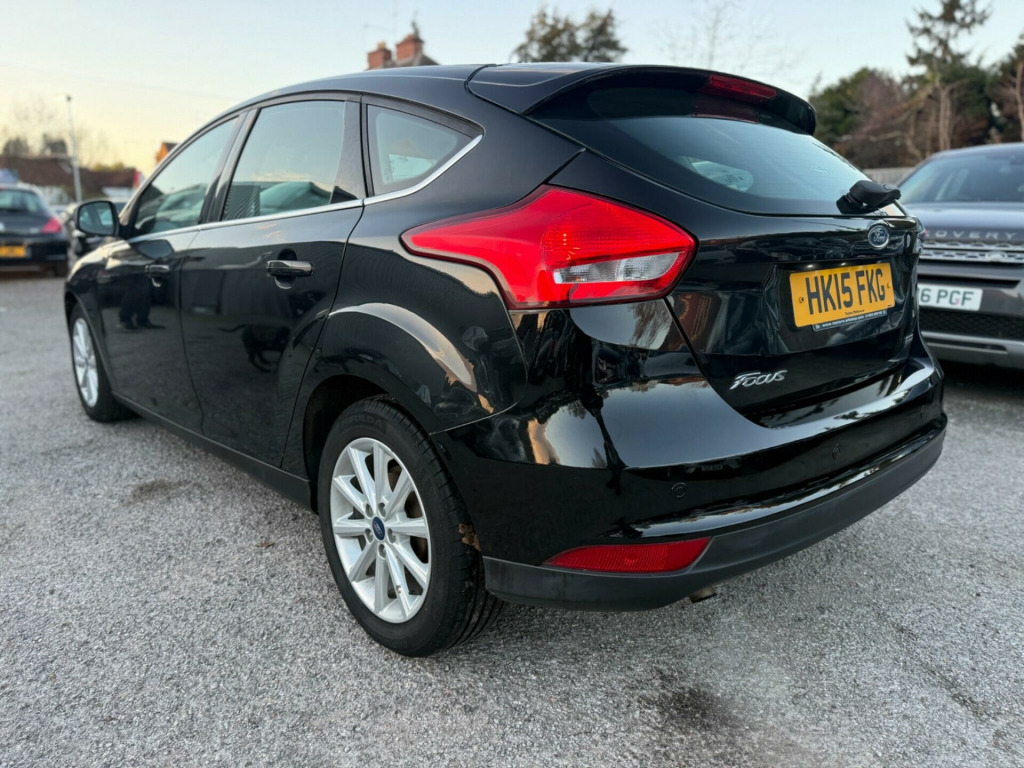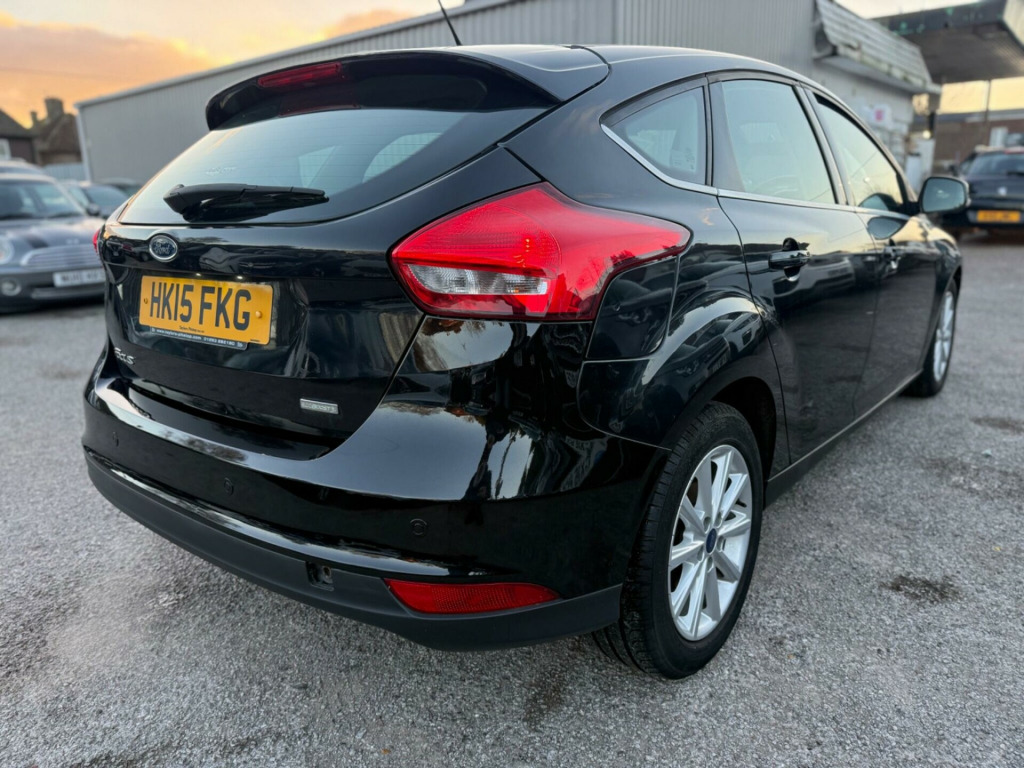 Boasting exceptionally low mileage for its age, this 2015 Ford Focus T Titanium presents a superb ownership proposition. With only two previous owners and a clear vehicle history check, this Euro 6 compliant Focus has been meticulously maintained, evidenced by its full service history and a recent service completed on 12 November 2025 at 54,899 miles. The reliable 1.0L petrol engine is paired with the well appointed Titanium trim, offering features such as rear parking sensors for easier manoeuvring, automatic headlights for enhanced visibility, electronic automatic temperature control for a comfortable cabin environment, and Bluetooth connectivity for seamless audio streaming. A 3 month warranty provides added peace of mind.This Ford Focus stands out with its impressive fuel economy, achieving an excellent 61 miles per gallon, which indicates it is more economical than many similar vehicles. Furthermore, its low CO2 emissions highlight its environmental consideration. Practicality is also a strong suit, with generous boot space making it ideal for families or those who require ample storage. These combined highlights demonstrate the Focus Titanium's superior value and efficiency compared to other cars in its class. in alloy wheels - 10 spoke, 8in high resolution touchscreen, abs - anti-lock braking system, active city stop, airbag - front passenger, airbags - curtain, airbags - drivers and front passenger side airbag, automatic dimming rear view mirror, automatic rain sensing wipers, bluetooth - audio streaming, chrome finish on upper door line, colour tft instrument cluster display, cruise control with speed limiter, door handles - body colour, door mirrors - heated - electric - integrated side indicators - body coloured, drivers airbag, eatc - electronic automatic temperature control - climate control, eba - emergency brake assist, epas - electric power assisted steering, esp - electronic stability programme, electric windows - front with one touch lowering drivers, emergency assistance, ford am-fm cd audio system, ford dab audio system with sync, ford easy-fuel capless refuelling system, ford eco mode - driver information system, ford power starter button, ford sync, front fog lights, full body styling kit, headlights - automatic, heated front windscreen, hill start assist, ips - intelligent protection system, isofix - child seat attachments, keyless start, led daytime running lights, mykey, parking sensor - rear, pedals - sports, premium centre console, premium centre console - sliding armrest, rear spoiler - body colour, remote central locking, seats - drivers lumbar support, seats - front sports, sports style front seats - inidividual red stitching, steering column - rake and reach adjustment, steering wheel - audio controls, suspension - sports, tvc - torque vectoring control, thatcham category 1 alarm, traction control - tc, trip computer, tyre pressure monitoring system, usb connection, voice control - audio
