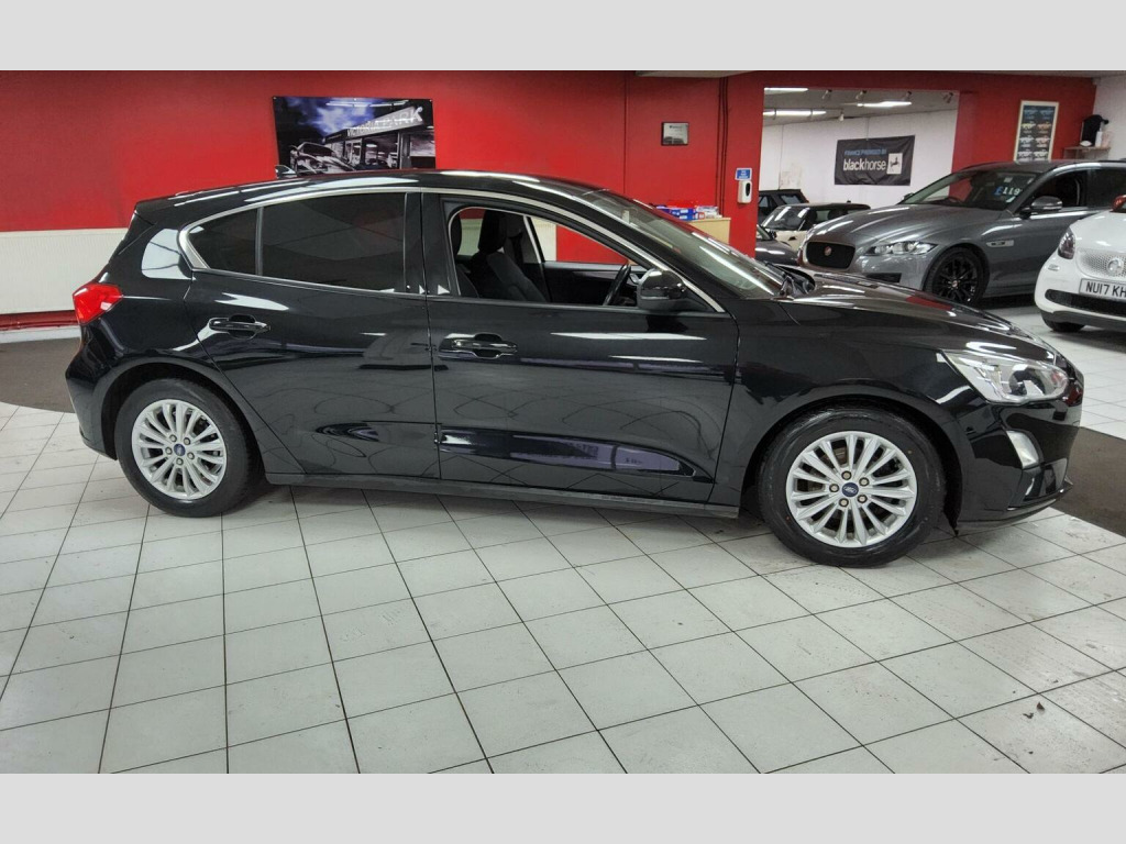 A lovely example of the ever popular Focus, finished in Black with charcoal cloth upholstery. This 2 owner Focus is a Titanium spec version so inside, youll find comfort and convenience with heated front seats and dual zone electronic automatic temperature control, ensuring a pleasant cabin environment for all occupants and it is also is equipped with the Ford SYNC3 DAB Navigation System, which seamlessly integrates Android Auto and Apple CarPlay, alongside Bluetooth connectivity for effortless communication and entertainment. The very convenient QuickClear screen, Electric windows all round, Remote central locking and Cruise control all combine to deliver a very well equipped car. This fabulous car will leave here serviced, valeted and with a fresh 12 months MOT (with no advisories). We can arrange finance (from prime to poor credit scenarios) and we welcome a part exchange. We can email a walk around video to you and we can also arrange for UK delivery to your door, please call for more information. Viewing in our heated showroom and test drives are available 7 days a week - please call to arrange, prior to travelling. Extended warranties are available for 1, 2 or 3 years please call for prices.