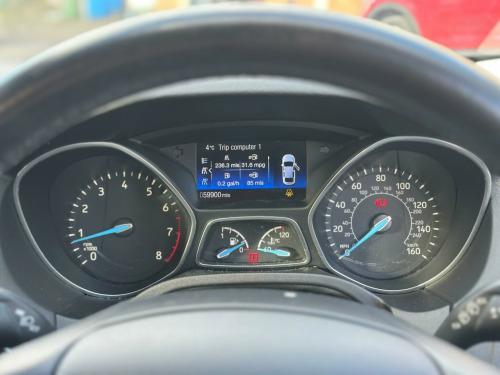 This 2016 Ford Focus T Titanium offers excellent value with a recent service in December 2025 and a clear vehicle history check. This well maintained example has covered just 59,900 miles, which is low for its age, and comes with a 3 month warranty for your peace of mind. The Euro 6 compliant 1.0L petrol engine is paired with a Titanium trim level, featuring automatic headlights, rear parking sensors, and dual zone climate control for added comfort and convenience. You can also stay connected on the go with the integrated Bluetooth handsfree system. ULEZ and CAZ compliant. Low annual tax of £20 pound. The Ford Focus T Titanium is a practical choice, boasting a large boot space perfect for shopping trips or luggage. Its fuel economy is a standout feature, achieving an impressive 60 mpg, which is better than many similar vehicles. Furthermore, its low CO2 emissions contribute to a more environmentally friendly drive. A 12 month MOT valid until December 2026 ensuring the vehicle is roadworthy. v power socket - front, 16in alloy wheels - 10 spoke, 8in touchscreen colour display, abs - anti-lock braking system, aux connection, active city stop, air conditioning - dual zone electronic automatic temperature control, airbag - front passenger, airbags - curtain, airbags - curtain rear, airbags - side impact, anti-submarining seat bases, armrest - centre console, armrest - folding centre - rear, automatic dimming rear view mirror, automatic rain sensing wipers, black headlight bezel, bluetooth handsfree phone system, body colour bumpers, body colour exterior mirrors, chrome finish on upper door line, colour tft instrument cluster display, cruise control with adjustable speed limiter, door handles - body colour, door mirrors - electrically operated and heated, door mirrors with integrated indicators, drivers airbag, eba - emergency brake assist, ebd - electronic brakeforce distribution, esp - electronic stability programme, electric windows - front and rear with one touch, electric windows - global opening-closing, emergency assistance, emergency brake warning, ford am-fm cd audio system, ford dab audio system, ford easy-fuel capless refuelling system, ford eco mode - driver information system, ford sync2, front fog lights, front grille - chrome, front seat belts with pre-tensioners, fuel computer, handbrake cover - leather, headlights - automatic, headlights - halogen, heated front windscreen, height-adjustable mounts on front seat belts, hill start assist, ips - intelligent protection system, isofix - child seat attachments, keyless start, locking wheel nuts, mini steel spare wheel, mykey, parking sensor - rear, pedals - collapsible, pollen filter, power steering, premium centre console, rear seat - folding centre armrest with 2 integrated cup holders and flip up storage, rear spoiler - body colour, remote central locking, scuff plates - front - aluminium finish with ford logo, seats - 60-40 rear split back, seats - drivers height adjustment, seats - drivers lumbar support, seats - front sports, speakers - x6, steering column - collapsible, steering column - rake and reach adjustment, steering wheel - 3 spoke - leather trimmed, steering wheel - audio controls, suspension - sports, tvc - torque vectoring control, thatcham category 1 alarm, traction control - tc, tyre pressure monitoring system, usb connection, voice control - audio