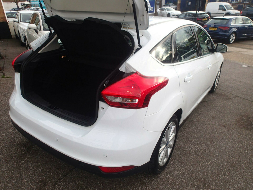 This 2015 Ford Focus T Titanium presents a compelling proposition with its remarkably low mileage for its age, having covered just 70144 miles. This particular example boasts a clear vehicle history check and comes with a 6 month warranty for your peace of mind, alongside partial service history. Under the bonnet, you'll find an efficient 1.0 litre petrol engine, compliant with Euro 6 emissions standards. Notable features include automatic headlights, rear parking sensors for easier manoeuvring, Bluetooth connectivity for audio streaming, and electronic automatic temperature control for a comfortable cabin environment.The Ford Focus T Titanium is designed to impress with its fuel economy, achieving an impressive 60 miles per gallon, which indicates it is more economical than many similar vehicles. Furthermore, its low CO2 emissions highlight its environmental consideration. This model also offers generous boot space, making it a practical choice for everyday use and longer journeys., in alloy wheels - 10 spoke, 8in high resolution touchscreen, abs - anti-lock braking system, active city stop, airbag - front passenger, airbags - curtain, airbags - drivers and front passenger side airbag, automatic dimming rear view mirror, automatic rain sensing wipers, bluetooth - audio streaming, chrome finish on upper door line, colour tft instrument cluster display, cruise control with speed limiter, door handles - body colour, door mirrors - heated - electric - integrated side indicators - body coloured, drivers airbag, eatc - electronic automatic temperature control - climate control, eba - emergency brake assist, epas - electric power assisted steering, esp - electronic stability programme, electric windows - front with one touch lowering drivers, emergency assistance, ford am-fm cd audio system, ford dab audio system with sync, ford easy-fuel capless refuelling system, ford eco mode - driver information system, ford power starter button, ford sync, front fog lights, full body styling kit, headlights - automatic, heated front windscreen, hill start assist, ips - intelligent protection system, isofix - child seat attachments, keyless start, led daytime running lights, mykey, parking sensor - rear, pedals - sports, premium centre console, premium centre console - sliding armrest, rear spoiler - body colour, remote central locking, seats - drivers lumbar support, seats - front sports, sports style front seats - inidividual red stitching, steering column - rake and reach adjustment, steering wheel - audio controls, suspension - sports, tvc - torque vectoring control, thatcham category 1 alarm, traction control - tc, trip computer, tyre pressure monitoring system, usb connection, voice control - audio