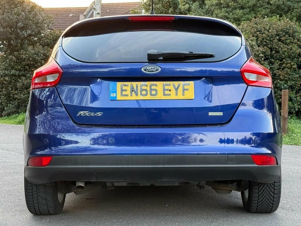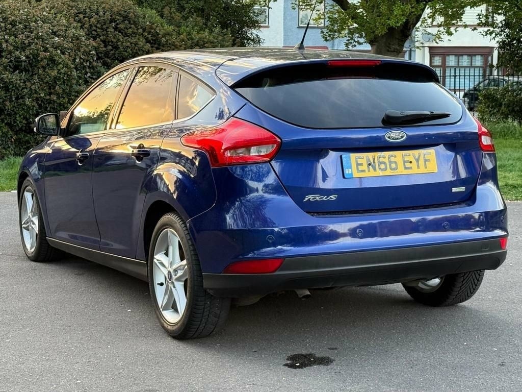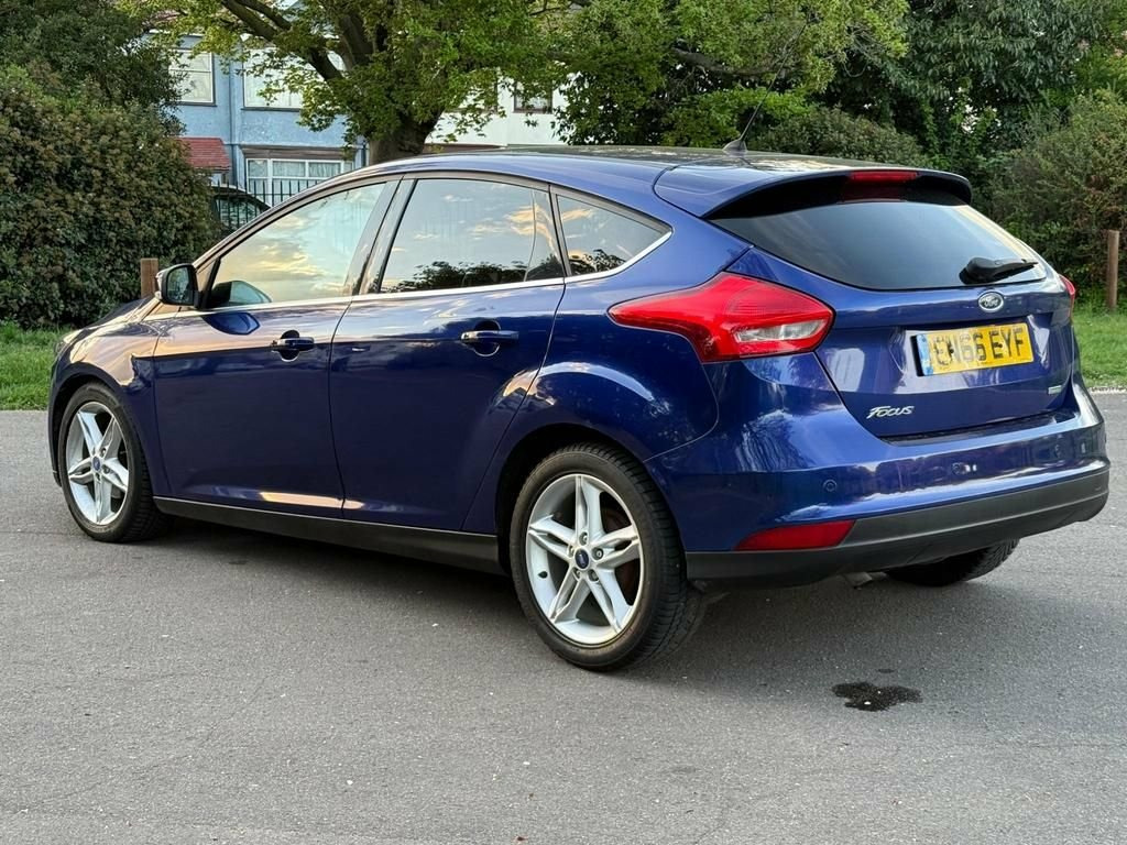 Ford Focus 1.0T EcoBoost Titanium Euro 6 (s/s) 5dr – ULEZ Compliant, , Offered for sale is this excellent 2016 (66) Ford Focus 1.0T EcoBoost Titanium, finished in a sleek blue with 66,000 miles on the clock. This well-maintained hatchback combines style, economy, and performance thanks to its efficient Euro 6 petrol engine—making it ULEZ compliant and ideal for city driving., , It features a smooth manual transmission, intelligent stop/start system, and a high specification Titanium trim including alloy wheels, cruise control, automatic headlights, DAB radio, Bluetooth connectivity, climate control, and rear parking sensors for added convenience., , This Focus is a great choice for those seeking a reliable, practical, and cost-effective vehicle. Road tax and running costs are low, and its 1.0L EcoBoost engine delivers both strong performance and impressive fuel economy 16in Alloy Wheels - 10 Spoke, Active City Stop, Airbags - Driver and Front Passenger, Airbags - Front Side Impact, Airbags - Front and Rear Side Curtain, Alarm - Thatcham Category 1 with Volume , Anti-Lock Braking System - ABS with Elec, Automatic Dimming Rear View Mirror, Automatic Headlights, Centre Console - Premium with Sliding Ar, Chrome Finish on Upper Door Line, Colour TFT Instrument Cluster Display, Courtesy Light - Front and Rear Passenge, Courtesy Lights - Ambient LED Courtesy L, Cruise Control with Active Speed Limiter, DEATC - Dual-Zone Electronic Automatic T, Door Mirrors - Heated - Electric - Integ, Drivers Seat Lumbar Adjust, EPAS - Electric Power Assisted Steering, Electronic