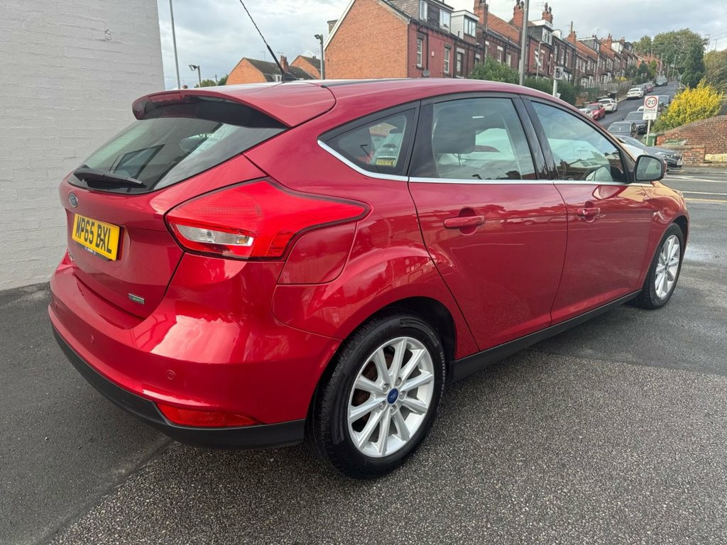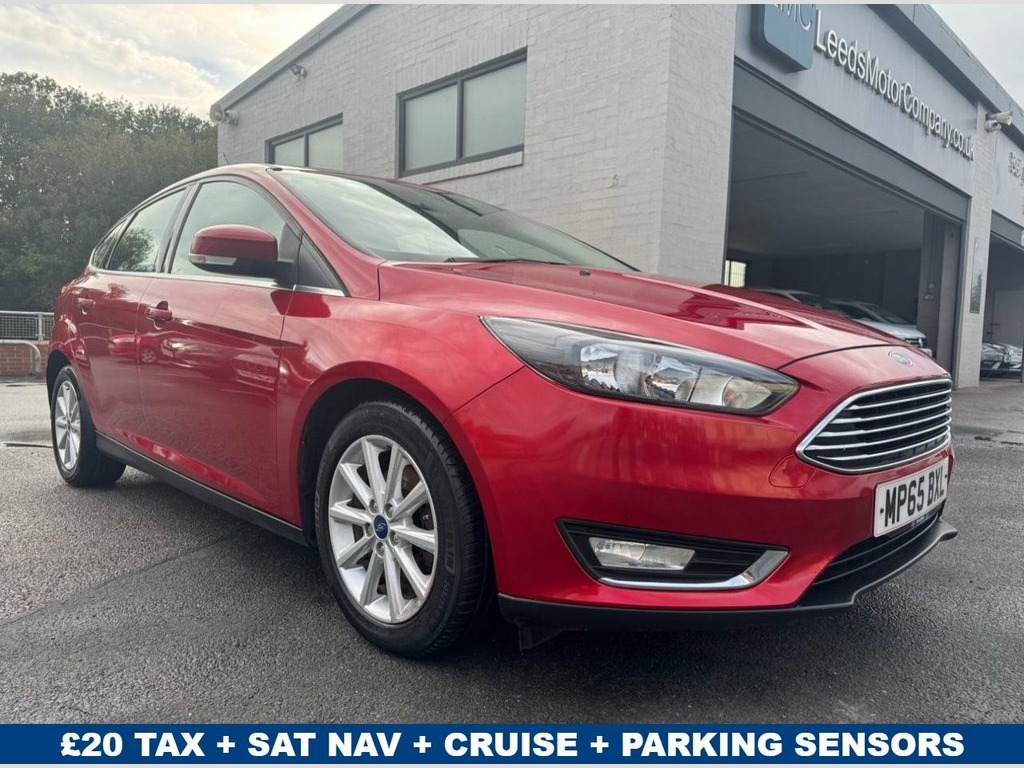 Candy Red 2016 (65) Ford Focus 1.0 Petrol Titanium with just 44,417 miles, offering excellent value and a high level of specification. 1 OWNER FROM NEW and full service history - 10 services to 42,000 miles. It comes packed with features including satellite navigation with maps, Bluetooth hands-free phone prep, DAB radio and parking sensors. The 6-speed gearbox ensures a smooth driving experience, while cruise control adds extra comfort on long journeys. ULEZ compliant and in a £20 year low tax band, it's economical to run. Don't miss out on this top-spec, well-maintained example! Call 0113 2636003 or visit leedsmotorcompany.co.uk. Ford SYNC2 DAB Navigation System, Candy Red, 16in Spare Wheel - Steel, 12V Power Socket - Front, 16in Alloy Wheels - 10 Spoke, 8in Touchscreen Colour Display, ABS - Anti-lock Braking System, AUX Connection, Active City Stop, Air Conditioning - Dual Zone Electronic , Airbag - Front Passenger, Airbags - Curtain, Airbags - Curtain Rear, Airbags - Side Impact, Anti-Submarining Seat Bases, Armrest - Folding Centre - Rear, Automatic Dimming Rear View Mirror, Automatic Rain Sensing Wipers, Black Headlight Bezel, Bluetooth Handsfree Phone System, Body Colour Bumpers, Body Colour Exterior Mirrors, Centre Console - additional 12V power so, Chrome Finish on Upper Door Line, Colour TFT Instrument Cluste