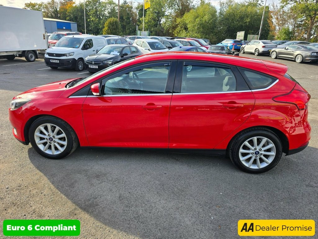 This 2015 Ford Focus T Titanium offers an exceptional ownership proposition with a 3 month warranty for your peace of mind. This well presented example features a responsive 1.0L petrol engine and meets Euro 6 emissions standards. Inside, you'll find a comfortable cabin equipped with dual zone electronic automatic air conditioning, ensuring a pleasant environment for all occupants. For convenience and safety, this Focus includes a rear parking sensor system and automatic headlights, while the Bluetooth handsfree system allows for seamless connectivity on the go. Experience impressive efficiency with this Ford Focus, boasting a remarkable fuel economy of up to 60 miles per gallon. This figure, along with its low CO2 emissions, demonstrates how this vehicle offers a more economical and environmentally conscious driving experience compared to many others in its class. The Titanium trim level further enhances the appeal, providing a refined and feature rich package for everyday journeys. 12V Power Socket - Front, 16in Alloy Wheels - 10 Spoke, 8in Touchscreen Colour Display, ABS - Anti-lock Braking System, Active City Stop, Air Conditioning - Dual Zone Electronic , Airbag - Front Passenger, Airbags - Curtain, Airbags - Curtain Rear, Airbags - Side Impact, Anti-Submarining Seat Bases, Armrest - Folding Centre - Rear, Automatic Dimming Rear View Mirror, Automatic Rain Sensing Wipers, AUX Connection, Black Headlight Bezel, Bluetooth Handsfree Phone System, Body Colour Bumpers, Body Colour Exterior Mirrors, Centre Console - additional 12V power so, Chrome Finish on Upper Door Line, Colour TFT Instrument Cluster Display, Cruise Control with Adjustable Speed Lim, Door Handles - Bod