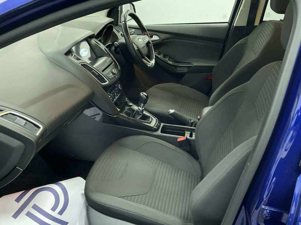 FORD TOUCHSCREEN INFOTAINMENT SYSTEM FEATURING HDD SAT NAV, DAB RADIO AND BLUETOOTH PHONE AND MEDIA ENABLING SEAMLESS MUSIC STREAMING, AIR CON, 17" ALLOYS, DAYTIME RUNNING LIGHTS, CRUISE CONTROL, PRIVACY GLASS, FINANCE MONTHLY PAYMENTS AVAILABLE ON THIS CAR. This well presented Focus is a T Titanium variant finished in Deep impact blue metallic with black premium cloth interior,, powered by an efficient 1.0 litre petrol engine and meeting Euro 6 emissions standards. It comes equipped with desirable features such as automatic headlights, keyless entry for effortless access, and rear parking distance sensors to aid manoeuvring. Inside, you will appreciate the convenience of DEATC dual zone electronic automatic temperature control for personalised comfort and the integrated Ford SYNC3 DAB navigation system to keep you on track. Experience impressive fuel economy with this Focus, achieving up to 60 miles per gallon, which is a significant advantage over many other vehicles in its class. Furthermore, its low CO2 emissions contribute to a more environmentally conscious drive. These highlights demonstrate that this Ford Focus Titanium is a practical and economical choice for everyday motoring. Heated screen, start-stop, electric windows and mirrors, remote central locking alarm and immobilizer, centre arm rest, isofix rear seats, Supplied with HPI report and vehicle book pack. THIS CAR IS AA APPROVED AND SOLD WITH A 145 POINT AA INSPECTION CERTIFICATE AND A NATIONWIDE PARTS AND 16in Alloy Wheels - 10 Spoke, Active City Stop, Airbags - Driver and Front Passenger, Airbags - Front and Rear Side Curtain, Airbags - Front Side Impact, Alarm - Thatcham Category 1 with Volume , Anti-Lock Braking System - ABS with Elec, Automatic Dimming Rear View Mirror, Automatic Headlights, Centre Console - Premium with Sliding Ar, Chrome Finish on Upper Door Line, Colour TFT Instrument Cluster Display, Courtesy Light - Front and Rear Passenge, Courtesy Lights - Ambient LED Courtesy L, Cruise Control with Active Speed Limiter, DEATC - Dual-Zone Electronic Automatic T, Deep Impact Blue, Door Mirrors - Heated - Electric - Integ, Drivers Seat Lumbar Adjust, Electronic Stability Programme -