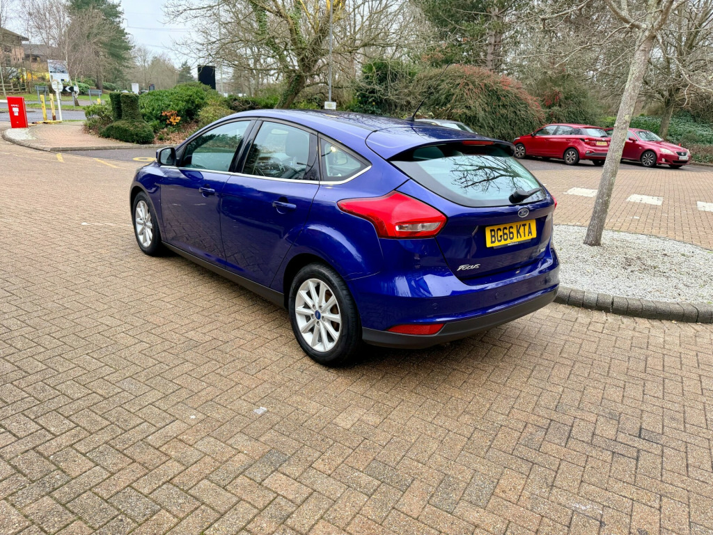 LOW TAX, LOW INSURANCE, GREAT SERVICE HISTORY, 2 KEYS, HIGH SPEC INCLUDING,Air ConditioningAuto Climate ControlAutomatic LightsBluetoothCruise ControlDABDual Zone ClimateHeated Front ScreenMedia ConnectivityRadio, CD and more.This 2016 Ford Focus 1.0T EcoBoost Titanium Hatchback has covered 85215 miles and is powered by petrol, with a manual transmission and Euro 6 (s/s) emissions standard, making it ULEZ compliant. With 5 doors and 5 seats, this hatchback is perfect for families or carpooling. The MOT expires on 29/09/2026, providing peace of mind for the future. It also includes features such as 16in Alloy Wheels, Chrome Finish on Upper Door Line, Heated Electric Door Mirrors, and Self Colour Front Grilles. This reliable and stylish car is a great choice for those in search of a spacious and fuel-efficient vehicle, perfect for navigating both city and country roads. BY APPOINTMENT ONLY! in alloy wheels - 10 spoke, chrome finish on upper door line, door mirrors - heated - electric - integrated side indicators - body coloured, front lower grille - self colour, front upper grille - self colour with chrome surround and finish bar, locking wheel nuts, quickclear heated front windscreen with heated washer jets, rear spoiler - body colour, scuff plates - front aluminium finish with ford logo, spare wheel - mini steel, windows - electrically operated front and rear with one touch lowering-closing and global opening-closing, active city stop, alarm - thatcham category 1 with volume sensing and perimeter, brake warning lights - automatic flashing of brake lights under heavy braking, electronic stability programme - esp - with traction control and emergency brake assist - eba, ford easy-fuel capless refuelling system, ips - intelligent protection system, remote central-double locking, tvc - torque vectoring control, automatic dimming rear view mirror, centre console, courtesy light - front and rear passengers - led overhead and load compartment, deatc - dual-zone electronic automatic temperature control, ford power start button, front floor mats, front seat - drivers manual height and fore-aft adjustment, front seat - drivers manual lumbar support adjustment, front seat - passenger manual fore-aft adjustment, front seats - sports style, gearshift knob - leather, interior door lever - chrome finish, led ambient courtesy lighting, leather-trimmed handbrake, mykey, rear seat - 60-40 split back and cushion, rear seat - folding centre armrest with two integrated cup holders, steering column - rake and reach adjustment, steering wheel - 3 spoke - leather trimmed, automatic on-off headlights includes automatic wipers - headlight courtesy delay, daytime running lamps, front fog lights, halogen headlights with black surround, colour tft instrument cluster display, sync3 with 8in touchscreen dab audio system, cruise control with active speed limiter, epas - electric power assisted steering, ford eco mode - driver information system, front suspension - independent with macpherson struts and anti-roll bar, parking distance sensors - rear, rear suspension - independent control blade multi-link system and anti-roll bar, trip computer, tyre pressure monitoring system