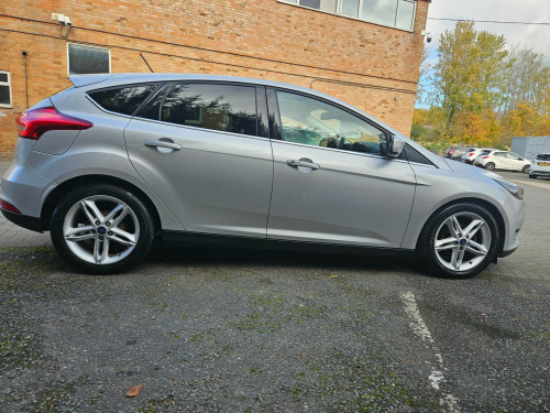 This 2018 British Ford Focus 1.0T EcoBoost Titanium Hatchback with a mileage of 70000 miles is a reliable and efficient choice for drivers. The petrol-powered vehicle has 5 seats and 5 doors, making it spacious and practical for families or everyday use. With an MOT that expires on 18/05/2026 and being ULEZ compliant, it offers peace of mind and environmental friendliness. The car includes 16in Alloy Wheels, Chrome Finish on Upper Door Line, Heated Electric Door Mirrors with Integrated Side Indicators, Body-Coloured Front Grille, and Locking Wheel Nuts. Its Euro 6 (s/s) engine with 125 ps ensures a smooth and responsive drive, making it a great option for those in search of quality and performance. in alloy wheels - 10 spoke, chrome finish on upper door line, door mirrors - heated - electric - integrated side indicators - body coloured, front grille - chrome finish, locking wheel nuts, quickclear heated front windscreen with heated washer jets, rear spoiler - body colour, scuff plates - front aluminium finish with ford logo, spare wheel - mini steel, windows - electrically operated front and rear with one touch lowering-closing and global opening-closing, active city stop, airbags - driver and front passenger, airbags - front side impact, airbags - front and rear side curtain, alarm - thatcham category 1 with volume sensing and perimeter, anti-lock braking system - abs with electronic brake force distribution - ebd, electronic stability programme - esp - with traction control and emergency brake assist - eba, emergency brake warning - automatic hazard warning lights, ford easy-fuel capless refuelling system, hill start assist, ips - intelligent protection system, keyless entry, remote central-double locking, seats - isofix mounting provision for child seats, tvc - torque vectoring control, automatic dimming rear view mirror, centre console - premium with sliding armrest - covered stowage bins, courtesy light - front and rear passengers - led overhead and load compartment, courtesy lights - ambient led courtesy lighting - single colour, deatc - dual-zone electronic automatic temperature control, drivers seat lumbar adjust, ford power starter button, front floor mats, front seat - drivers manual height and fore-aft adjustment, front seat - passenger manual fore-aft adjustment, front seats - sports style, height and lumbar adjust on passenger seat, keyless start, leather-trimmed handbrake, mykey, rain sensitive windshield wipers, rear seat - folding centre armrest with two integrated cup holders, steering column - rake and reach adjustment, steering wheel - 3 spoke - leather trimmed, automatic headlights, front fog lights, halogen headlights with black surround, headlights - courtesy delay, led daytime running lights, rear lights - led, colour tft instrument cluster display, ford sync3 dab navigation system, sync3 with 8in touchscreen dab audio system, cruise control with active speed limiter, epas - electric power assisted steering, ford eco mode - driver information system, front suspension - independent with macpherson struts and anti-roll bar, parking distance sensors - rear, rear suspension - independent control blade multi-link system and anti-roll bar, trip computer, tyre pressure monitoring system