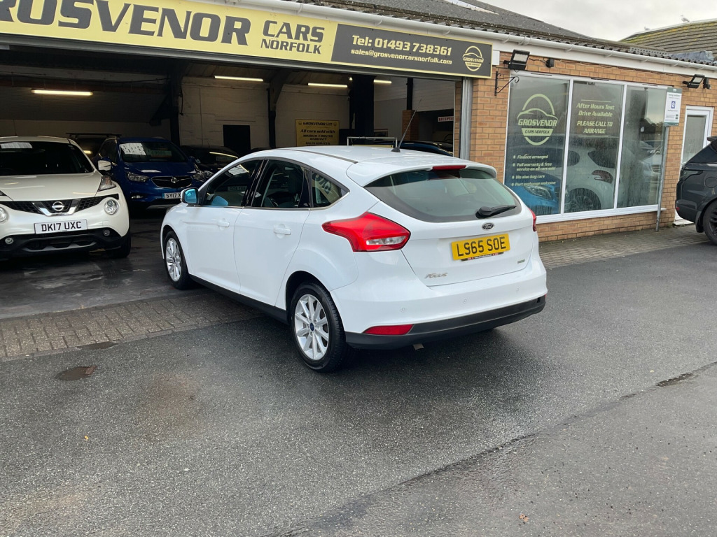For sale is a stylish and efficient 2015 Ford Focus 1.0T EcoBoost Titanium Hatchback with only 50000 miles on the clock. This reliable hatchback runs on petrol and is equipped with a Euro 6 compliant manual transmission producing 125 ps. With MOT valid until 15/01/2027 and ULEZ compliance, this 5-door vehicle comfortably seats 5 passengers and boasts modern features including an 8in touchscreen display, Bluetooth handsfree phone system, and AUX connection. The interior features a convenient centre console and two 12V power sockets for added convenience. Whether for daily commutes or weekend getaways, this Ford Focus offers a smooth ride and impressive fuel economy. Don't miss out on this opportunity to own a dependable and practical hatchback.Buy with confidence at Grosvenor Cars Norfolk all our customers have the added peace of mind that all our vehicles are supplied with a minimum of 8 months mot, sales service, pre delivery inspection & minimum 3 months parts & labour warranty for total peace of mind which can also be extended to 6 or 12 months for a small fee. We deliverer a trusted service from one of the longest standing indoor dealerships in the town with outstanding google reviews.Part exchange welcome & finance available. We offer both PCP and Hire Purchase agreements, please call us for a free quotation or more information. All our vehicles have vast specifications, in most cases, far too much too list, so please always check the vehicles exact specification prior to purchase. We always have at least 30 vehicles in stock to choose from. For more information, please call 01493 738361 or visit our website www.grosvenorcarsnorfolk.co.uk v power socket - front, 8in touchscreen colour display, aux connection, bluetooth handsfree phone system, centre console - additional 12v power socket, colour tft instrument cluster display, emergency assistance, ford am-fm cd audio system, ford dab audio system, ford sync2, rear auxiliary power socket - 12v, sd card reader, speakers - x6, usb connection, 16in alloy wheels - 10 spoke, black headlight bezel, body colour bumpers, body colour exterior mirrors, chrome finish on upper door line, door handles - body colour, door mirrors - electrically operated and heated, door mirrors with integrated indicators, electric windows - front and rear with one touch, electric windows - global opening-closing, front grille - chrome, heated front windscreen, heated washer jets, locking wheel nuts, mini steel spare wheel, rear spoiler - body colour, scuff plates - front - aluminium finish with ford logo, abs - anti-lock braking system, active city stop, airbag - front passenger, airbags - curtain, airbags - curtain rear, airbags - side impact, anti-submarining seat bases, drivers airbag, eba - emergency brake assist, ebd - electronic brakeforce distribution, esp - electronic stability programme, emergency brake warning, ford easy-fuel capless refuelling system, front seat belts with pre-tensioners, hill start assist, ips - intelligent protection system, isofix - child seat attachments, pedals - collapsible, remote central locking, steering column - collapsible, tvc - torque vectoring control, thatcham category 1 alarm, traction control - tc, air conditioning - dual zone electronic automatic temperature control, armrest - folding centre - rear, automatic dimming rear view mirror, automatic rain sensing wipers, floor mats - carpet - front, handbrake cover - leather, height-adjustable mounts on front seat belts, interior door lever - chrome finish, keyless start, mykey, pollen filter, premium centre console, premium centre console - sliding armrest, rear seat - folding centre armrest with 2 integrated cup holders and flip up storage, seats - 60-40 rear split back, seats - drivers height adjustment, seats - drivers lumbar support, seats - front sports, steering column - rake and reach adjustment, steering wheel - 3 spoke - leather trimmed, steering wheel - audio controls, cruise control with adjustable speed limiter, ford eco mode - driver information system, fuel computer, parking sensor - rear, power steering, tyre pressure monitoring system, voice control - audio, front fog lights, headlights - automatic, headlights - halogen