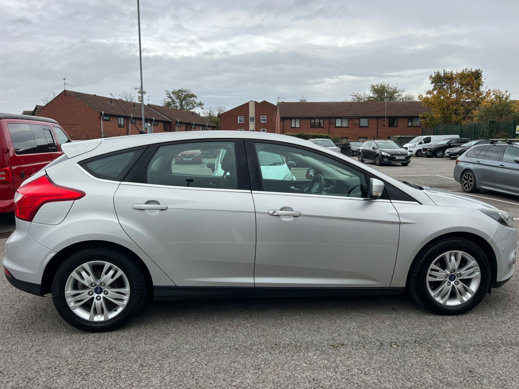 2014 Ford Focus 1.0T EcoBoost Titanium Navigator - Full Service History 2014 to 2025 - Long MOT - ULEZ Compliant - 1 Owner - 6 Months AA Warranty IncludedThe Ford Focus Titanium Navigator is an ideal choice for families, commuters and anyone who values comfort, reliability and excellent fuel efficiency. This 2014 model offers a smooth and refined drive with strong motorway performance and low running costs thanks to its EcoBoost petrol engine. With 81182 miles, it sits at a normal mileage for its age and has been well maintained throughout.** Performance and Economy **Powered by the acclaimed 1.0T EcoBoost engine producing 125 ps, this Focus delivers impressive fuel economy without compromising on performance. The manual gearbox is smooth and responsive, making it excellent for both town driving and longer motorway journeys. Its Euro 5 engine is ULEZ compliant, offering affordable and clean city driving.** Features and Technology **This Titanium Navigator model comes very well equipped with a Sony DAB navigation system, Bluetooth handsfree with voice control, 5 inch colour display, rear parking sensors, automatic headlights, automatic wipers, heated front windscreen, Ford SYNC, climate control and electric heated folding mirrors.** Comfort and Practicality **Inside, the Focus provides excellent comfort with sports seats, dual zone climate control, a centre armrest with storage, ambient LED lighting and adjustable seating for both driver and passengers. The 60-40 split folding rear seats and spacious boot make it ideal for families and everyday use.** Safety and Security **Safety is a strong point with ABS, ESP, traction control, multiple airbags including curtain and side, ISOFIX child seat attachments, hill start assist, tyre pressure monitoring system and a Thatcham Category 1 alarm system.** Ownership and Condition **This vehicle benefits from a long MOT valid until 06/07/2026. It also comes with a full service history from 2014 to 2025 and includes 2 keys. The car drives beautifully and has been clearly cared for.** AA Benefit and Warranty **• A 6 month AA warranty included, which can be extended• 12 month free AA breakdown cover• £75 gift card toward your next MOT and service• Drive away insurance available (T&Cs apply)• Finance options available** Next Steps **This Ford Focus is a fantastic choice and ready to drive away today. To book a test drive, request a personalised video walkaround, or reserve this car, call us on +44 7863 107747 or visit our website at [www.iandbcarsvaletingltd.co.uk](http://www.iandbcarsvaletingltd.co.uk) v power socket - front, 12v power socket - rear, 5in colour screen, bluetooth handsfree and voice control, emergency assistance, ford sync, high level tft instrument cluster screen, sony cd-radio player-mp3 compatibility, sony dab cd mp3 and usb, sony dab navigation system, speakers - x9, usb connection - ipod connectivity, 16in alloy wheels - 5x3 spoke, chrome finish on upper door line, door handles - body colour, door mirrors - heated - electric - auto foldable - integrated side indicators - body coloured, electric windows - front and rear with one touch drivers, heated front windscreen, heated washer jets, locking wheel nuts, mini steel spare wheel, rear spoiler - body colour, abs - anti-lock braking system, airbags - curtain, airbags - front passenger, airbags - side impact, city pack, drivers airbag, eba - emergency brake assist, ebd - electronic brakeforce distribution, esp - electronic stability programme, emergency brake lights, hill start assist, ips - intelligent protection system, isofix - child seat attachments, remote central locking, tvc - torque vectoring control, thatcham category 1 alarm, traction control - tc, air conditioning - dual zone electronic automatic temperature control, armrest - centre console mounted with storage box, automatic dimming rear view mirror, automatic rain sensing wipers, centre console - two cup holders, ford power starter button, gearshift knob - leather, led ambient courtesy lighting, scuff plates - front aluminium-finish with ford logo, seats - 60-40 rear split back, seats - drivers lumbar support, seats - drivers manual height and fore-aft adjustment, seats - front sports, steering column - rake and reach adjustment, steering wheel - 4 spoke leather trimmed, steering wheel - multifunction, cruise control with speed limiter, epas - electric power assisted steering, ford eco mode - driver information system, parking sensor - rear, trip computer, tyre pressure monitoring system, voice control - audio, front fog lights, headlights - automatic, headlights - follow me home, rear lights - led