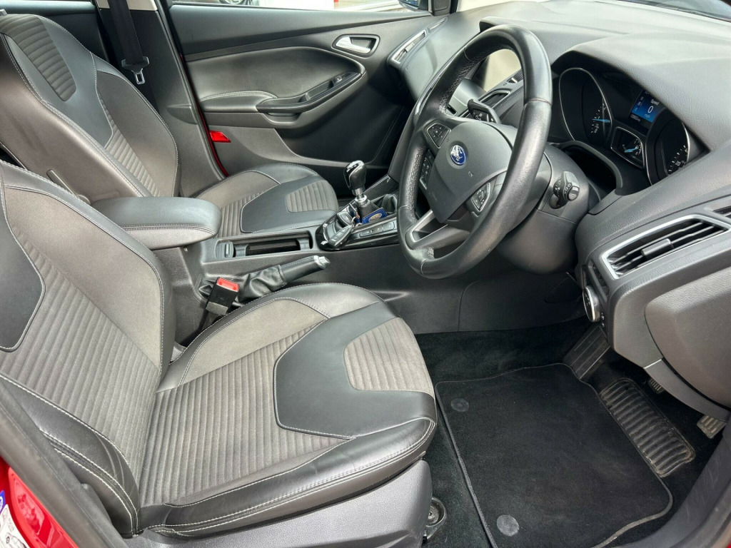Finished in red metallic with black half leather heated trim, Navigation system, rear view camera, front and rear parking sensors with park assistance, electric drivers seat, Bluetooth and WiFi connectivity, cd player/DAB touch screen radio tuner, dual climate control, cruise control, heated front screen, keyless start, electric door edge protectors, city stop assist, electric windows, power folding mirrors, traffic sign recognition, lane depart warning, automatic headlights and high beam activation, multi function steering wheel, trip computer, USB/AUX input, Led daytime running lights, isofix child seat anchors, 17 inch alloy wheels, ONLY 29,978miles and 3 owners from new with full service history - 9 service entries including wetbelt replacement 2025ALL OUR VEHICLES ARE AVAILABLE WITH NATIONWIDE EXTENDED WARRANTY. WE WANT YOUR PART EXCHANGE. PLEASE CALL FOR FURTHER INFORMATION. PART EXCHANGE CONSIDERED, COMPETITIVE HP/PCP FINANCE ARRANGED SUBJECT TO STATUS. MOT, MINOR SERVICE AND WARRANTY PROVIDED WHERE APPLICABLE - PLEASE ASK FOR MORE INFORMATION. 12V Power Socket - Front, 17in Alloy Wheels - 15 Spoke, 8in Touchscreen Colour Display, ABS - Anti-lock Braking System, AUX Connection, Active City Stop, Air Conditioning - Dual Zone Electronic Automatic Temperature Control, Airbag - Front Passenger, Airbags - Curtain, Airbags - Curtain Rear, Airbags - Side Impact, Anti-Submarining Seat Bases, Armrest - Centre Console, Armrest - Folding Centre - Rear, Automatic Dimming Rear View Mirror, Automatic Rain Sensing Wipers, Bi-Xenon Headlights, Black Headlight Bezel, Bluetooth Handsfree Phone System, Body Colour Bumpers, Body Colour Exterior Mirrors, Chrome Finish on Upper Door Line, City Pack, Colour TFT Instrument Cluster Display, Convenience Pack, Cruise Control with Adjustable Speed Limiter, Door Handles - Body Colour, Door Mirrors with Integrated Indicators, Drivers Airbag, EBA - Emergency Brake Assist, EBD - Electronic Brakeforce Distribution, ESP - Electronic Stability Programme, Electric Windows - Front and Rear with One Touch, Electric Windows - Global Opening-Closing, Emergency Assistance, Emergency Brake Warning, Floor Mats - Carpet - Front and Rear, Ford AM-FM CD Audio System, Ford DAB Audio System, Ford Easy-Fuel Capless Refuelling System, Ford Eco Mode - Driver Information System, Ford SYNC2, Front Fog Lights, Front Grille - Chrome, Front Parking Sensors, Front Seat Belts with Pre-Tensioners, Fuel Computer, Handbrake Cover - Leather, Headlights - Adaptive, Headlights - Automatic, Headlights - Halogen, Headlights - Jet Wash, Headlights - Static Cornering Lights, Heated Driver and Passenger Seats, Heated Front Windscreen, Height-Adjustable Mounts on Front Seat Belts, Hill Start Assist, IPS - Intelligent Protection System, ISOFIX - Child Seat Attachments, Keyless Start, LED Daytime Running Lights, Load Compartment Tonneau Cover, Locking Wheel Nuts, Mini Steel Spare Wheel, Multi-Colour Ambient LED Lighting, MyKey, Park Assist - Active, Parking Sensor - Rear, Pedals - Collapsible, Pollen Filter, Power Adjustable Driver Seat, Power Fold Door Mirrors, Power Steering, Premium Centre Console, Rear Auxiliary Power Socket - 12V, Rear Lights - LED Technology, Rear Seat - Folding Centre Armrest with 2 Integrated Cup Holders and Flip up Storage, Rear View Camera, Remote Central Locking, Scuff Plates - Front - Aluminium Finish with Ford Logo, Seat - Driver Electric Height Adjustment, Seats - 60-40 Rear Split Back, Seats - Drivers Lumbar Support, Seats - Front Sports, Seats - Passenger Height Adjustment, Seats - Passenger Lumbar Support, Silver Roof Rails, Speakers - x6, Steering Column - Collapsible, Steering Column - Rake and Reach Adjustment, Steering Wheel - 3 Spoke - Leather Trimmed, Steering Wheel - Audio Controls, Suspension - Sports, TVC - Torque Vectoring Control, Thatcham Category 1 Alarm, Traction Control - TC, Tyre Pressure Monitoring System, USB Connection, Voice Control - Audio, Door Edge Protectors, Pur Cloth-Torino Leather - Charcoal Black, Driver Assistance Pack, Retractable Trailer Coupling with 13-pin Electrical Kit, Ford SYNC2 DAB Navigation System. Full service history