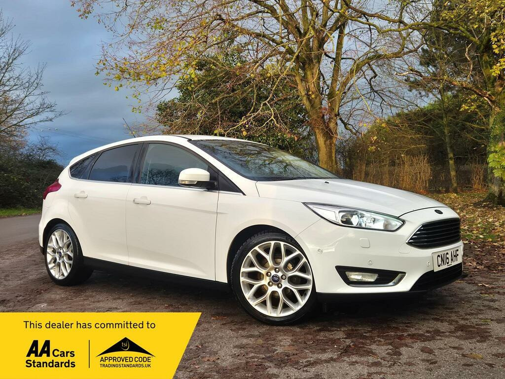This 2016 Ford Focus Titanium X presents a superb ownership proposition, having had only two owners from new and boasting a clear vehicle history check and a full service history done at 10463 in 2016, 18269 in 2017, 27934 in 2018, 35706 in 2019, 43678 in 2020, 51129 in 2021, 59229 in 2022, 68038 in 2023, 74844 in 2024, 86437 in 2025. Under the bonnet, you'll find an efficient 1.0 litre petrol engine that meets Euro 6 emissions standards, making it a more environmentally conscious choice. This well appointed Titanium X trim level comes equipped with desirable features such as Bi-Xenon headlights with automatic activation, front parking sensors to aid manoeuvring, and a dual zone electronic automatic climate control system for personalised comfort. The integrated Bluetooth handsfree system ensures you can stay connected safely on the go.This Ford Focus is designed to impress with its practicalities and running costs. You can expect an excellent fuel economy of up to 60 miles per gallon, which is a significant advantage for everyday driving and longer journeys. Furthermore, its low CO2 emissions highlight its efficiency, contributing to lower road tax. The generous boot space offers ample room for shopping, luggage, or sports equipment, making it a versatile choice for families and individuals alike. These combined highlights demonstrate how this Focus Titanium X offers a superior ownership experience compared to many other vehicles in its class., emium ford sync2 dab navigation system, driver assistance pack, 18in alloy wheels - 5 spoke, ford sync2 dab navigation system, 12v power socket - front, 17in alloy wheels - 15 spoke, 8in touchscreen colour display, abs - anti-lock braking system, aux connection, active city stop, air conditioning - dual zone electronic automatic temperature control, airbag - front passenger, airbags - curtain, airbags - curtain rear, airbags - side impact, anti-submarining seat bases, armrest - centre console, armrest - folding centre - rear, automatic dimming rear view mirror, automatic rain sensing wipers, bi-xenon headlights, black headlight bezel, bluetooth handsfree phone system, body colour bumpers, body colour exterior mirrors, chrome finish on upper door line, city pack, colour tft instrument cluster display, convenience pack, cruise control with adjustable speed limiter, door handles - body colour, door mirrors with integrated indicators, drivers airbag, eba - emergency brake assist, ebd - electronic brakeforce distribution, esp - electronic stability programme, electric windows - front and rear with one touch, electric windows - global opening-closing, emergency assistance, emergency brake warning, floor mats - carpet - front and rear, ford am-fm cd audio system, ford dab audio system, ford easy-fuel capless refuelling system, ford eco mode - driver information system, ford sync2, front fog lights, front grille - chrome, front parking sensors, front seat - passenger manual adjustment, front seat belts with pre-tensioners, fuel computer, handbrake cover - leather, headlights - adaptive, headlights - automatic, headlights - halogen, headlights - jet wash, headlights - static cornering lights, heated driver and passenger seats, heated front windscreen, height-adjustable mounts on front seat belts, hill start assist, ips - intelligent protection system, isofix - child seat attachments, keyless start, led daytime running lights, locking wheel nuts, mini steel spare wheel, multi-colour ambient led lighting, mykey, park assist - active, parking sensor - rear, pedals - collapsible, pollen filter, power adjustable driver seat, power fold door mirrors, power steering, premium centre console, rear lights - led technology, rear seat - folding centre armrest with 2 integrated cup holders and flip up storage, rear spoiler - body colour, rear view camera, remote central locking, scuff plates - front - aluminium finish with ford logo, seat - driver electric height adjustment, seats - 60-40 rear split back, seats - drivers lumbar support, seats - front sports, seats - passenger height adjustment, seats - passenger lumbar support, speakers - x6, steering column - collapsible, steering column - rake and reach adjustment, steering wheel - 3 spoke - leather trimmed, steering wheel - audio controls, suspension - sports, tvc - torque vectoring control, thatcham category 1 alarm, traction control - tc, tyre pressure monitoring system, usb connection, voice control - audio