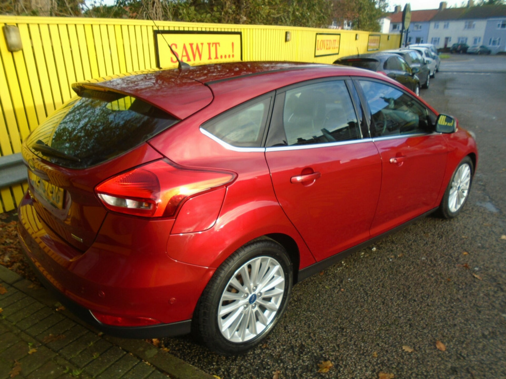 This 2015 Ford Focus 1.0T EcoBoost Titanium X Hatchback with a mileage of 60300 miles is a reliable and fuel-efficient choice, running on petrol and being ULEZ compliant. With 5 doors and 5 seats, this hatchback offers ample space for both passengers and cargo. Its MOT is valid until 12/06/2026, giving the new owner peace of mind. The car comes with a range of features, including a 8in touchscreen colour display, Bluetooth handsfree phone system, and a colour TFT instrument cluster display. It also includes practical elements such as a 12V power socket in the front and an AUX connection. This Euro 6 (s/s) model offers 125 ps, making it a powerful and environmentally-friendly option for any driver., 07833 580083 v power socket - front, 8in touchscreen colour display, aux connection, bluetooth handsfree phone system, colour tft instrument cluster display, emergency assistance, ford am-fm cd audio system, ford dab audio system, ford sync2, speakers - x6, usb connection, 17in alloy wheels - 15 spoke, black headlight bezel, body colour bumpers, body colour exterior mirrors, chrome finish on upper door line, door handles - body colour, door mirrors with integrated indicators, electric windows - front and rear with one touch, electric windows - global opening-closing, front grille - chrome, heated front windscreen, locking wheel nuts, mini steel spare wheel, power fold door mirrors, rear spoiler - body colour, scuff plates - front - aluminium finish with ford logo, abs - anti-lock braking system, active city stop, airbag - front passenger, airbags - curtain, airbags - curtain rear, airbags - side impact, anti-submarining seat bases, city pack, drivers airbag, eba - emergency brake assist, ebd - electronic brakeforce distribution, esp - electronic stability programme, emergency brake warning, ford easy-fuel capless refuelling system, front seat belts with pre-tensioners, hill start assist, ips - intelligent protection system, isofix - child seat attachments, pedals - collapsible, remote central locking, steering column - collapsible, tvc - torque vectoring control, thatcham category 1 alarm, traction control - tc, air conditioning - dual zone electronic automatic temperature control, armrest - centre console, armrest - folding centre - rear, automatic dimming rear view mirror, automatic rain sensing wipers, convenience pack, floor mats - carpet - front and rear, front seat - passenger manual adjustment, handbrake cover - leather, heated driver and passenger seats, height-adjustable mounts on front seat belts, keyless start, multi-colour ambient led lighting, mykey, pollen filter, power adjustable driver seat, premium centre console, rear seat - folding centre armrest with 2 integrated cup holders and flip up storage, seat - driver electric height adjustment, seats - 60-40 rear split back, seats - drivers lumbar support, seats - front sports, seats - passenger height adjustment, seats - passenger lumbar support, steering column - rake and reach adjustment, steering wheel - 3 spoke - leather trimmed, steering wheel - audio controls, bi-xenon headlights, front fog lights, headlights - adaptive, headlights - automatic, headlights - halogen, headlights - jet wash, headlights - static cornering lights, led daytime running lights, rear lights - led technology, cruise control with adjustable speed limiter, ford eco mode - driver information system, front parking sensors, fuel computer, park assist - active, parking sensor - rear, power steering, rear view camera, suspension - sports, tyre pressure monitoring system, voice control - audio, all cars come fully serviced, alloy wheels, service history, £20 tax
