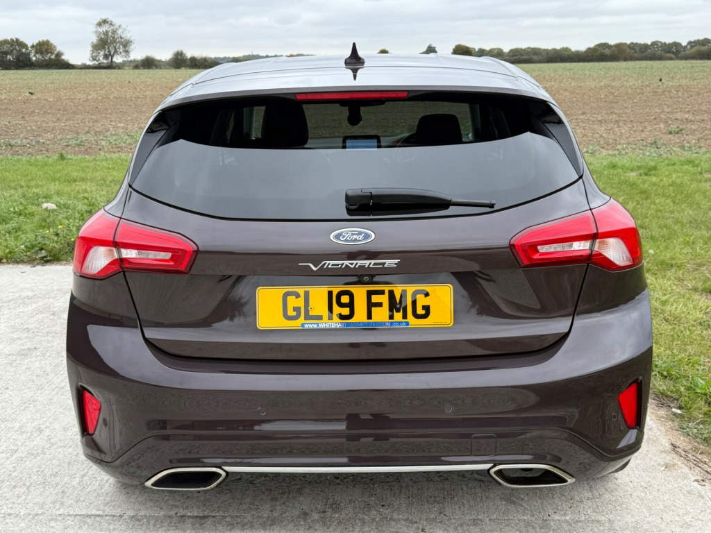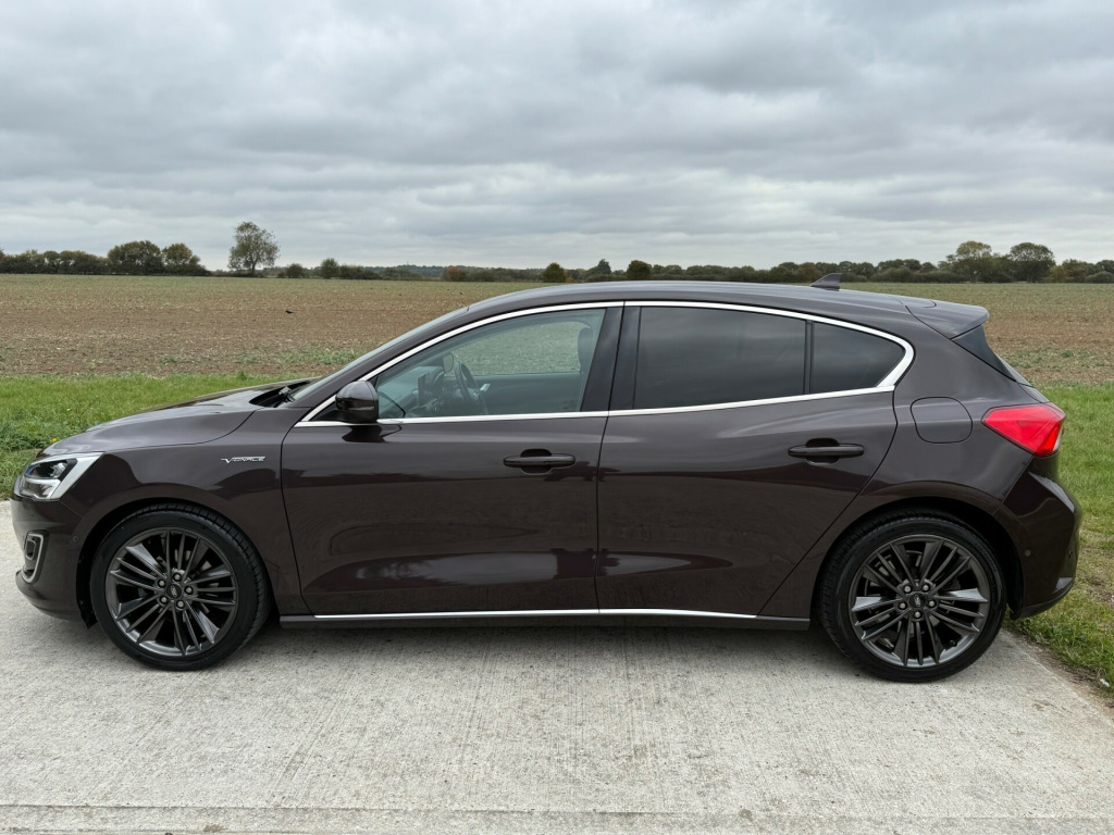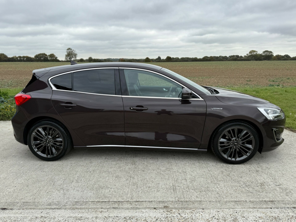 Here at Whitehart Service Station, we are delighted to offer for sale this top-of-the-range Ford Focus 1.0T EcoBoost Vignale Hatchback 5dr, 2019 ''69'' plate, finished in a Special Metallic Mulberry Purple, with only 39220 miles and a comprehensive service history. This vehicle's specification is massive and includes Heads up Display, Leather Seats, Heated Seats, Heated Steering Wheel, Dual Zone Climate Control, Park Sensors front and rear, Reversing Camera, Cruise Control, Satelitte Navigation, Steering wheel controls, Power Folding Mirrors, Vignale Specail Grille and mcuh more. We have had the wheels refurbished anmd finished in Dark Shadow Chrome which really complements the exterior colour of the Focus. If you have any questions, please call the showroom on 01702 202202 or Stuart directly on 07814 001598. in alloy wheels - 5x3 spoke - liquid aluminium, body colour bumpers, door mirrors - electrically-operated - heated - power-foldable - body colour housings - side indicators - puddle lights, quickclear heated windscreen, rear privacy glass, spare wheel - mini steel, unique vignale front grille and bodystyling, windows - electrically operated front and rear with one touch opening and closing, active park assist, cruise control with speed limiter, head-up display, parking sensor - front and rear, pre-collision assist with autonomous emergency braking and pedestrian-cyclist detection, pre-collision assist with pedestrian detection, rear wide view camera, selectable drive mode, trip computer, tyre pressure monitoring system, airbags - driver and front passenger, airbags - front side impact, airbags - front and rear side curtain, electric parking brake, ford key free system - keyless entry with keyless start, front passenger airbag deactivation switch, front and rear seatbelt minder, keyless entry, lane keeping aid with lane departure warning, post collision braking, remote central locking and engine immobiliser, thatcham category 1 alarm, automatic dimming rear view mirror, courtesy light - ambient led courtesy lighting - multi-colour, deatc - dual-zone electronic automatic temperature control, door edge protectors, front seat - drivers manual lumbar support adjustment, front seats - driver and passenger heated seats, heated steering wheel, load through ski hatch, mykey, rain sensitive windshield wipers, rear centre headrest, steering wheel - 3-spoke - leather trimmed, vignale floor mats - front and rear, b&o play premium audio system, ford sync3 dab navigation system, fordpass connect, instrument cluster - 4.2in colour tft display, headlights - automatic on-off, headlights - led, led daytime running lights, led front fog lights with cornering function, rear lights - led