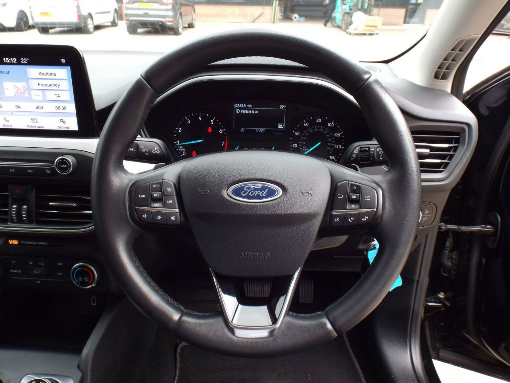 **NATIONWIDE DELIVERY AVAILABLE**This is a very clean and well looked after 2019/19 Ford Focus 1.0T Zetec Automatic which comes with a Full service history (Very recently serviced) a long MOT until 08/2026 and a great spec. Finished in Black the paintwork is excellent and the vehicle has a lovely shine to it from all over. The black cloth interior is also in great condition with no adverse wear at all. Great spec: E/Windows, E/Mirrors, Remote C/L (2xKeys), Unmarked diamond cut alloy wheels, Rear parking sensors, Auto lights, Front and rear fog lights, Black cloth interior, AM/FM/DAB Radio, Aux/USB Input, Bluetooth connectivity, Ford Sync, Climate control with Air conditioning, Multi-function steering wheel, Cruise control, ABS/PAS/DSC, Fully fitted mats plus loads more. This is a great example which drives superb. We offer excellent finance rates, accept credit/debit cards and welcome part exchange too..,