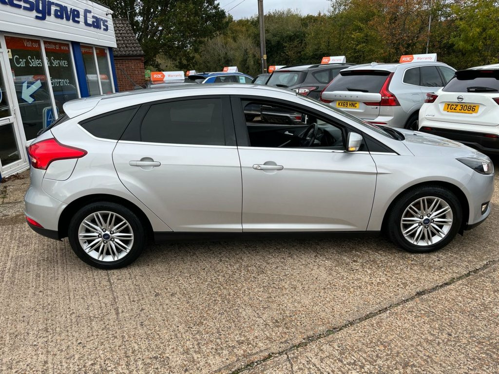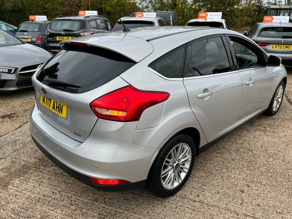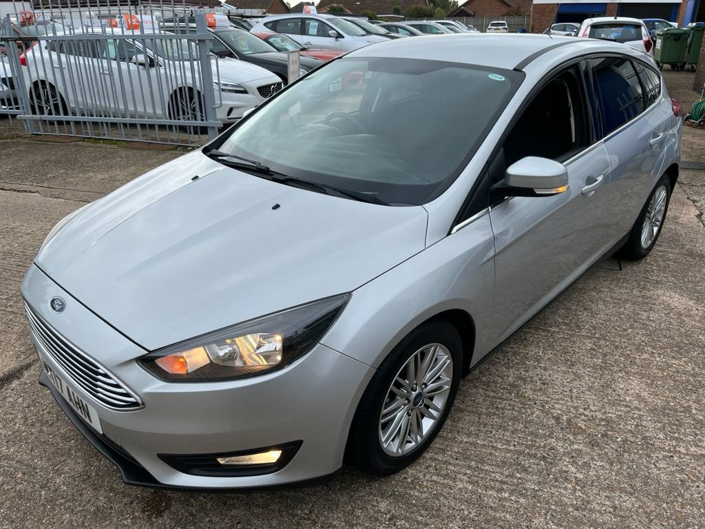 This 2017 Ford Focus Zetec Edition presents an excellent opportunity, showing remarkably low mileage for its age at just 58,112 miles. This Euro 6 compliant 1.0 litre petrol model blends efficiency, practicality, and comfort in equal measure. Finished in the optional Moondust Silver metallic paint, it includes desirable upgrades such as the SYNC3 DAB Navigation System with an 8 inch touchscreen and rear parking sensors for easier manoeuvring. Inside, the charcoal black View cloth sports seats and leather trimmed steering wheel provide a smart, comfortable interior environment. Further convenience features include manual air conditioning, cruise control with an active speed limiter, and a Quickclear heated windscreen with heated washer jets for quick demisting on cold mornings. Safety and stability are supported by Electronic Stability Programme with traction control, and multiple airbags including front, side, and curtain protection. This Focus Zetec Edition also benefits from excellent fuel economy, achieving up to 61 miles per gallon, making it more economical than many similar cars in its class. Its low CO2 emissions further add to its appeal for cost-conscious and environmentally aware drivers. The car comes supplied with a 3 month warranty for peace of mind and will include a full 12 months MOT upon purchase. This combination of reliable performance, efficient running costs, and practical specification makes this Focus a superb choice for everyday motoring. 16in Spare Wheel - Steel, Moondust Silver, View Cloth - Charcoal Black, 16in Alloy Wheels, Air Conditioning - Manual, Airbags - Driver and Front Passenger, Airbags - Front Side Impact, Airbags - Front and Rear Side Curtain, Alarm - Thatcham Category 1 with Volume , Anti-Lock Braking System - ABS with Elec, Centre Console with Armrest - Open Stowa, Chrome Finish on Upper Door Line, Colour TFT Instrument Cluster Display, Courtesy Light - Front and Rear Passenge, Cruise Control with Active Speed Limiter, Door Mirrors - Heated - Electric - Integ, Drivers Seat Lumbar Adjust, EPAS - Electric Power Assisted Steering, Electronic Stability Programme - ESP - w, Emergency Brake Warning - Automatic Haza
