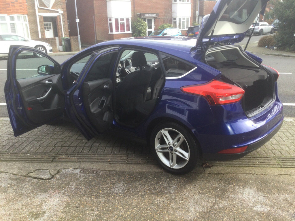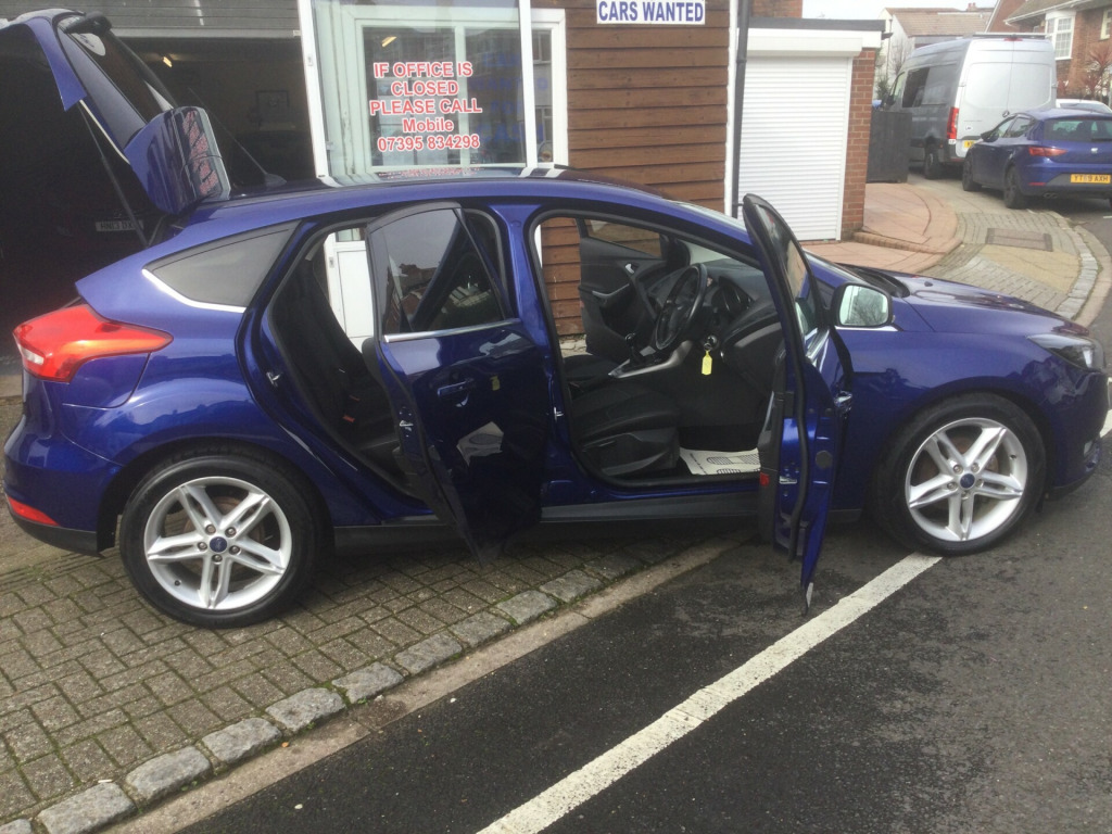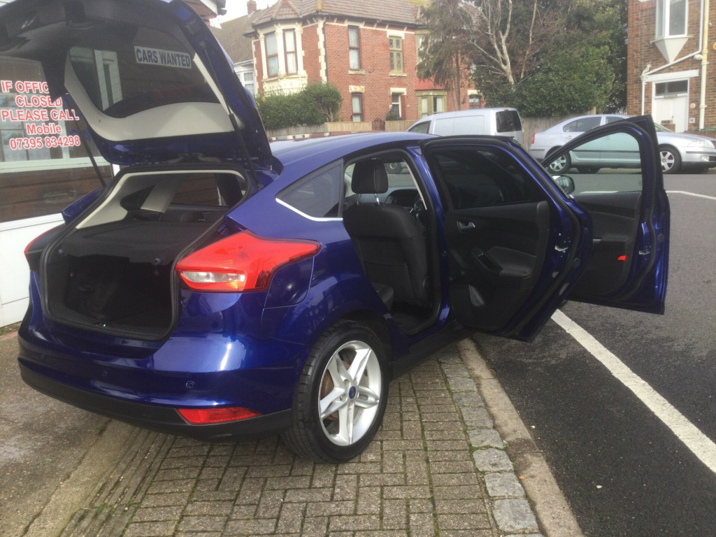 JUST ARRIVED NEW IN STOCK , THE GARAGE WITH THE GOOD REPUTATION , WWW.NIGELSANDSCARSALES.CO.UK , PRESENTED IN A BEAUTIFUL UNMARKED BLUE METALLIC BODY WITH SPOTLESS CLOTH TRIM , FULL SERVICE RECORDS FROM NEW , LONG MOT ,LOOKS AND DRIVES WITH NO ISSUES AT ALL PERFECT , STUNNING INSIDE AND OUT , HPI ALL CLEAR , READY TO DRIVE AWAY, PART EXCHANGE VERY WELCOME ,3 MONTHS WARRANTY PARTS AND LABOUR , PLEASE BE FREE TO CALL ME OR EMAIL ANY TIME , NIGEL FROM NIGEL SANDS CAR SALES , ESTABLISHED 36 YEARS BUYING AND SELLING USED VECHILES IN SOUTHSEA PORTSMOUTH. in alloy wheels, chrome finish on upper door line, door mirrors - heated - electric - integrated side indicators - body coloured, front grille - chrome finish, locking wheel nuts, quickclear heated front windscreen with heated washer jets, rear privacy glass, rear spoiler - body colour, spare wheel - mini steel, windows - electrically operated front with one touch lowering on drivers side, wipers - standard with 6 speed interval settings, air conditioning - manual, centre console with armrest - open stowage bins, courtesy light - front and rear passengers - overhead halogen and load compartment, drivers seat lumbar adjust, front floor mats, front seat - drivers manual height and fore-aft adjustment, front seat - passenger manual fore-aft adjustment, front seats - sports style, mykey, steering column - rake and reach adjustment, steering wheel - 3 spoke - leather trimmed, airbags - driver and front passenger, airbags - front side impact, airbags - front and rear side curtain, alarm - thatcham category 1 with volume sensing and perimeter, anti-lock braking system - abs with electronic brake force distribution - ebd, electronic stability programme - esp - with traction control and emergency brake assist - eba, emergency brake warning - automatic hazard warning lights, ford easy-fuel capless refuelling system, hill start assist, ips - intelligent protection system, remote central-double locking, seats - isofix mounting provision for child seats, tvc - torque vectoring control, colour tft instrument cluster display, ford sync3 dab navigation system, sync3 with 8in touchscreen dab audio system, cruise control with active speed limiter, epas - electric power assisted steering, ford eco mode - driver information system, front suspension - independent with macpherson struts and anti-roll bar, parking distance sensors - rear, rear suspension - independent control blade multi-link system and anti-roll bar, trip computer, tyre pressure monitoring system, front fog lights, halogen headlights with black surround