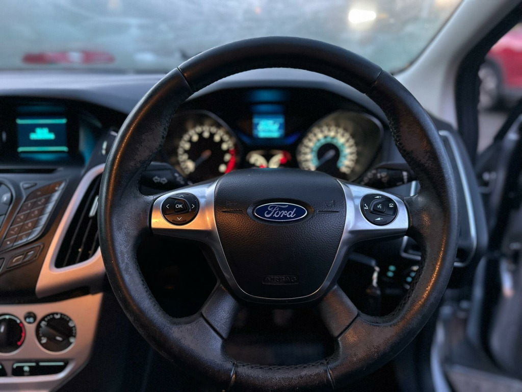 This 2014 Ford Focus T Zetec offers an impressive 57 miles per gallon, making it a very economical choice for your driving needs. This particular model is a T Zetec variant with a 1.0 litre petrol engine, and it comes equipped with desirable features such as Bluetooth handsfree and voice control, allowing you to stay connected safely. It also includes air conditioning to ensure your comfort on every journey.Beyond its practical features, this Ford Focus also boasts a large boot space, perfect for carrying shopping or luggage. Its low CO2 emissions are a significant advantage, indicating it is more environmentally friendly than many comparable vehicles. These highlights combined with its efficient engine and comfortable interior make this Focus a sensible and appealing option.ULEZ compliant, £35 annual tax, and also comes with new MOT on sale. 3 months nationwide AA warranty and 12 months Nationwide AA breakdown cover included in the asking price. Video viewing available,Nationwide delivery available. Part exchange welcome, finance available on request. v power socket - front, 16in alloy wheels - 5x2 spoke, abs - anti-lock braking system, air conditioning, airbags - front passenger, airbags - front and 2nd row curtain, airbags - side impact, bluetooth handsfree and voice control, bright finish on upper door line, centre console with open stowage bins, chrome finish on upper door line, door mirrors - heated - electric - integrated side indicators - body coloured, drivers airbag, eba - emergency brake assist, ebd - electronic brakeforce distribution, epas - electric power assisted steering, esp - electronic stability programme, electrically-operated front windows with one touch drivers, emergency assistance, emergency brake lights, ford am-fm cd audio system, ford dab audio system, ford easy-fuel capless refuelling system, ford eco mode - driver information system, ford sync, front fog lights, front lower grille - black, front seat - passengers manual fore-aft adjustment, front suspension - independent with macpherson struts, front upper grille - black with chrome bar, heated front windscreen, heated washer jets, ips - intelligent protection system, isofix - child seat attachments, locking wheel nuts, mini steel spare wheel, pollen filter, rear spoiler, remote central locking, seats - 60-40 rear split back, seats - drivers lumbar support, seats - drivers manual height and fore-aft adjustment, seats - front sports, steering column - rake and reach adjustment, steering wheel - 4 spoke leather trimmed, steering wheel - multifunction, tvc - torque vectoring control, thatcham category 1 alarm, traction control - tc, trip computer, usb connection - ipod connectivity, voice control - audio