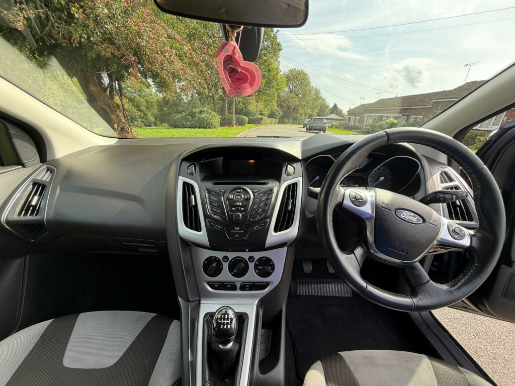 Discover this 2014 Ford Focus Zetec, a reliable and well equipped hatchback. Powered by an efficient 1.0 litre petrol engine, this T Zetec model offers a smooth driving experience. Inside, you'll find convenient features such as Bluetooth handsfree and voice control, allowing you to stay connected safely on the go. The cabin also benefits from air conditioning, ensuring a comfortable environment whatever the weather.This Ford Focus stands out with its impressive fuel economy, achieving a remarkable 57 miles per gallon, which indicates it is more economical than many similar vehicles. Furthermore, its low CO2 emissions highlight its environmental consideration. Practicality is also a strong point, with a large boot space that provides ample room for shopping, luggage, or sports equipment, making it a versatile choice for everyday use. v power socket - front, 16in alloy wheels - 5x2 spoke, abs - anti-lock braking system, air conditioning, airbags - curtain, airbags - front passenger, airbags - side impact, bluetooth handsfree and voice control, chrome finish on upper door line, door handles - body colour, door mirrors - heated - electric - integrated side indicators - body coloured, drivers airbag, eba - emergency brake assist, ebd - electronic brakeforce distribution, epas - electric power assisted steering, esp - electronic stability programme, electrically-operated front windows with one touch drivers, emergency assistance, emergency brake lights, ford dab audio system with sync, ford eco mode - driver information system, ford sync, front fog lights, heated front windscreen, heated washer jets, ips - intelligent protection system, isofix - child seat attachments, locking wheel nuts, mini steel spare wheel, rear spoiler - body colour, remote central locking, seats - 60-40 rear split back, seats - drivers lumbar support, seats - drivers manual height and fore-aft adjustment, seats - front sports, steering column - rake and reach adjustment, steering wheel - 4 spoke leather trimmed, steering wheel - multifunction, stereo radio-cd, tvc - torque vectoring control, thatcham category 1 alarm, traction control - tc, trip computer, usb connection - ipod connectivity, voice control - audio