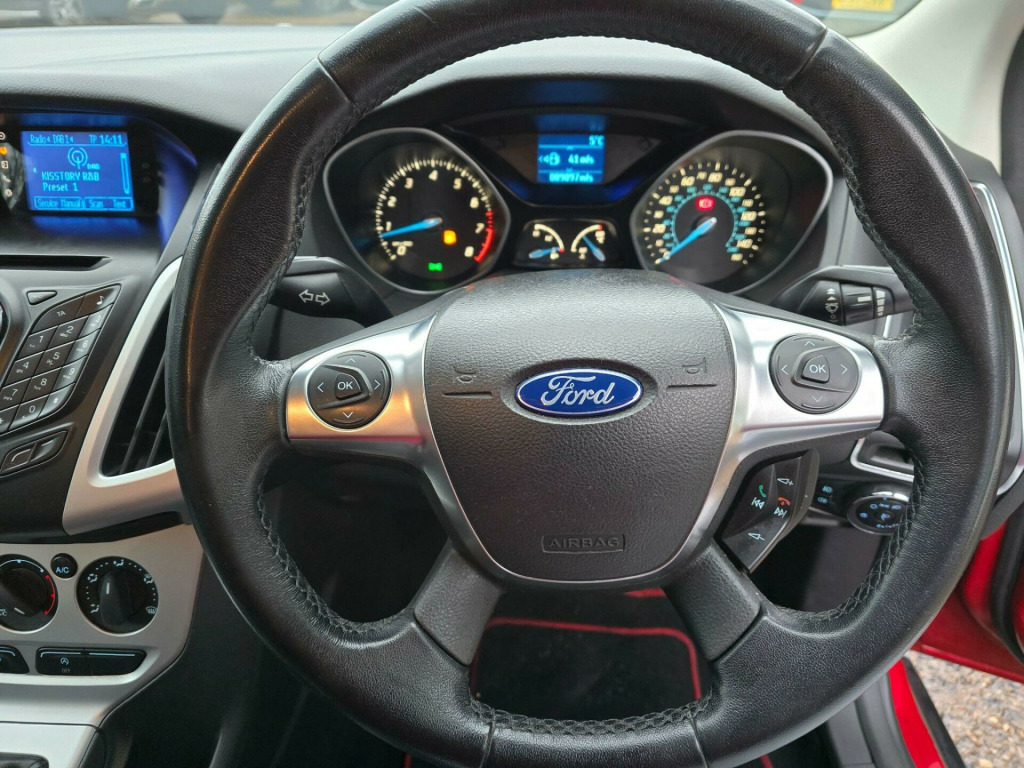 This 2012 Ford Focus T Zetec offers an impressive fuel economy of 57 miles per gallon, making it a sensible choice for your motoring needs. This particular model is equipped with a 1.0 litre petrol engine and benefits from Air Conditioning for your comfort, along with Bluetooth Handsfree and Voice Control for convenient connectivity on the go.The Ford Focus T Zetec stands out with its large boot space, providing ample room for luggage or shopping. Furthermore, its low CO2 emissions indicate a more environmentally friendly performance compared to many other vehicles in its class. in alloy wheels - 5x2 spoke, abs - anti-lock braking system, air conditioning, airbags - front passenger, airbags - front and 2nd row curtain, airbags - side impact, bluetooth handsfree and voice control, bright finish on upper door line, centre console - with open stowage bins additional 12v socket, chrome finish on upper door line, door mirrors - heated - electric - integrated side indicators - body coloured, drivers airbag, eba - emergency brake assist, ebd - electronic brakeforce distribution, epas - electric power assisted steering, esp - electronic stability programme, electrically-operated front windows with one touch drivers, emergency brake lights, ford am-fm cd audio system, ford dab audio system, ford easy-fuel capless refuelling system, ford eco mode - driver information system, front fog lights, front lower grille - black, front seat - passengers manual fore-aft adjustment, front suspension - independent with macpherson struts, front upper grille - black with chrome bar, fuel computer, heated front windscreen, heated washer jets, ips - intelligent protection system, isofix - child seat attachments, locking wheel nuts, mini steel spare wheel, pollen filter, rear spoiler, remote central locking, seats - 60-40 rear split back, seats - drivers lumbar support, seats - drivers manual height and fore-aft adjustment, seats - front sports, steering column - rake and reach adjustment, steering wheel - 4 spoke leather trimmed, steering wheel - multifunction, tvc - torque vectoring control, thatcham category 1 alarm, traction control - tc, usb connection - ipod connectivity