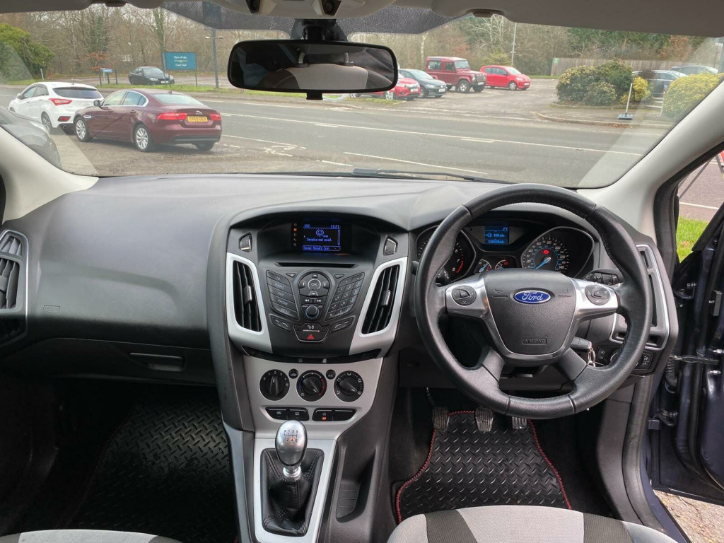 The car has got: AIR CON, AUX IN,DAB,HEATED FRONT SCREEN,RADIO CD,TRACTION CONTROLThis 2013 Ford Focus T Zetec offers an impressive fuel economy of 57 miles per gallon, making it a very economical choice. This particular model is a T Zetec variant with a 1.0 litre petrol engine. It comes equipped with desirable features such as Bluetooth handsfree and voice control, allowing for safe and convenient communication on the go. Additionally, it includes air conditioning to ensure a comfortable driving experience in all weather conditions.The Ford Focus T Zetec also boasts a large boot space, providing ample room for luggage, shopping, or sports equipment. Its low CO2 emissions are another key highlight, indicating that this vehicle is more environmentally friendly than many others in its class. These combined factors make this 2013 Ford Focus T Zetec a practical and efficient option for everyday use. v power socket - front, 16in alloy wheels - 5x2 spoke, abs - anti-lock braking system, air conditioning, airbags - front passenger, airbags - front and 2nd row curtain, airbags - side impact, bluetooth handsfree and voice control, bright finish on upper door line, centre console with open stowage bins, chrome finish on upper door line, door mirrors - heated - electric - integrated side indicators - body coloured, drivers airbag, eba - emergency brake assist, ebd - electronic brakeforce distribution, epas - electric power assisted steering, esp - electronic stability programme, electrically-operated front windows with one touch drivers, emergency assistance, emergency brake lights, ford am-fm cd audio system, ford dab audio system, ford easy-fuel capless refuelling system, ford eco mode - driver information system, ford sync, front fog lights, front lower grille - black, front seat - passengers manual fore-aft adjustment, front suspension - independent with macpherson struts, front upper grille - black with chrome bar, heated front windscreen, heated washer jets, ips - intelligent protection system, isofix - child seat attachments, locking wheel nuts, mini steel spare wheel, pollen filter, rear spoiler, remote central locking, seats - 60-40 rear split back, seats - drivers lumbar support, seats - drivers manual height and fore-aft adjustment, seats - front sports, steering column - rake and reach adjustment, steering wheel - 4 spoke leather trimmed, steering wheel - multifunction, tvc - torque vectoring control, thatcham category 1 alarm, traction control - tc, trip computer, usb connection - ipod connectivity, voice control - audio