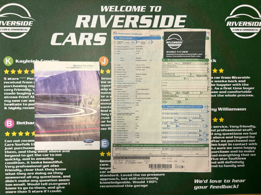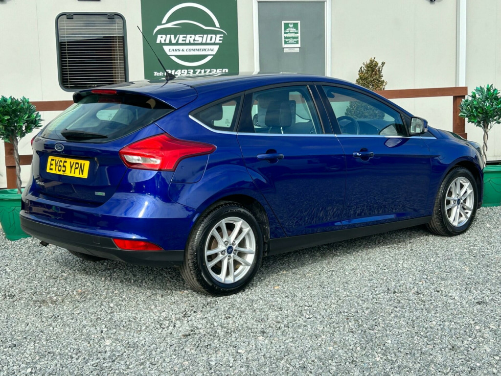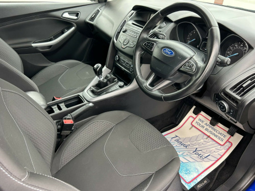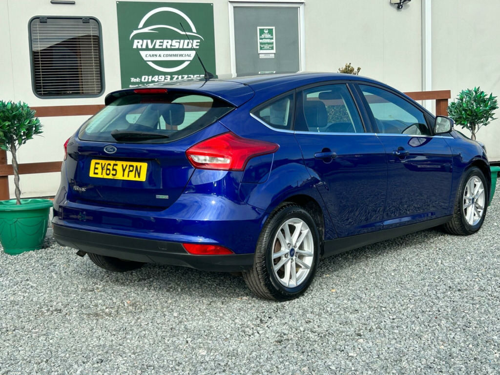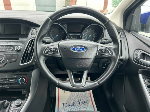 Finished In Metallic Blue This 2015 Ford Focus Zetec is a great choice for those seeking a reliable and economical car. Powered by a 1.0 litre petrol engine, this Euro 6 compliant model offers impressive fuel economy, achieving up to 60 miles per gallon. Inside, you'll find comfortable seating and convenient features such as air conditioning to keep you cool and Bluetooth connectivity for easy audio streaming and handsfree calls. 3 months blue chip warranty along with excellent service history including having had the belt replaced, oil & filter service offering you total peace of mind. The Ford Focus Zetec stands out with its practical design, including a large boot space perfect for shopping trips or luggage. Its low CO2 emissions are also a significant advantage, indicating a more environmentally friendly and potentially less expensive vehicle to run. These highlights demonstrate how this Focus offers a compelling package for everyday driving., in alloy wheels - 5x2 spoke, 4.2in tft display, abs - anti-lock braking system, air conditioning, airbag - front passenger, airbags - curtain, airbags - drivers and front passenger side airbag, armrest - centre console, bluetooth - audio streaming, chrome finish on upper door line, colour tft instrument cluster display, door handles - body colour, door mirrors - heated - electric - integrated side indicators - body coloured, drivers airbag, eba - emergency brake assist, epas - electric power assisted steering, esp - electronic stability programme, electric windows - front with one touch lowering drivers, emergency assistance, ford am-fm cd audio system, ford dab audio system with sync, ford easy-fuel capless refuelling system, ford eco mode - driver information system, ford sync, front fog lights, heated front windscreen, hill start assist, ips - intelligent protection system, isofix - child seat attachments, mykey, premium centre console, rear spoiler - body colour, remote central locking, seats - drivers lumbar support, seats - front sports, steering column - rake and reach adjustment, steering wheel - audio controls, tvc - torque vectoring control, thatcham category 1 alarm, traction control - tc, trip computer, tyre pressure monitoring system, usb connection, voice control - audio